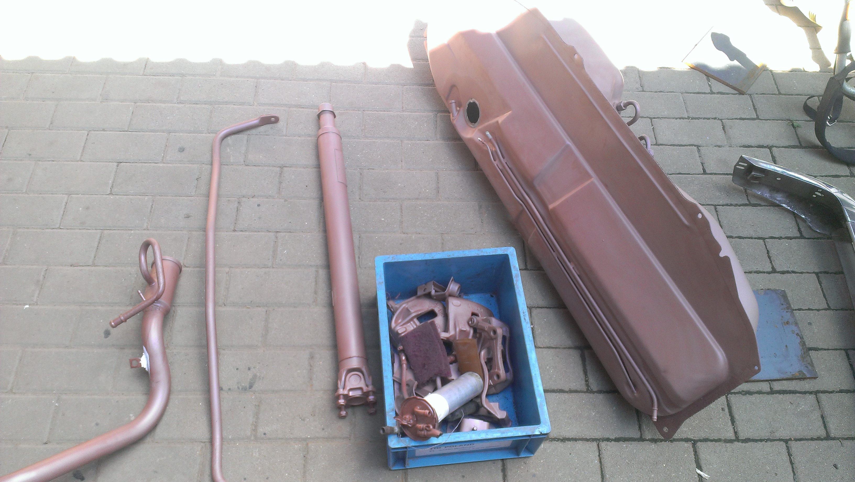 no hlasim sa po dlhsom case... projekt je stale realny, pomalicky skladam ked mam cas po veceroch popri robote a skole, ale ide zima tak to hadam pojde lepsie. Od privezenia z lakovne som spravil len par drobnosti: nastriekana nadrz a ostatne drobnosti, zapojil som nadrz...(este treba naspat nahodit zadnu napravu), brzdova trubka nahodena spolu s palivovymi rurkami, zvukova izolacia kupena (caka na nalepenie :D :D), zadok ako tak vyskladany....ved z fotiek je toho viac vidiet (budem pridavat castejsie info kedze je zaujem trochu o tento pribeh co ma tesi :)