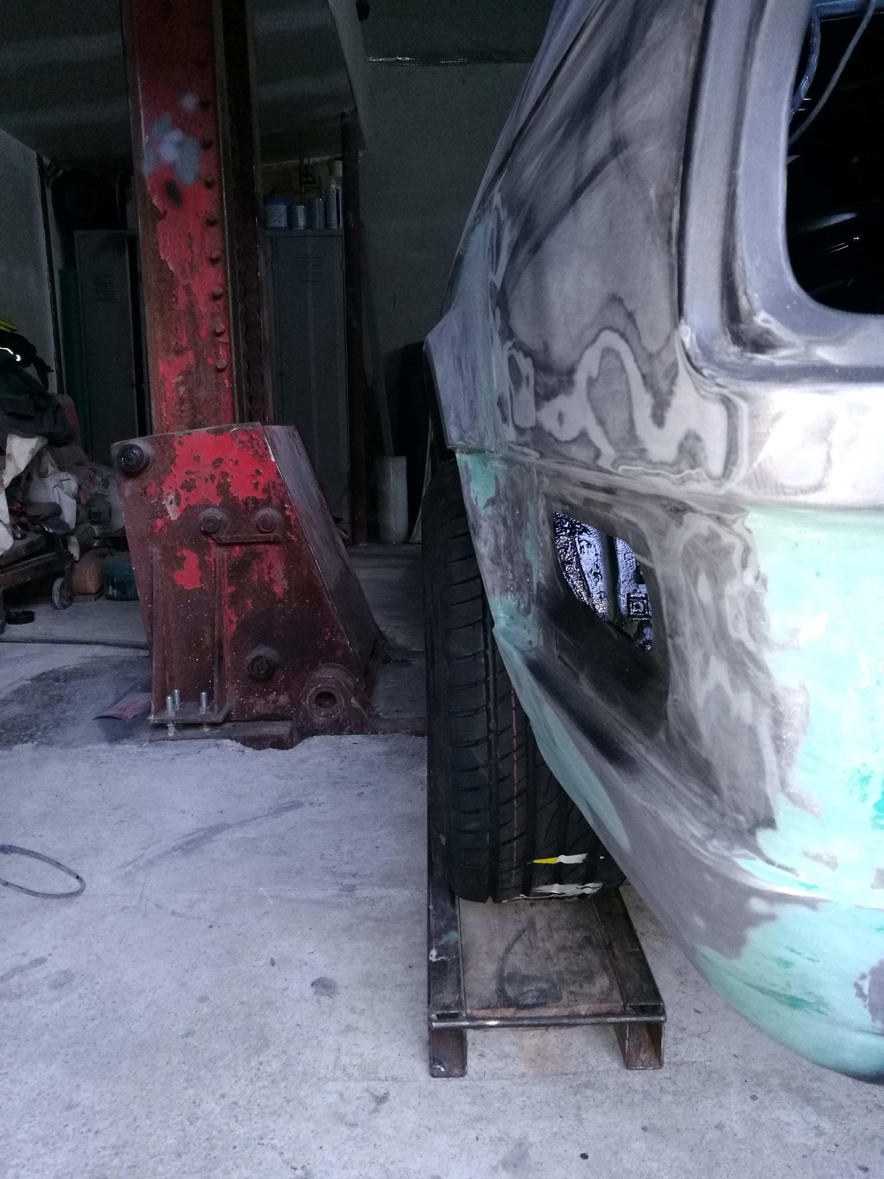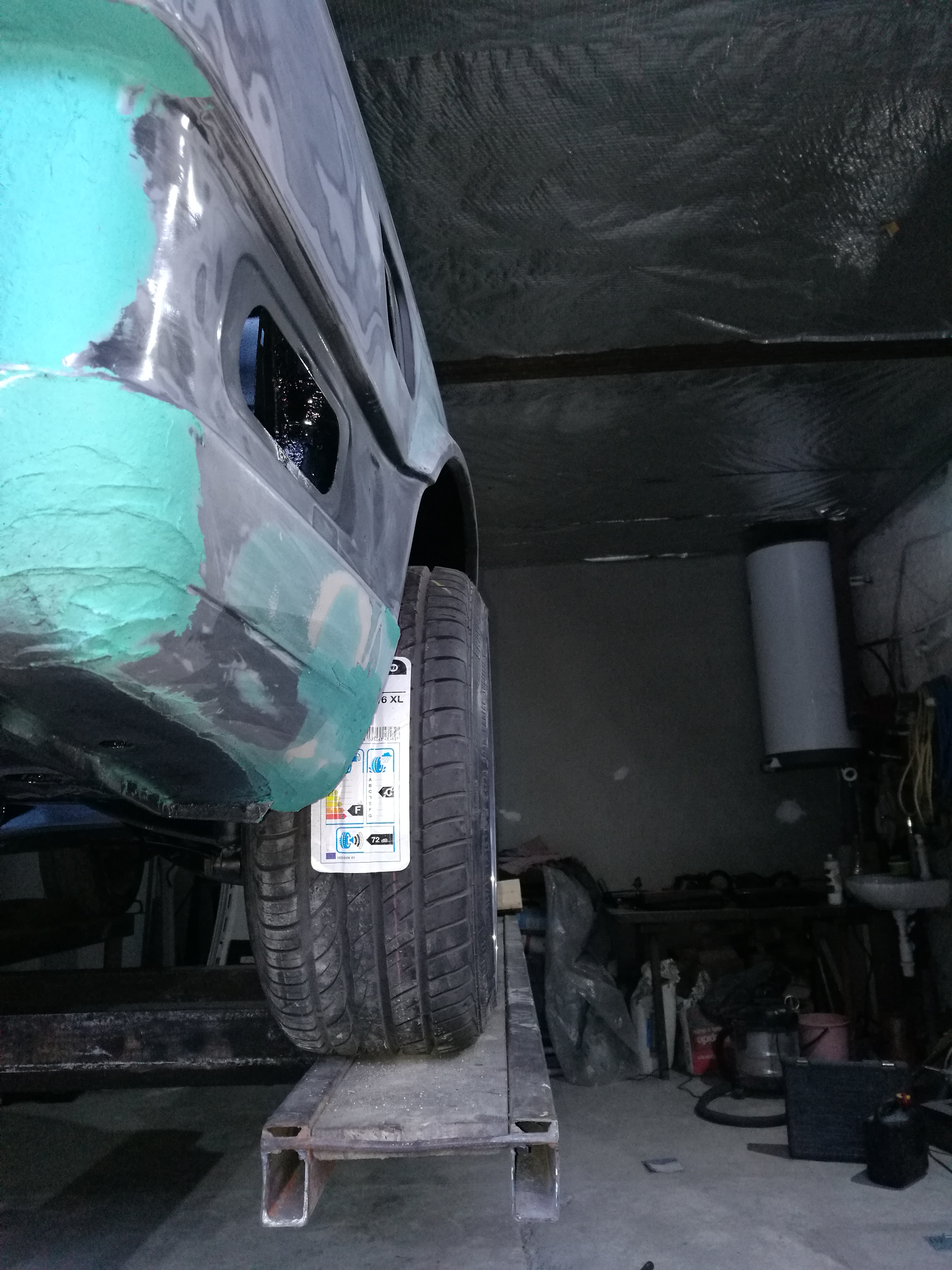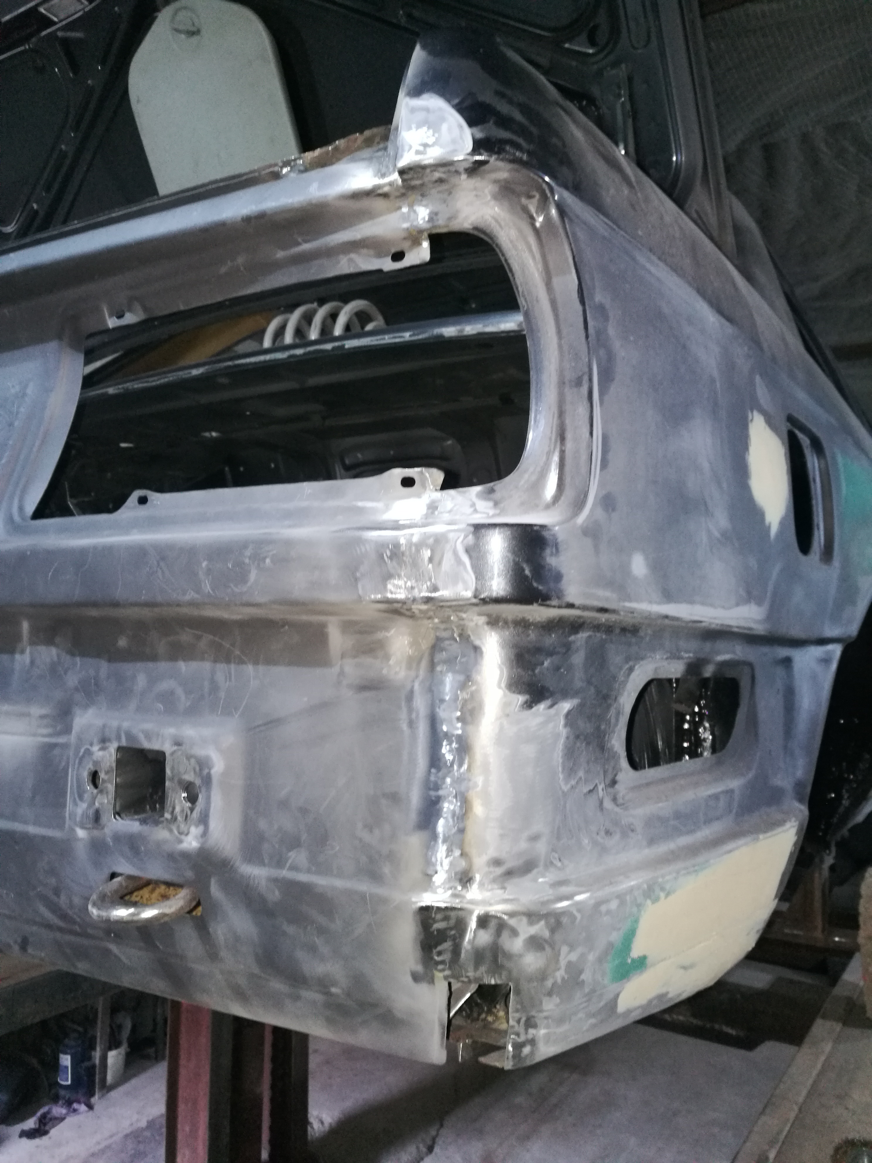 Takze stare zadne celo je uz vyrezane , vsetko okolo kde sa predtym nedalo dostat sa osetrilo , a navarilo sa spat nove celo. Na to ze je to 150€ nahrada a nie origo za +500€ tak sedi celkom presne.