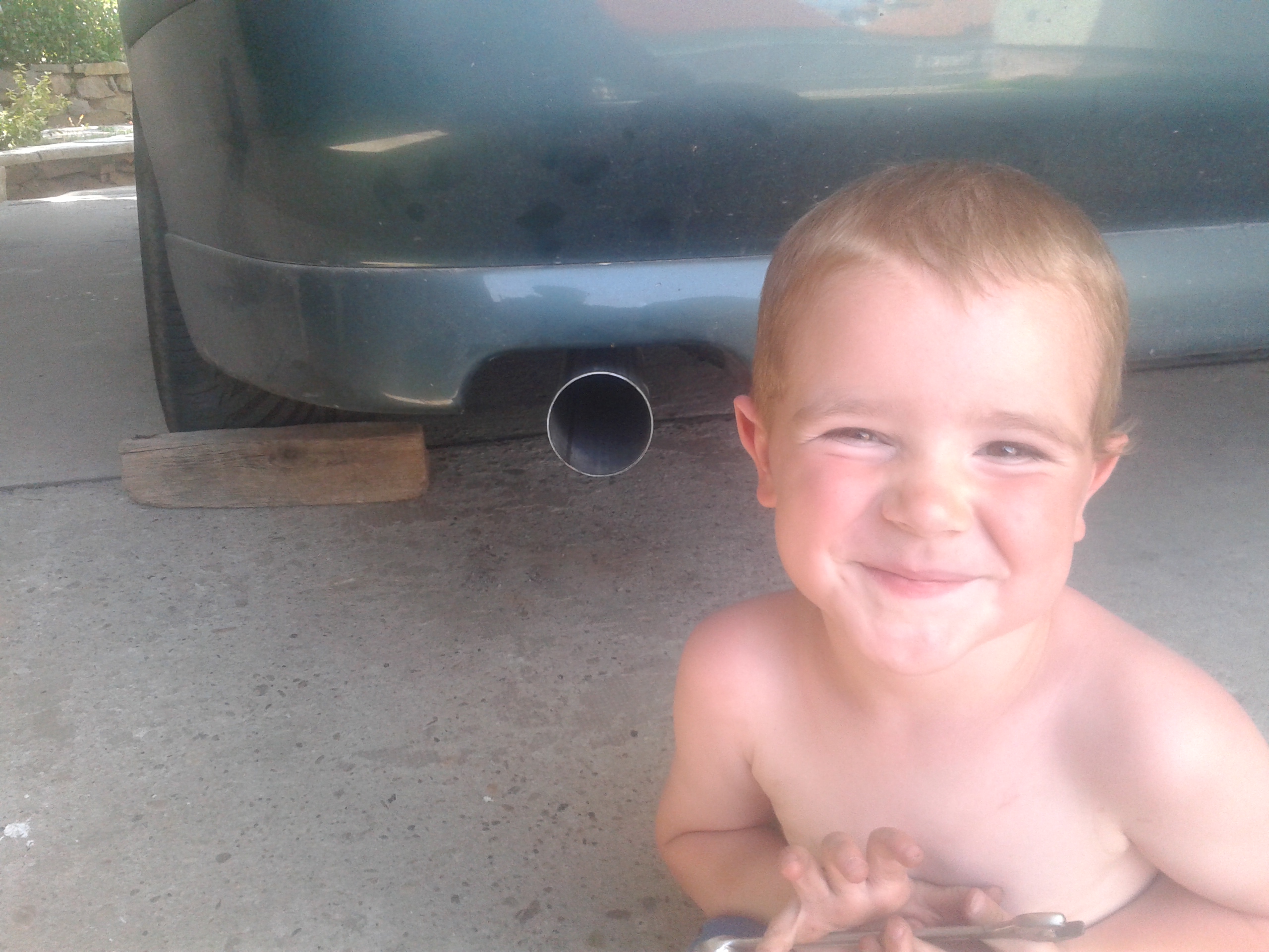 Neohýbal som nič,nemám možnosť nejak kultúrne ohnúť takto hrubú rúru.Tak som povyrezával z tých dvoch starých výfukov kolená ako sa dalo a kamoš mi to zvaril.Toto ešte nieje konečná verzia takže je možné že sa to bude prerábať...