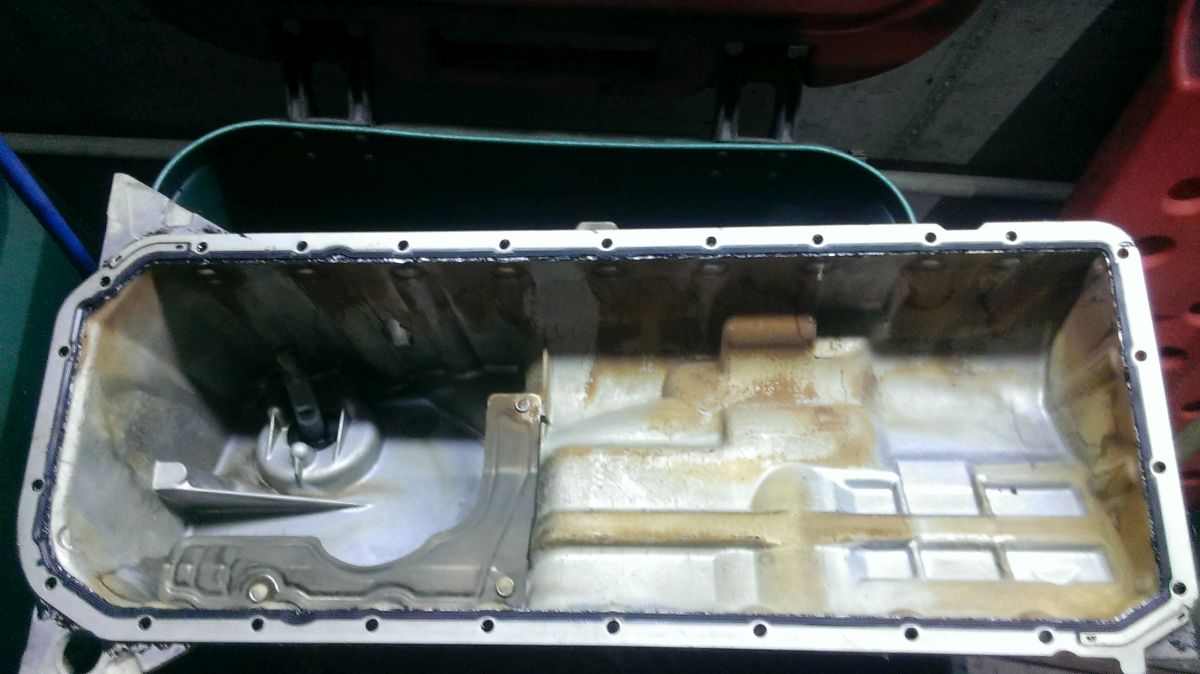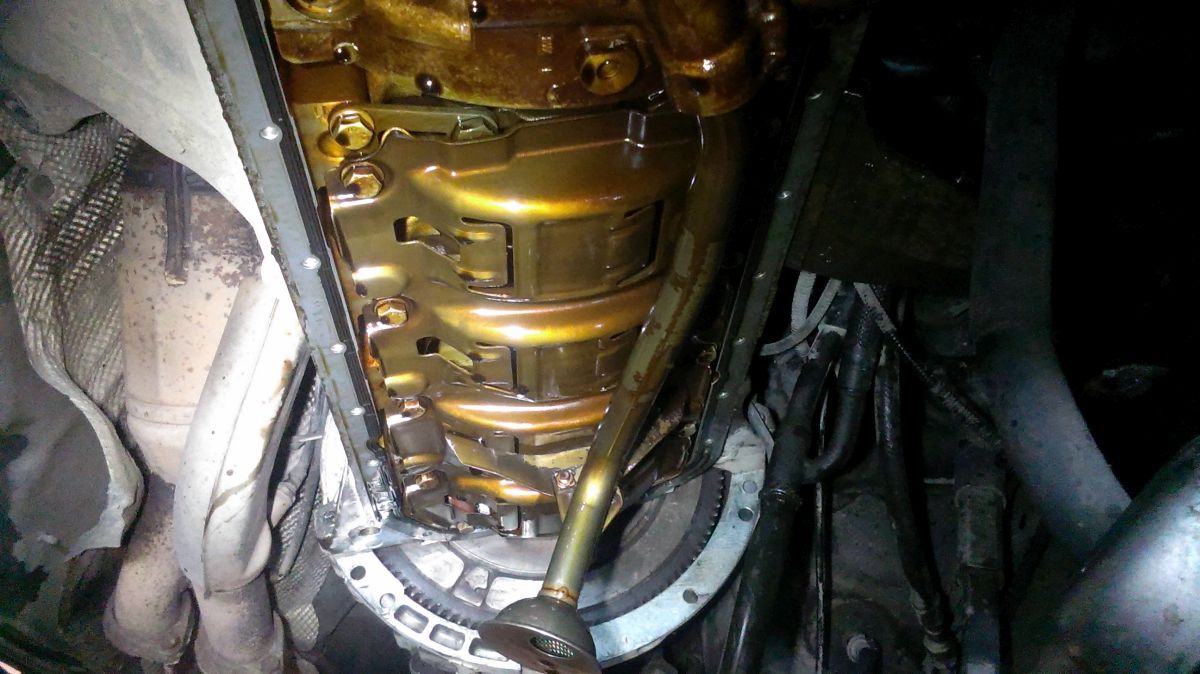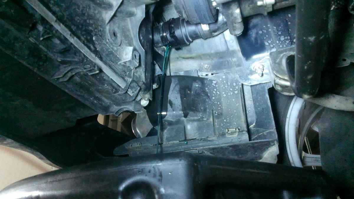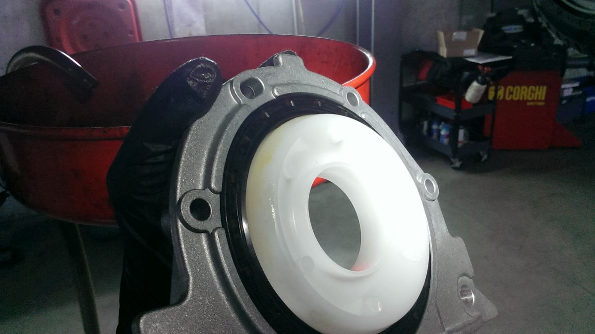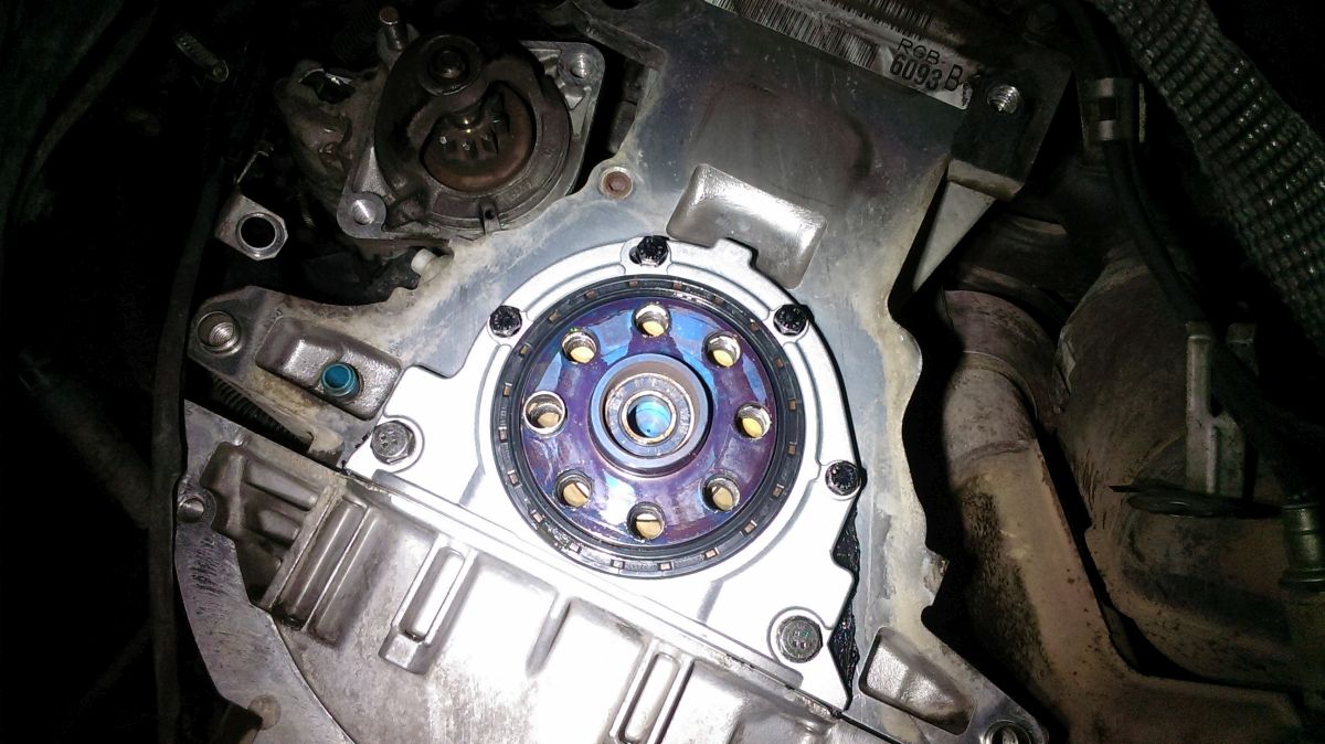 Flasho motor odspodu kompletne vyčistil od oleja, aby mohol identifikovať kritické miesta, kade olej uniká. Verdikt ma veľmi nepotešil - gufero klukovky medzi motorom a prevodovkou. Je to síce niekoľkoeurová záležitosť, ale pri výmenie musí ísť dolu prevodovka.