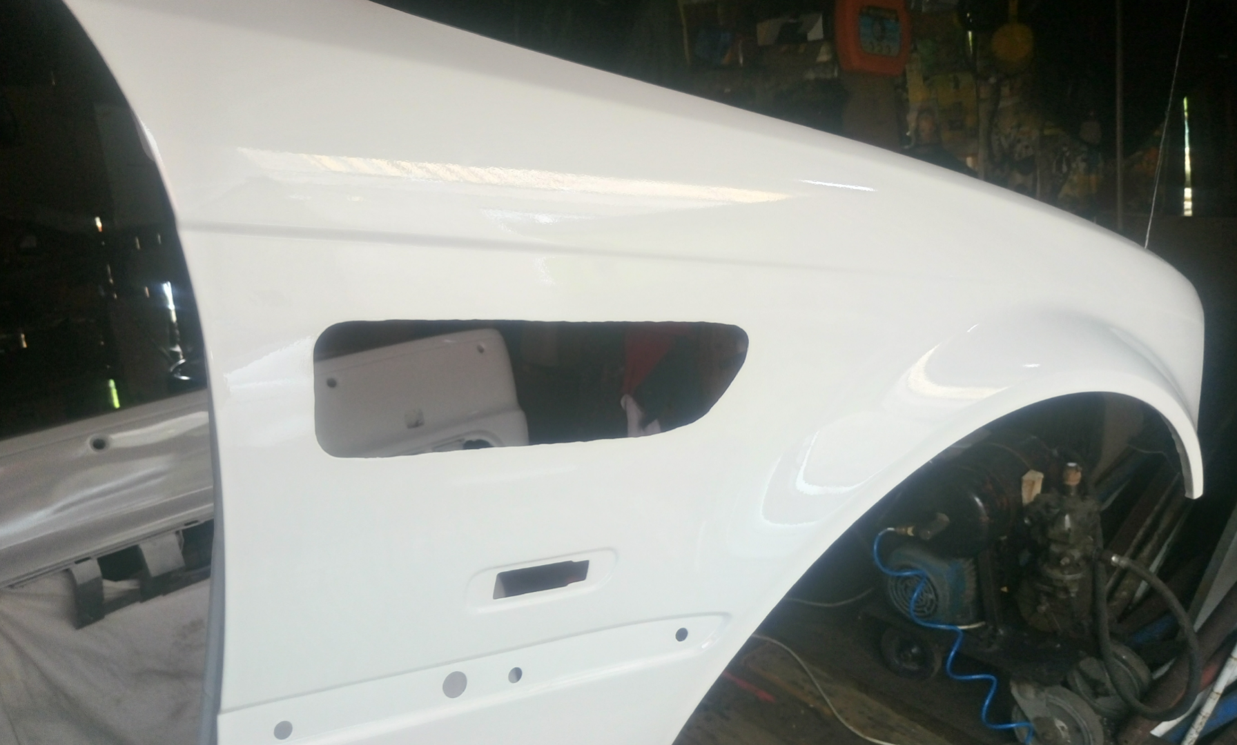 Takže dalsie opravy sa týkaju lakovačky kupil som si lakernickú pištoľ od Devilbiss a nalakoval predný blatnik, zadný náraznik, predne lipka na nárazniku a krytky hmloviek podarilo sa mi to bez chyby