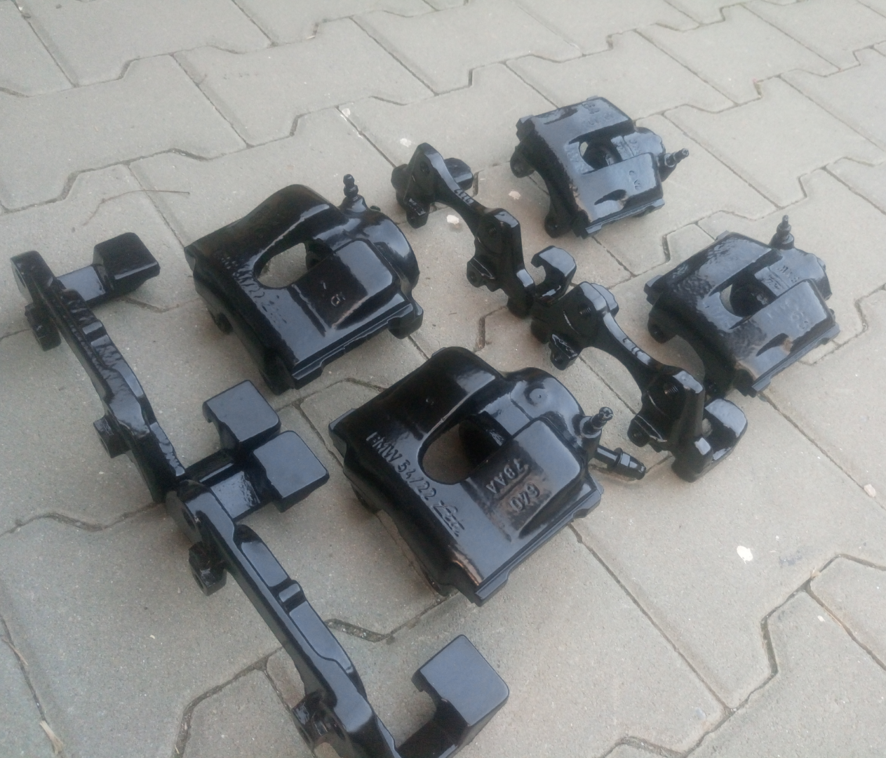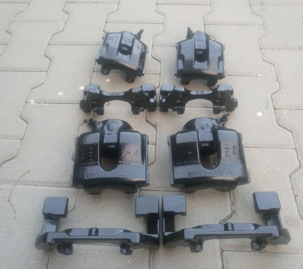 Budem musiet kupovat nove kotuce tak som si dal opieskovat, nalakovat a vypalit v peci brzdove strmene z 328ci cize budem kupovat aj vacsie kotuce teraz su tam vpredu 286mm a vzadu 276mm a neskor tam budu vpredu 300mm a vzadu 294mm