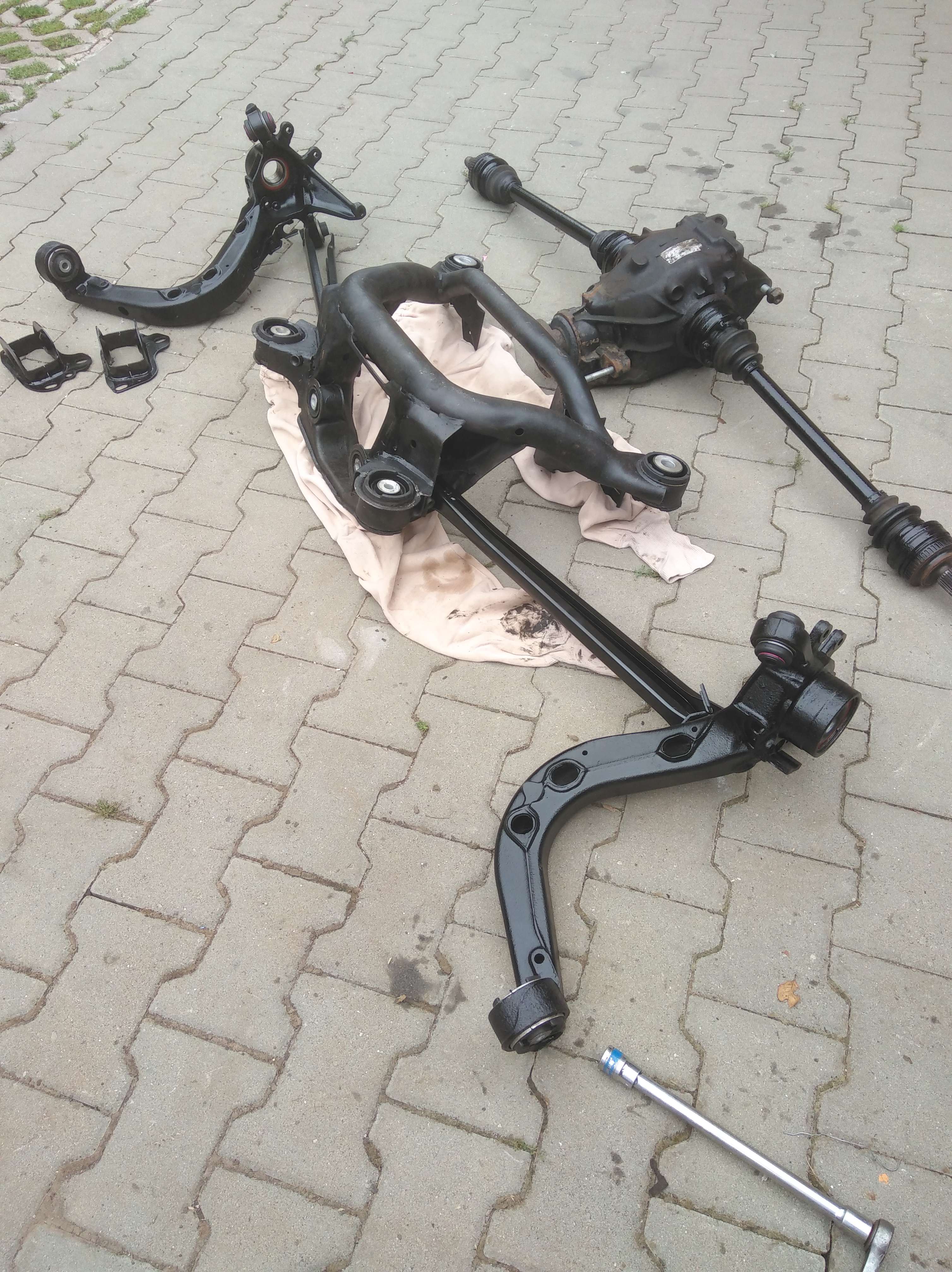 Zadné ramená majú nové ložiska FAG, silentbloky sú lemförder, jeden abs snimač sa nechcel po dobrom vzdat takže jeden je nový hella a držiaky káblov na ramenách sú nové