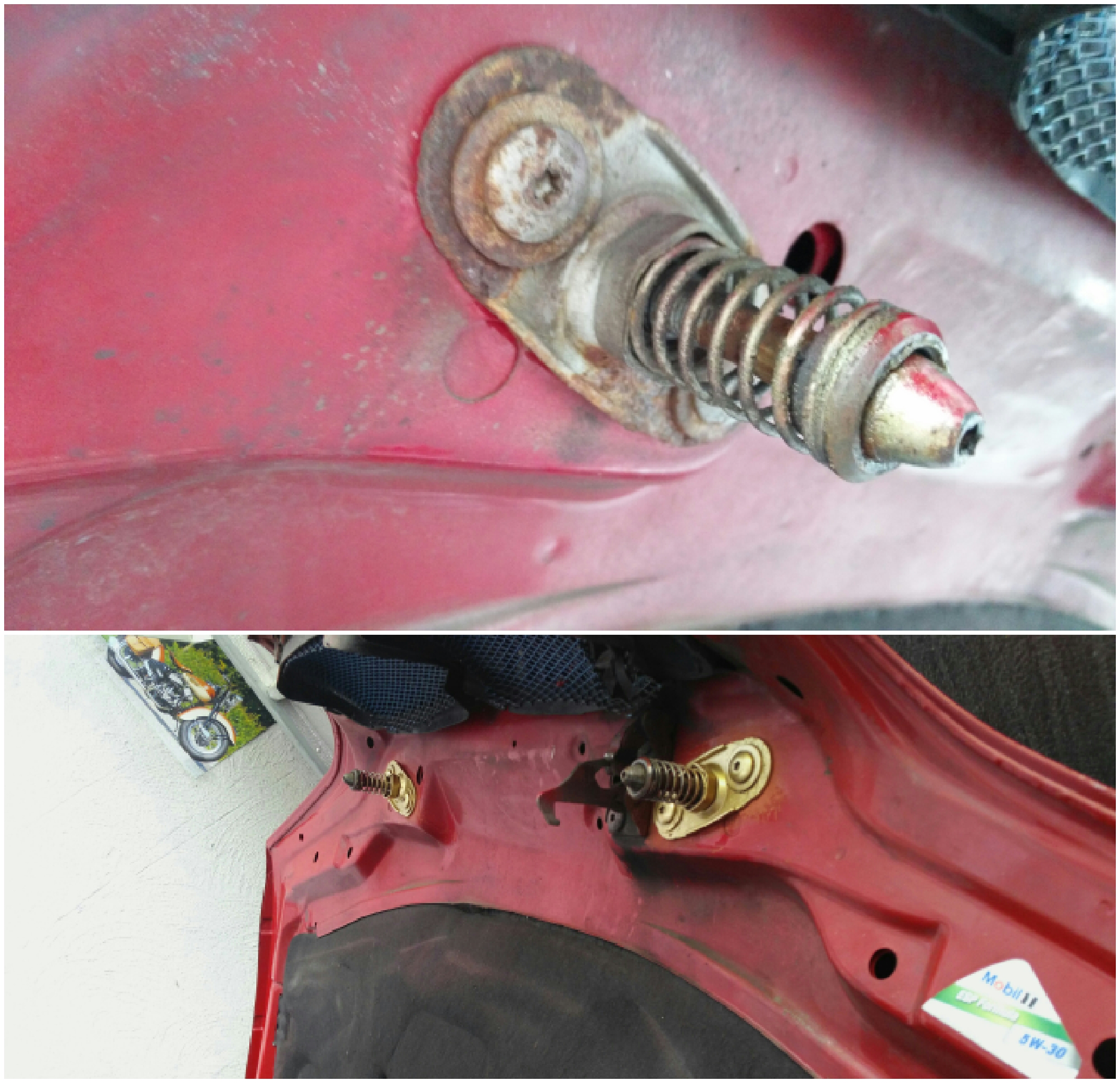 Pod nimi bol lak v pohode no keď som ich už mal dole tak som to tam osetril lakom proti korózii. To isté s uchytmi - prebrúsil, osetril, zlatá metalíza,transparentný lak.