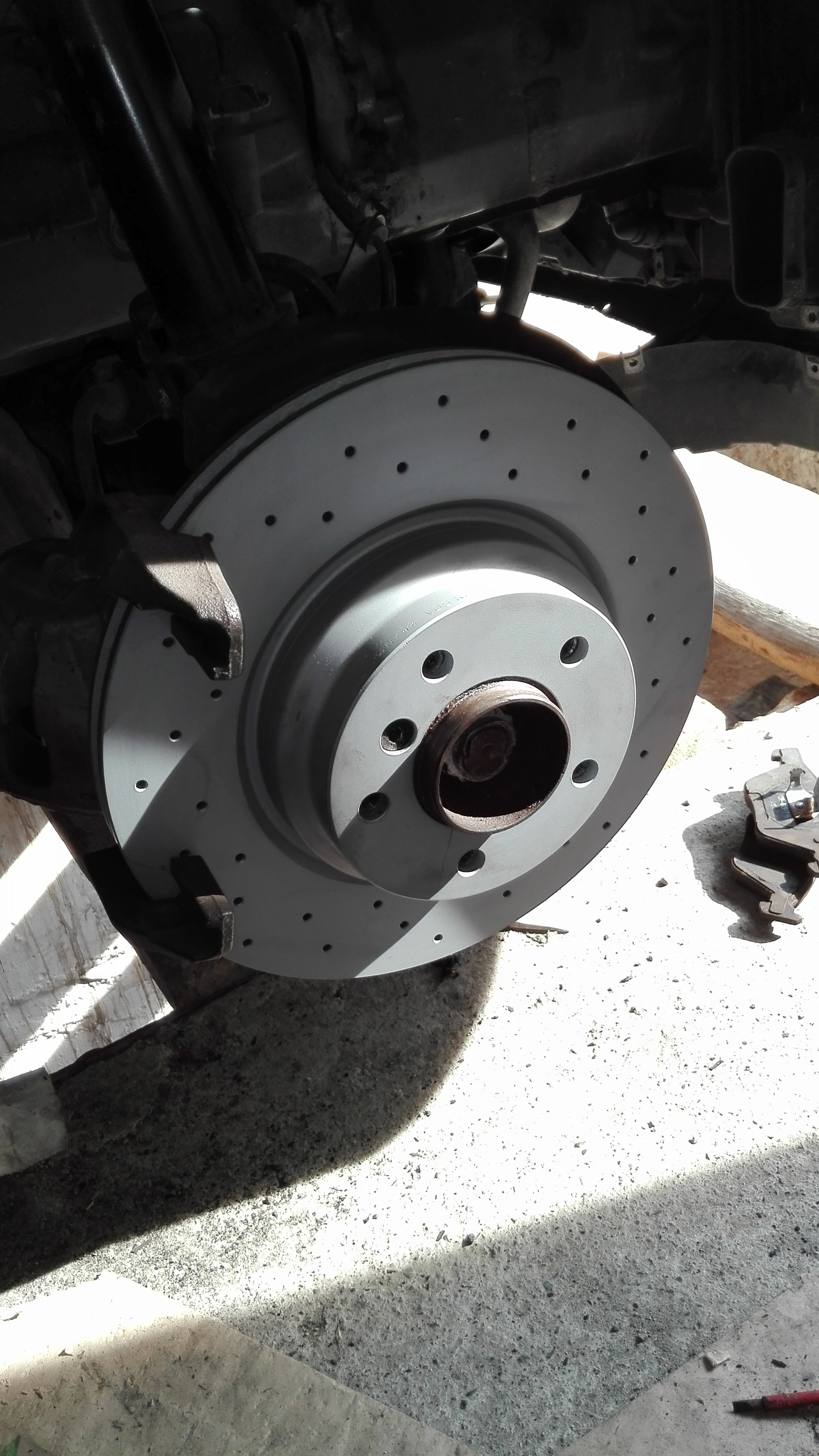 Výmenu som urobil u známeho na jame, keďže video na yutube.com bolo vcelku jednoduché tak som sa do toho pustil sám. Prístup po zhodení kolesa v dolnej časti je v pohode, jeden kúč na zafixovanie tlmiča a golou odtiahnuť maticu. Vrchný šrób to už je v kupé mierne akrobacia vo veľmi horúcom prostredí. Prvý tlmič nakoniec šiel vcelku ok akurát nový niak štrajkoval z osadením...až potom doma som si všimol že vo videonávode si pomôžu spustením auta a dotlačením tlmča a dorazov na miest....no čo už druhý pôjde lahšie som si myslel a aj šiel až do doby druhého horného šróbu...horko ešte vačšie a ako naschvál vrchný imbus,ktorým sa fixuje tmič pre dotiahnutie odletel pri pokuse odtiahnuť.. takže prišli na radu blicky..ja som to vo vnútri auta držala fixovala známy skúšal potočiť. Našťastie šrób si to rozmyslel a povolil sa vcelku rýchlo takže ani nedošla trpezlivosť:)