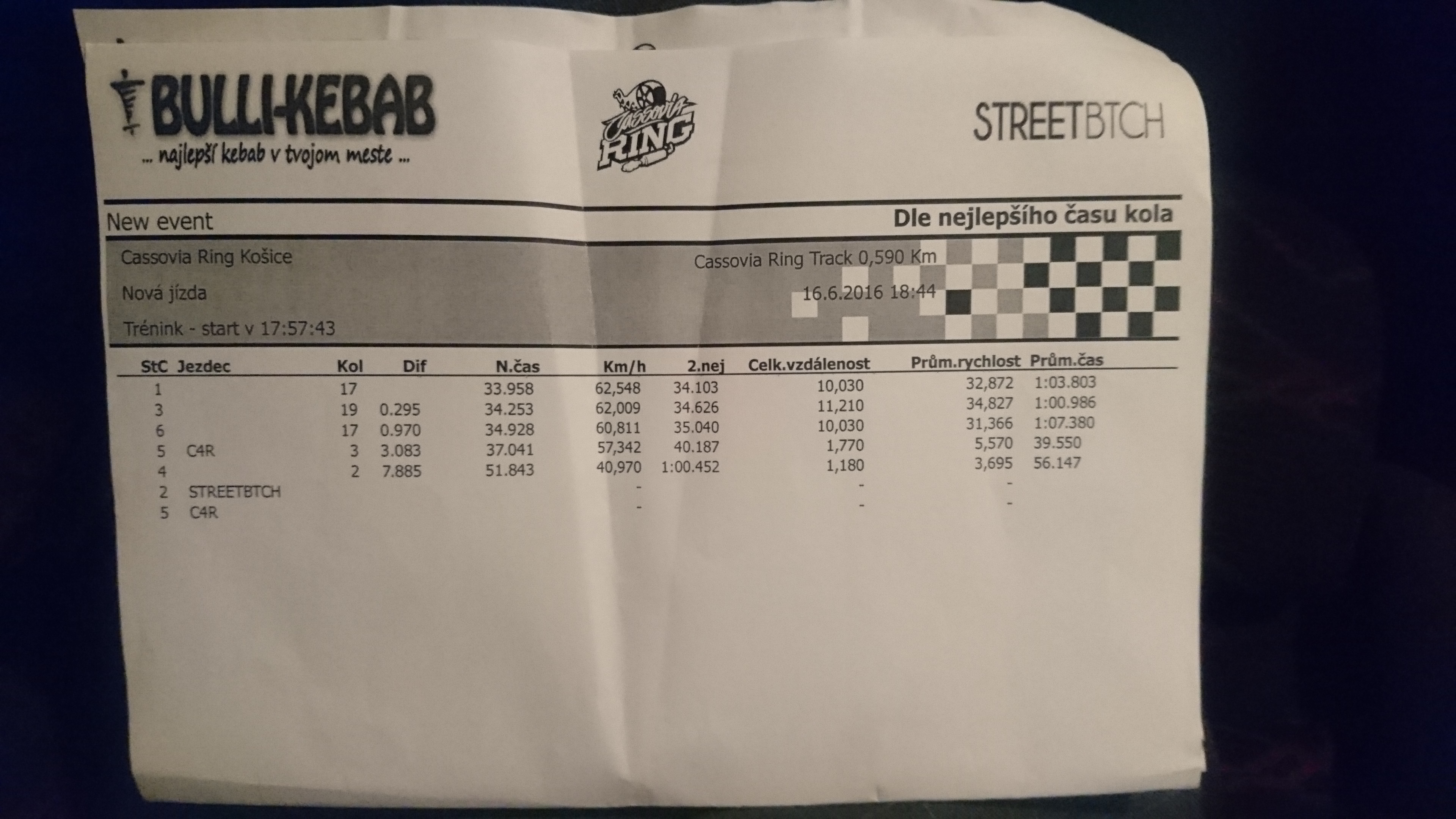Inac neviem v com myslel instruktor, ze pojdeme na trat, ale v mieste kde ma obehlo to porsche na videu sme mali podla neho mat kolo 150-160km/h, ze nebude treba az tak brzdit, no mne sa tam podarilo par krat atakovat 200km/h pri dobrom vyjazde, 180+ som tam mal stale, brzdy celkom v pohode zvladali, aj ked bolo citit, ze pedal trochu zmakol, olej musim pochvalit, cez 110° mi to neukazalo, a po tom co som prisiel do paddoku, vsetko pekne tiche, ziadny klepot