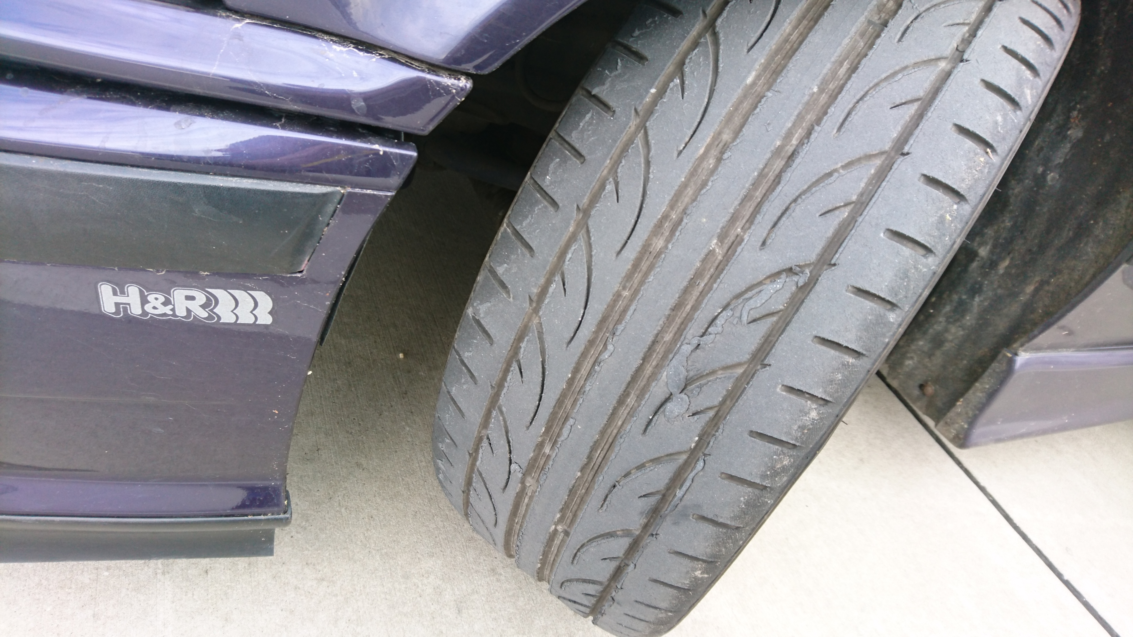 plus fotka pneu, na to, ze maju asi 15-20 tis km, a polhodinku na ringu vyzeraju este celkom v pohode, aj ked po jednom prebrzdeni sa clovek citi ako keby mal kolesa v tvare stvorca, potom v driving academy uz na tych klzkych plochach bolo citit, ze uz na vode to nieje ono, v kombinacii s nefunkcnym ABS som mal problem zastavit pri nudzovom brzdeni na urcenej drahe, pri odtrhu som smyk vedel udrzat len tak, ze som tam robil 360-tku, inac by som vyletel z urcenej plochy, no celkom sranda, ked si odmyslim, ze som vyzeral ako uplny neschopak za volantom