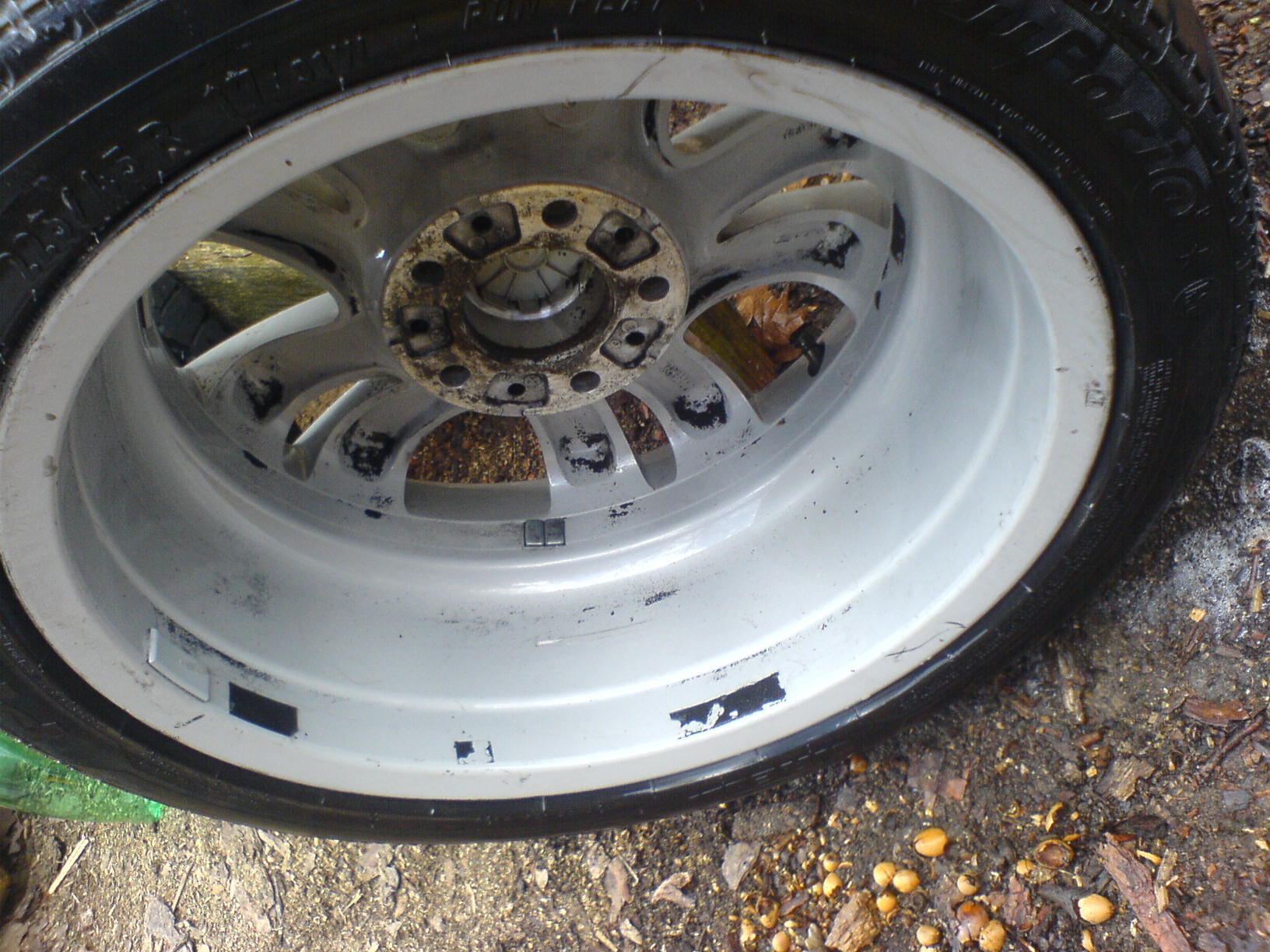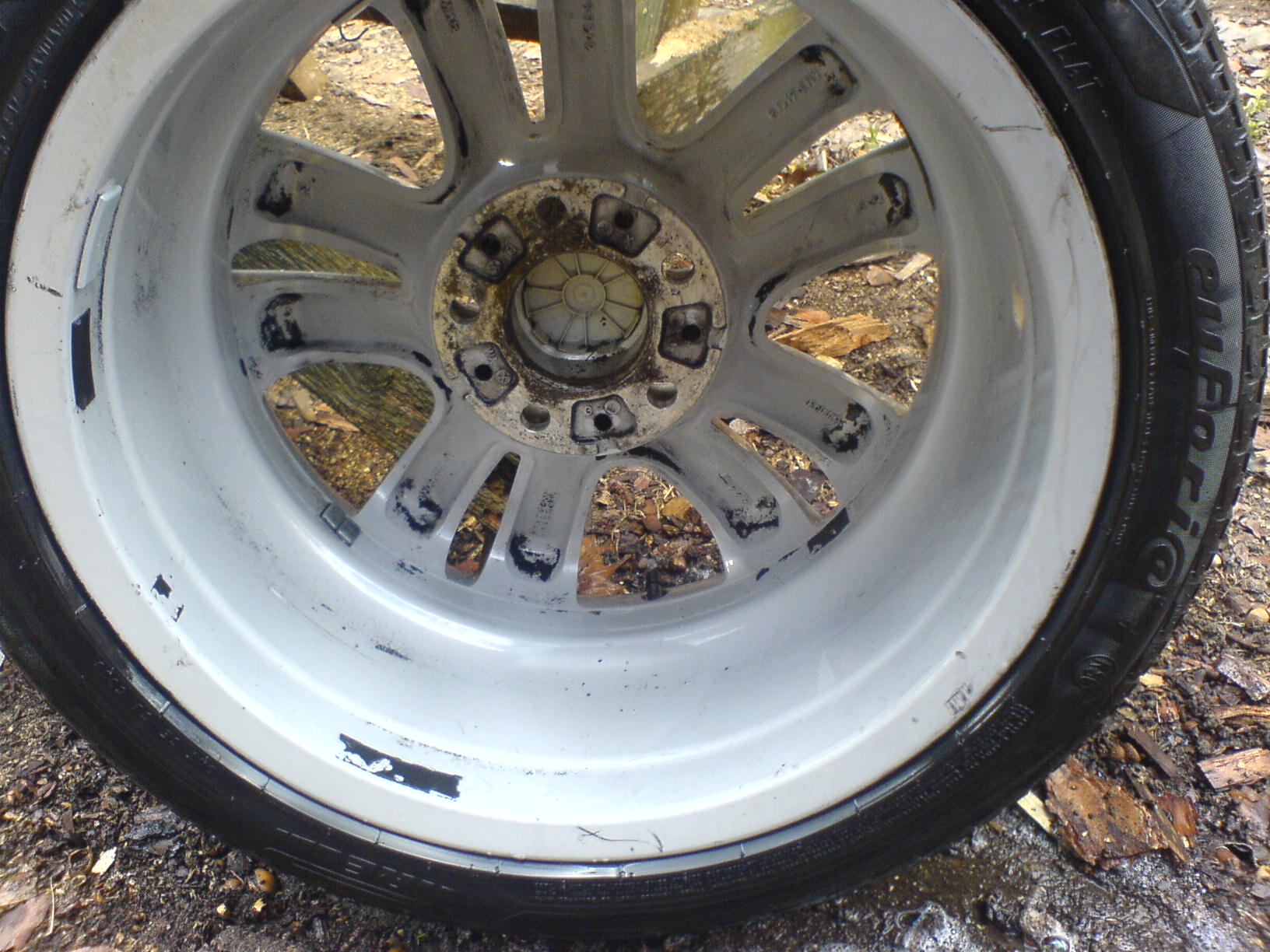 Je to roztok dvoch kyselín s aktívnymi povrchovými látkami. Stačilo nastriekať, mechanicky narušiť povrch a opláchnuť čistou vodou. špina sama zliezla. V Brne nemám Wapku, ináč by bol výsledok ešte lepší, ale to sa porieši budúci týždeň, na aute sa budú robiť komplet brzdy, takže kolá pôjdu dole ešte raz, takisto mám v pláne natrieť náboje na čierno a brzdiče Foliatecom...