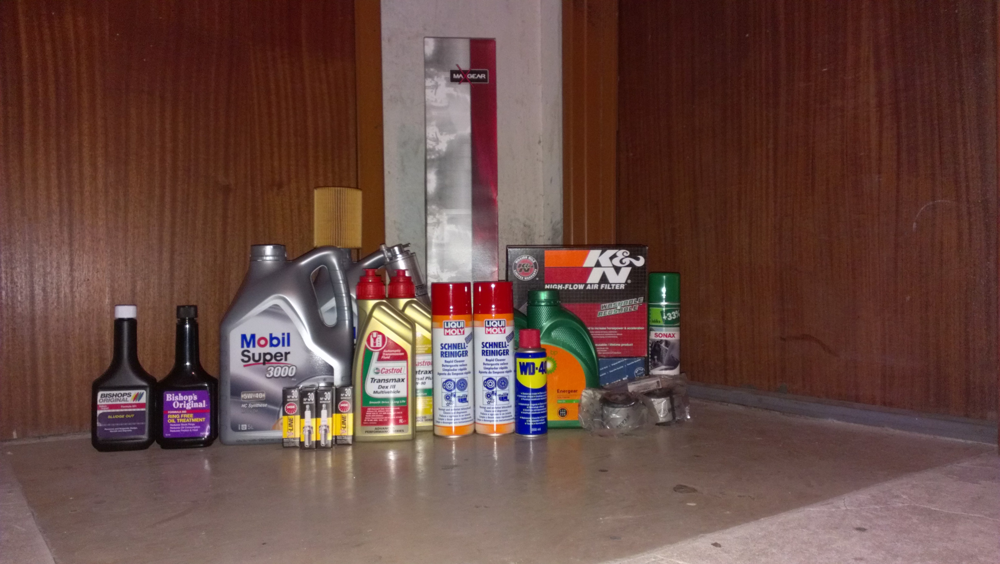 vymené: sviečky, palivový filter, separátor, olej Mobil 5w40+ol.filter+prípravky bishop 501,560; servo olej ATF Dex 3, prevodový olej, diff olej, kn vzduchový filter - vložka do pôvodného airboxu, peľový filter