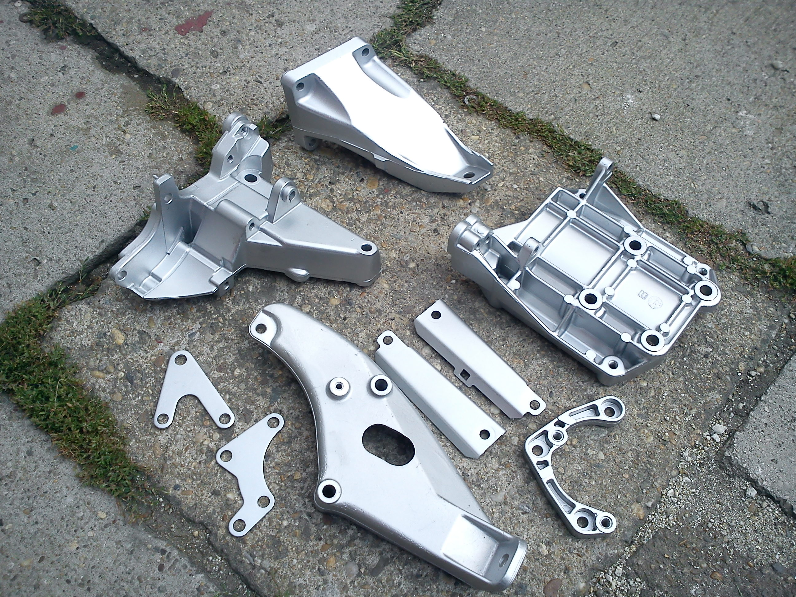 Tiež som dokončil "renováciu" všetkých hliníkových držiakov motora a vecí okolo motora. Najskôr vykúpané v Arve, potom chemikálie, zubná kefka a Cif a nakoniec nastriekané aby hliník nezoxidoval a aby sa ľahko čistil...
