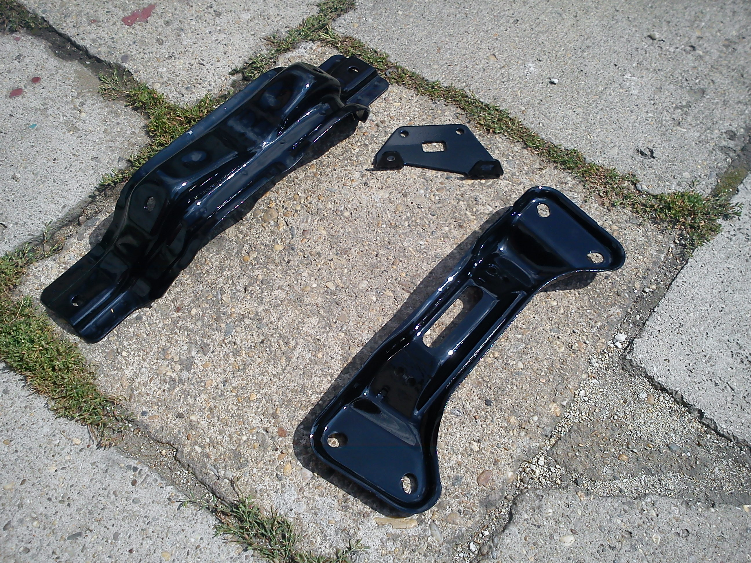 Pustil som sa prestriekania prednej masky, lebo už bola v zúfalom stave kvôli kamienkom... Pri tejto príležitosti, keď už mám auto cez víkend rozobrané, nastriekal som držiak prevodovky a výstuhu karosérie ako vždy čiernym 2K polyuretánovým autolakom. Výstuhu som dal najskôr opieskovať (bez tej sa jazdiť dá) a držiak prevodovky nebolo treba keďže bol zakonzervovaný olejom z prevodovky... (gufero na prevodovke som už vymenil)