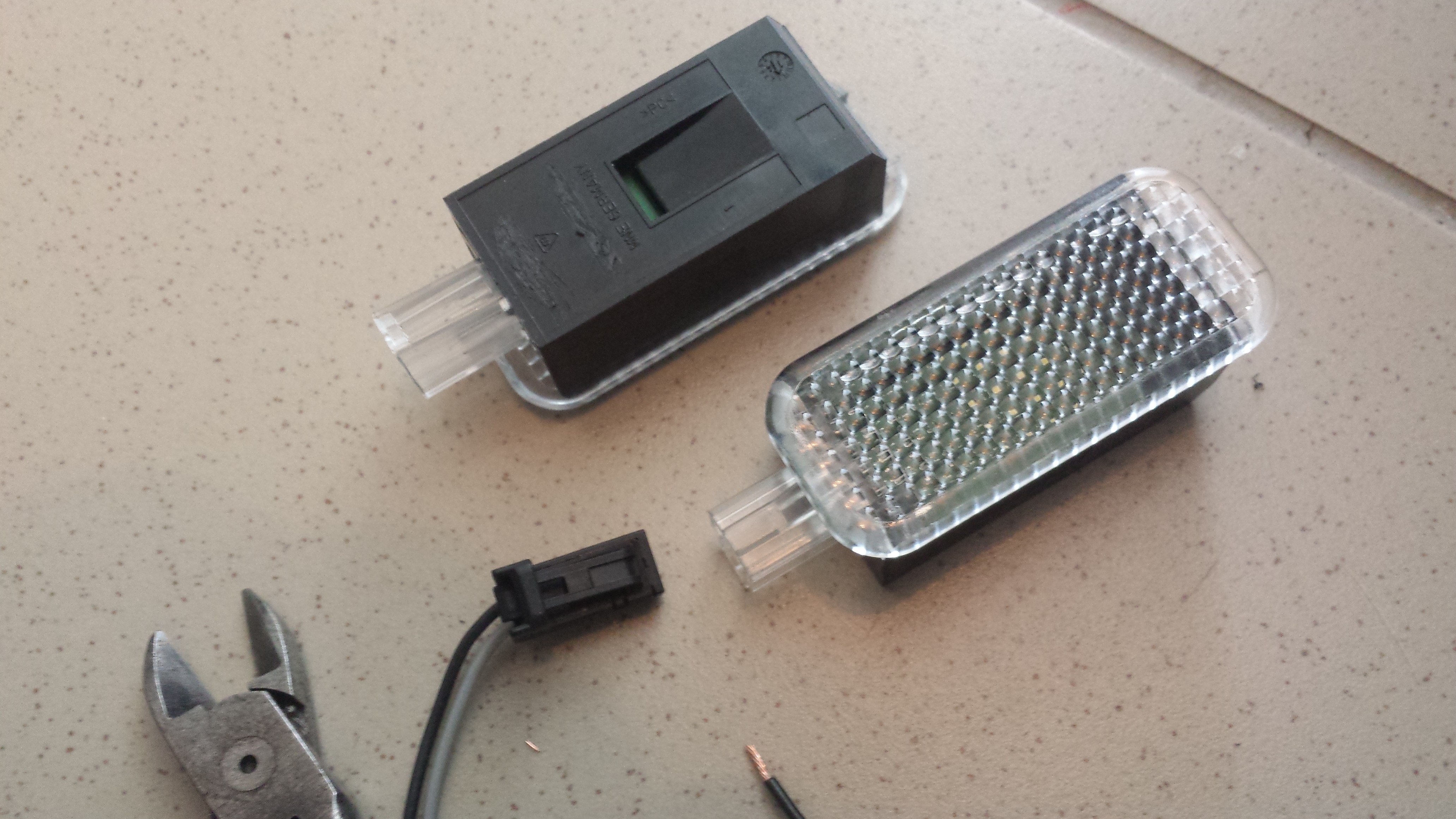 Tak pre oživenie pridám sem aspon dorabanie osvetlenia na nohy možno niekomu pomôže popis pridam k foto ale stručne napinoval som konektory do svetielok kabel som tahal pod stred.tunelom palubovky smerom k poistkam tam som plusko napojil do svorkovnice a minusko na kostru.