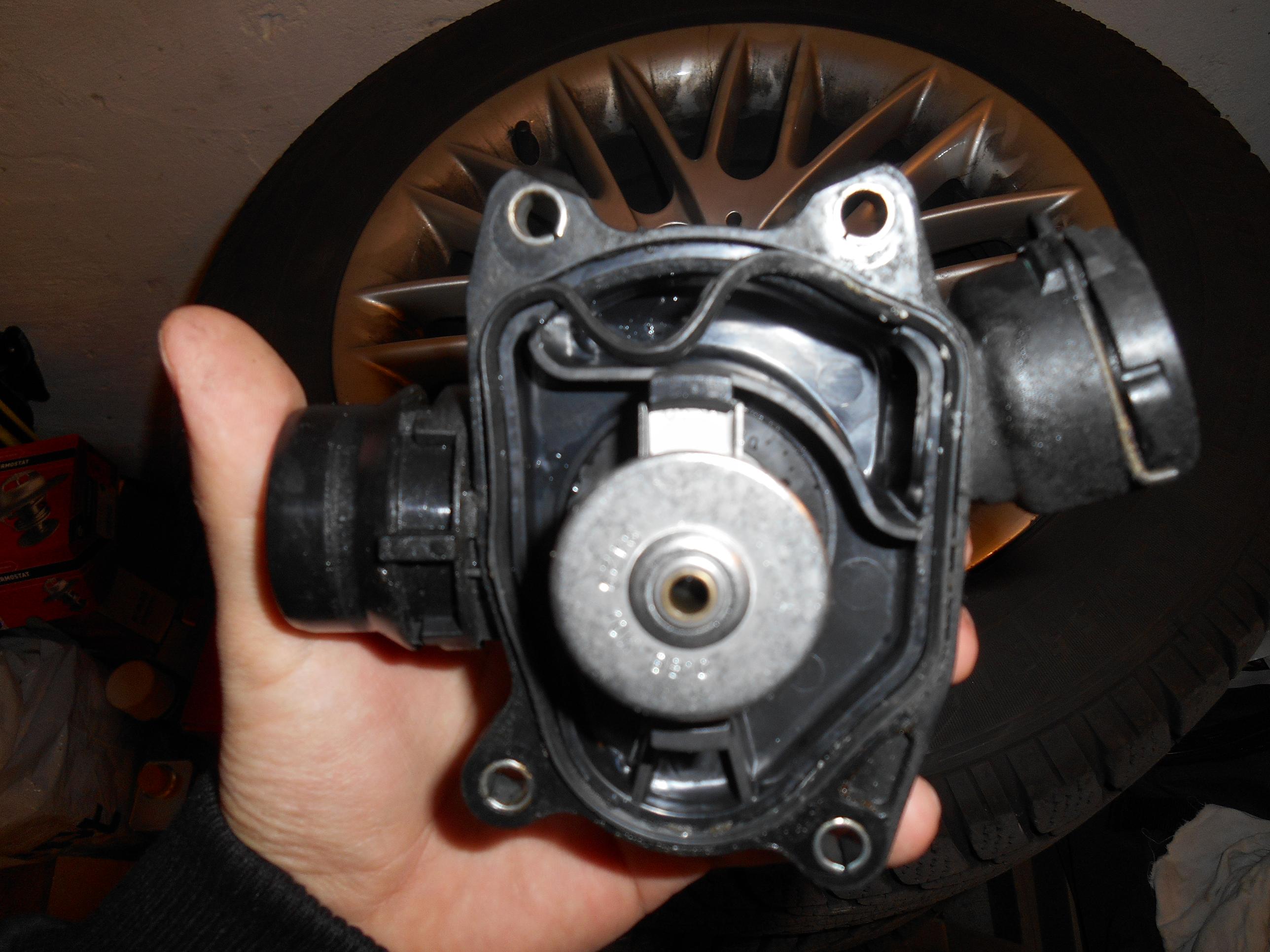 Okrem obcasne strajkujuceho starteru xenonu sa stala nemila prihoda. Pri vylete s Macom na Braunsberg sa z toho po dost ostrej jazde a odstaveni hore na parkovisku zacalo dymit. Jemny biely dym bez zapachu zo strany zvodov. Dosrany som to hned vypol (turbo, ze dakuje), zacalo dymit trochu viac, chytro som natukal BC, tam 106° tak som to hned nakopol, za par sekund to zliezlo na 95° a potom klasika 90. Auto sa tvarilo jak keby nic, palicka sa nepohla vobec. Zjavne tam bola daka netesnost a ked stupol tlak tak to zacalo prskat na blok kde sa to odparovalo. Zvysok cesty domov stale peknych 90, vsetko v poriadku. Rozhodnuty to co najskor poriesit a hladat netesnosst som si objednal termostat, kedze uz ho pri vyssich otackach otvaralo a vodnu pumpu, nech sa preventivne vymeni. Termostat Gates, pumpa Ruville. Posledne dni pred sviatkami, ked som auto najviac potreboval som uz nechaval na parkovisku metrove flaky a dolieval kazdy den liter destilky. Nastastie sa to poriesilo dost rychlo, zavada bola na termostate, odlomil sa tam kusok plastu a vyzlieklo sa z neho tesnenie a tade to chcalo na blok, preto aj ten dym. Stastie v nestasti, ze par dni predtym mi dosli diely a hned sa to spravilo. Vodna pumpa by este urcite rok vydrzala, mala len minimalnu volu, ale ked uz.... Skontrolovalo sa aj turbo, ktore je v dobrom stave.