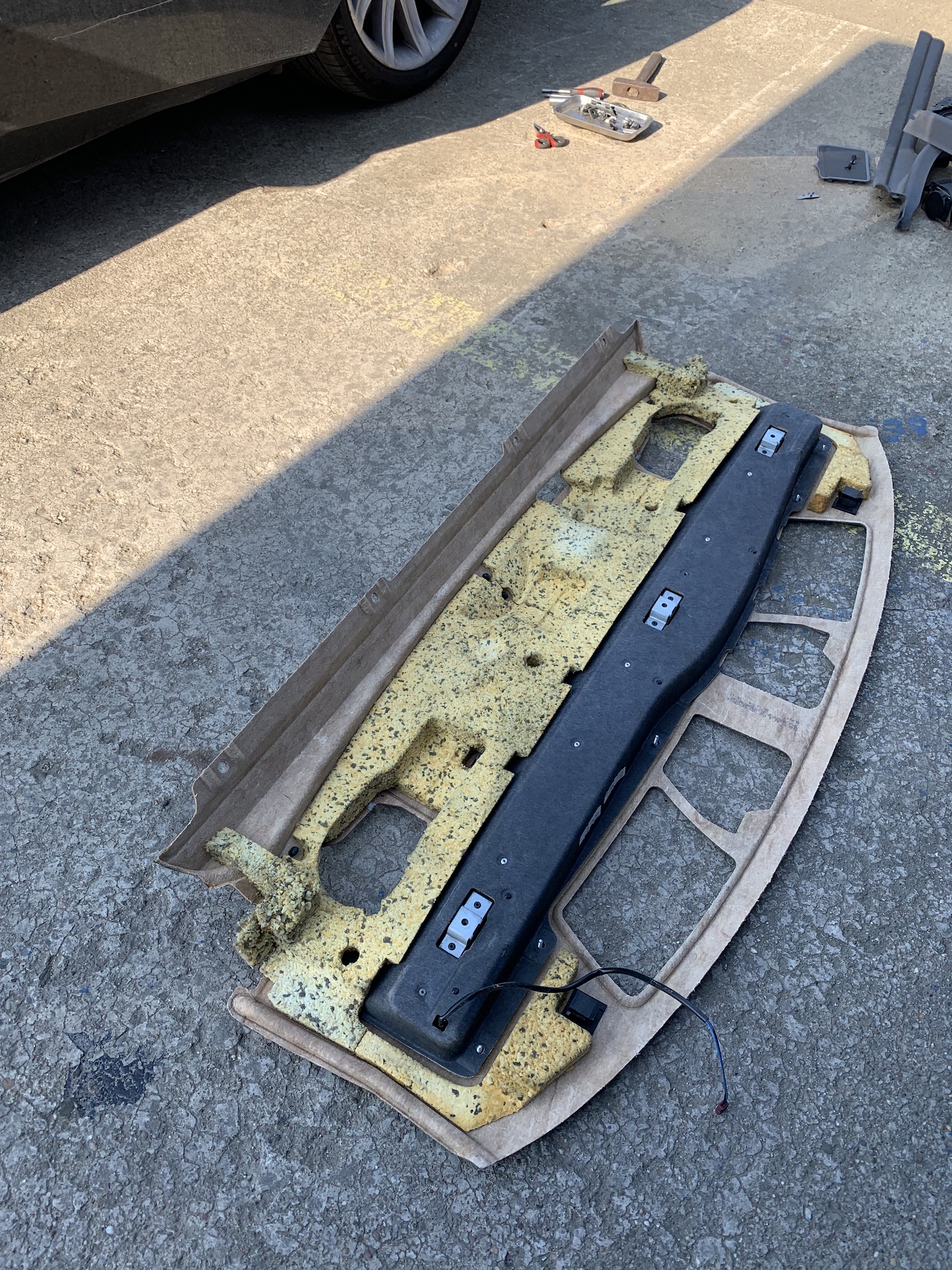 Nezabúdam ani na "banglovicu". Motor opravený, ide ako hodinky konečne, plný sily a výkonu. Radosť jazdiť. Takže som sa mohol pustiť do drobností ako sú silentbloky piestníc dverí a výmena zadnej elektrickej roletky. Celý deň v p.... slušne povedané
