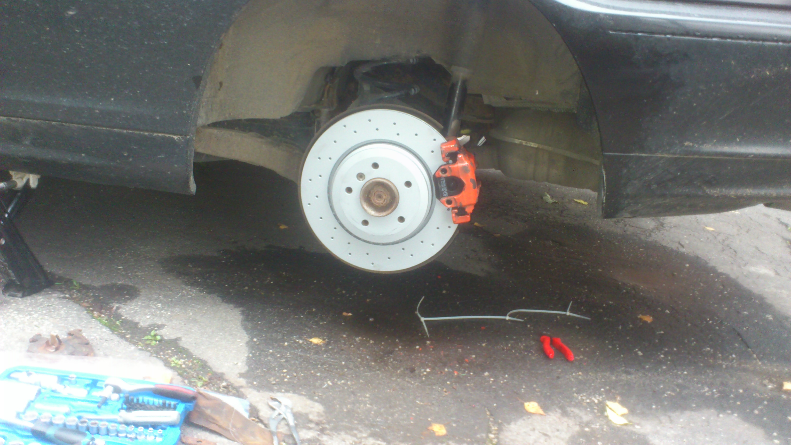 , no zbytočne. Stačilo vyskočiť z auta, prejsť k zadnému kolesu a hneď bolo vidieť o čo sa jedná......... Ešte že nám inžinieri z BMW namotovali senzory opotrebenia brzdových doštičiek na PZ a LP koleso