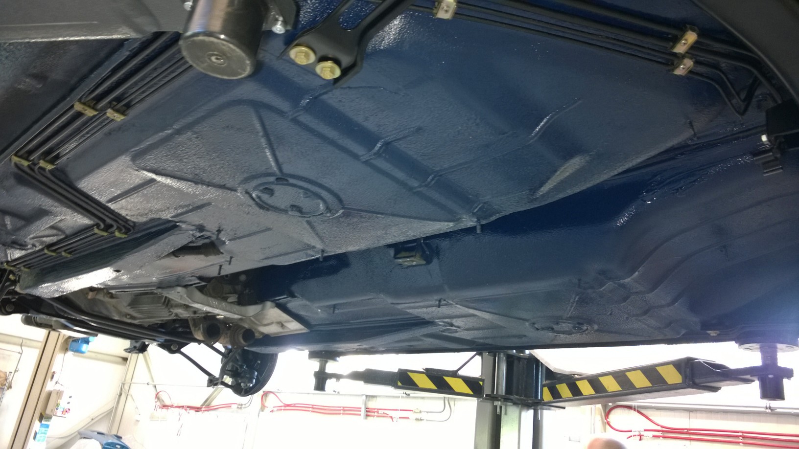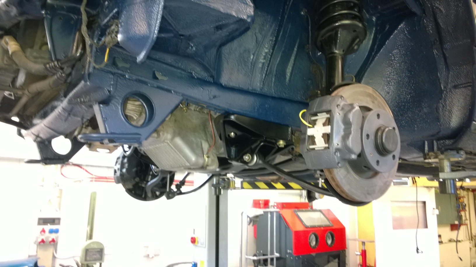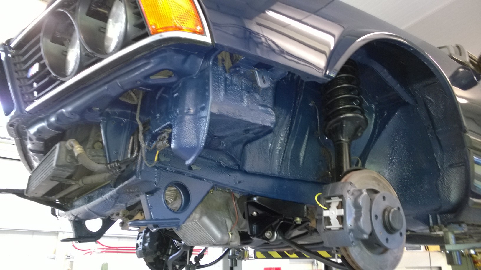 antikorozna ochrana spodku- dokončená antikorózna spodku. Komplet všetko bolo zo spodnej časti zhodené, všetky hadičky, vedenia, káblovaćky, nádrž, diferenciál, kardan... atď. Podľa kódu farby bola namiešaná špeciálna antikorózna farba rovnakej špecifikácie ako keď bolo auto vyrobené - týmto bolo kompletne všetko ošetrené.