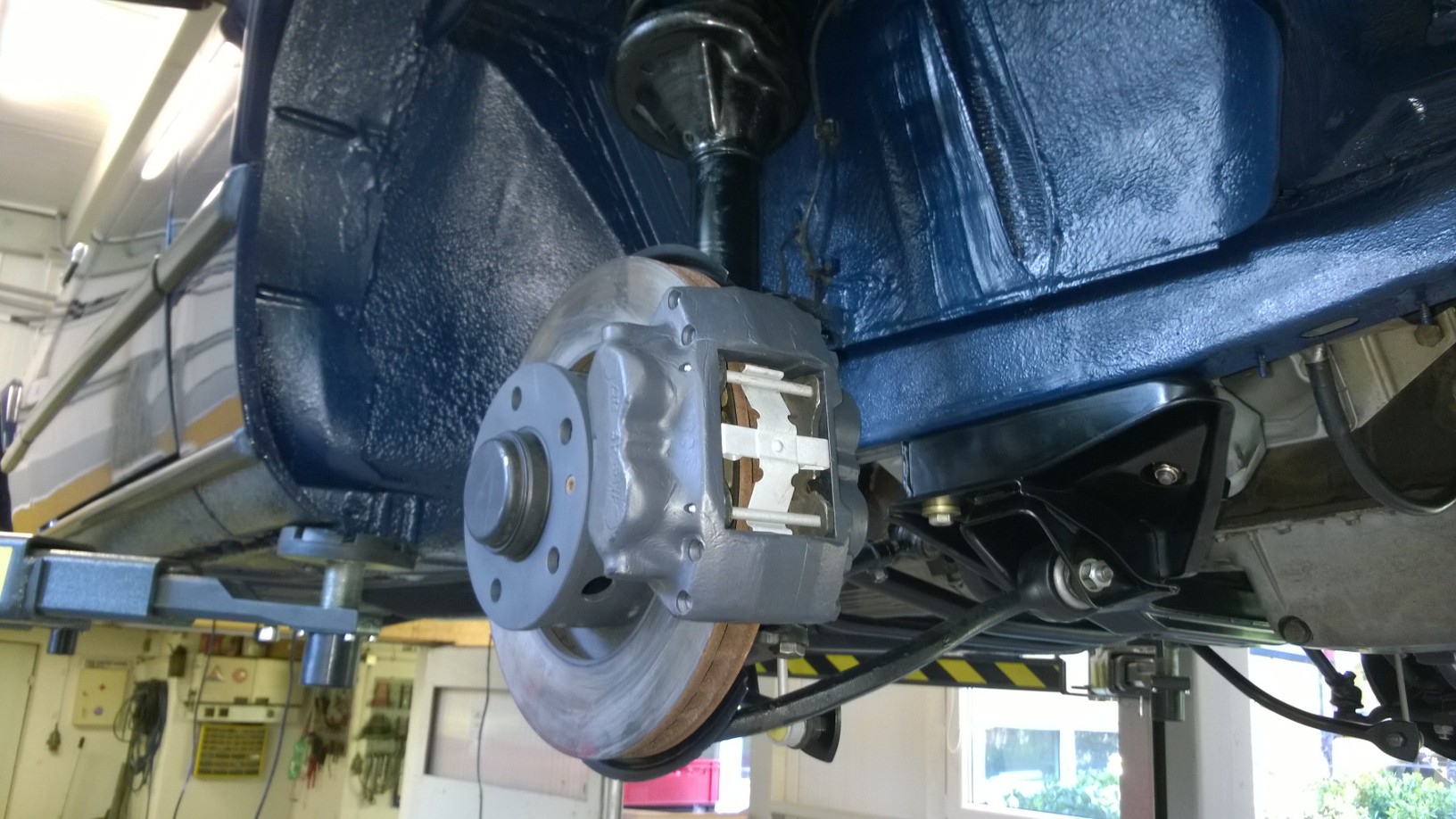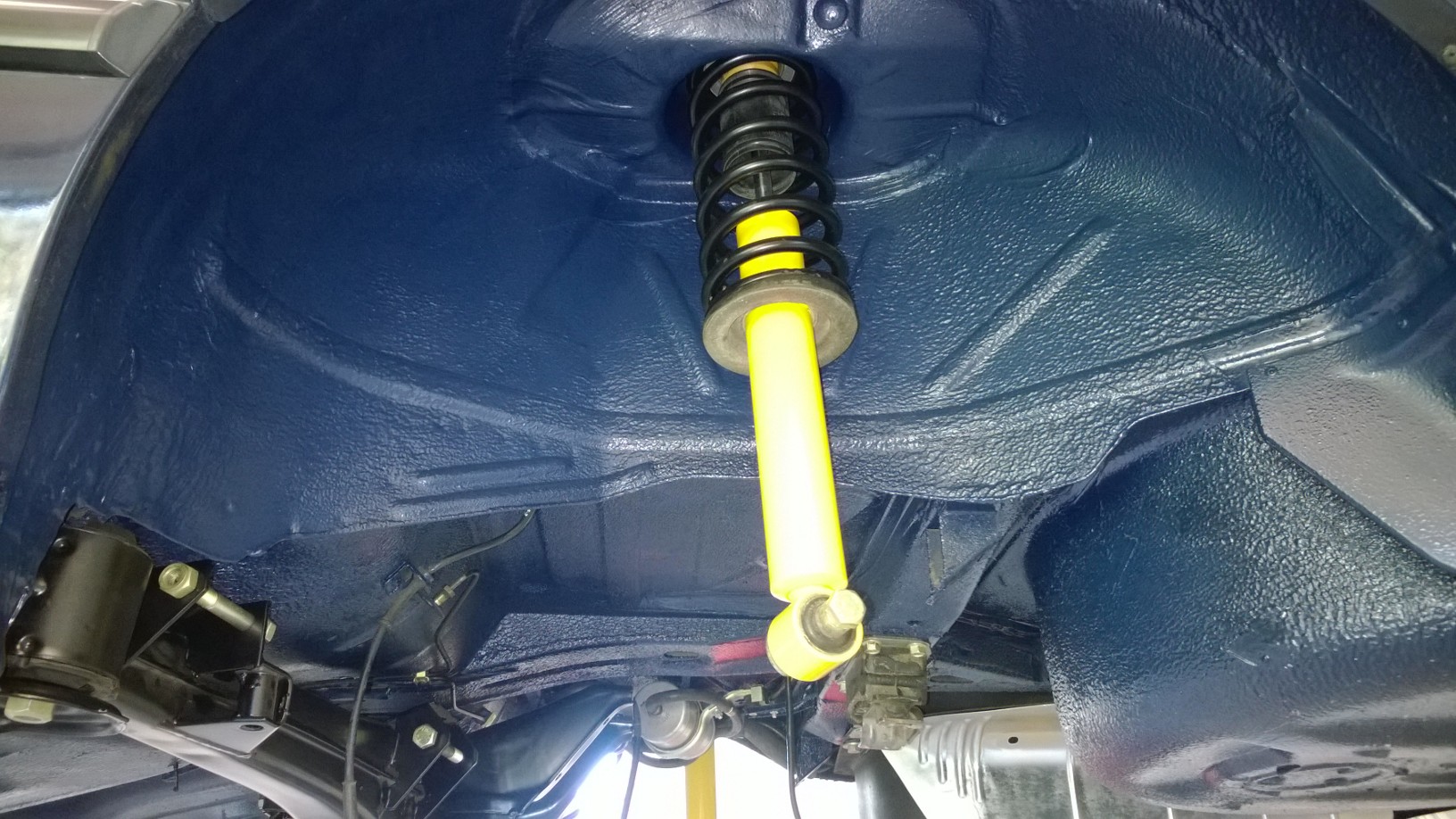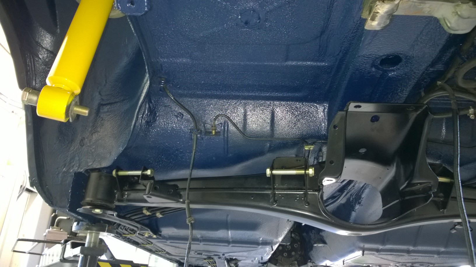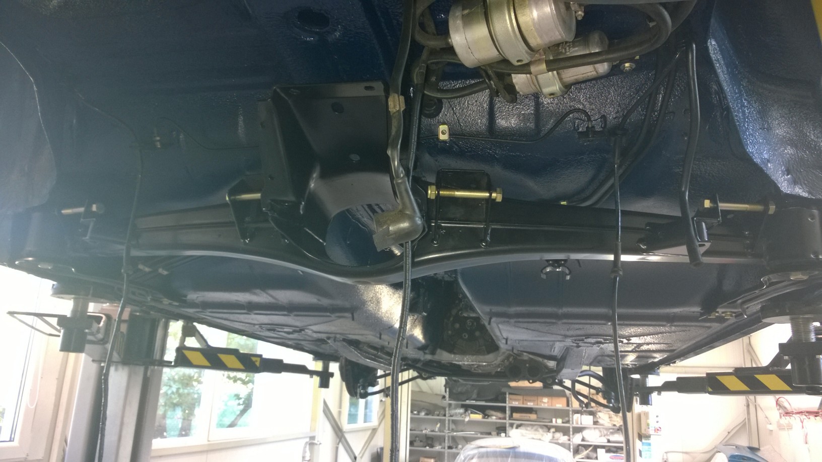 antikorozna ochrana spodku- dokončená antikorózna spodku. Komplet všetko bolo zo spodnej časti zhodené, všetky hadičky, vedenia, káblovaćky, nádrž, diferenciál, kardan... atď. Podľa kódu farby bola namiešaná špeciálna antikorózna farba rovnakej špecifikácie ako keď bolo auto vyrobené - týmto bolo kompletne všetko ošetrené.