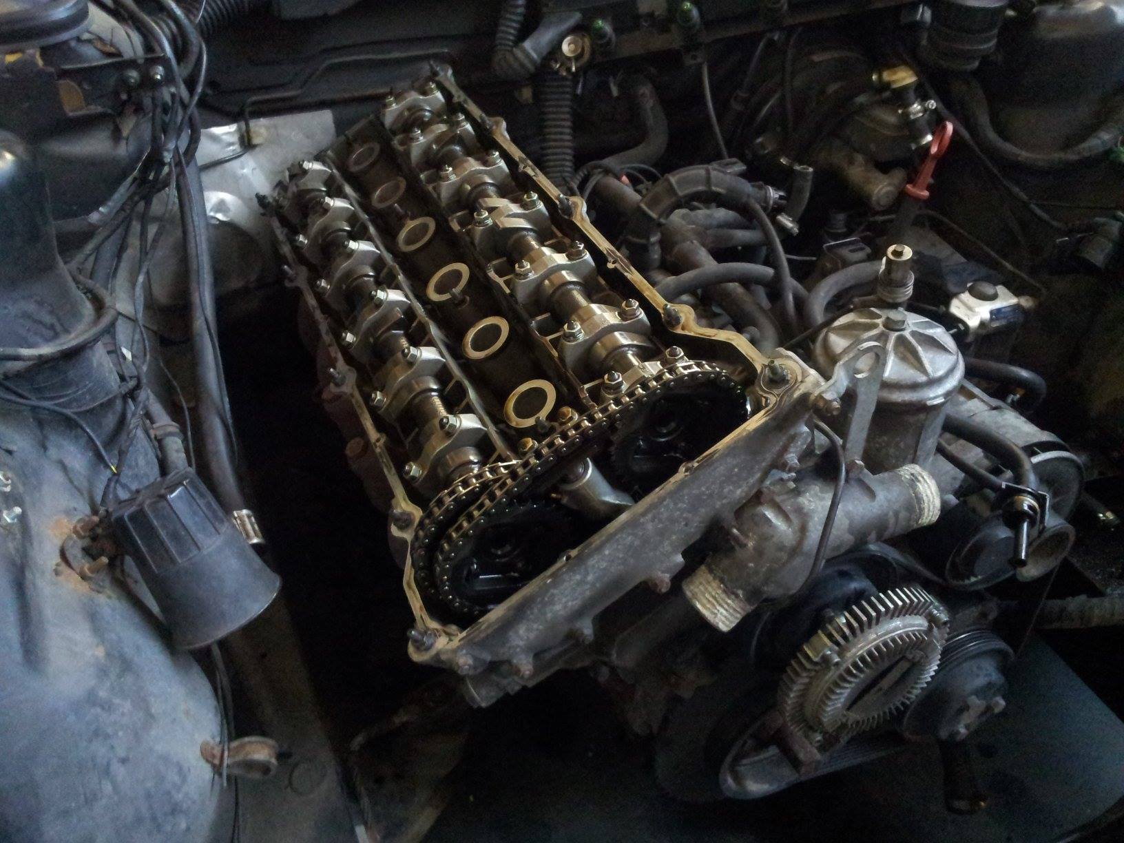 takze.. hlava dole dakujem starynovy gufera som vymenil.. dakujem sebe a kamaratovi.. hlava nahodena.. dakujem sebe kamaratovi a lukaslh zdvihaku. takzka ako pica aj zo zvodmi.. a kym som si ju napichol na vyfuk a na tie kruzky na bloku.. tak mi ju drzal zeriav na motory.. vacka sacia nahodena.. dakujem sebe.. vacka vyfukova zlomena.. dakujem sebe... sanie nahodene dakujem sebe a kamaratovi za svetlo.. dnes som siel po druhu vacku s kamaratom samozrejme nepasovala takze cesta v pici aspon ze fildo je taky ochotny a zobral ju spat.. cize zajtra ju posielam fildovi naspet a dalsi kamaarat mi ju z bystrice posiela uz tu spravnu.. dufam.. takze ked pride vacka tak doskladam hlavu zalozim vičko a pretesnim vanu.. .. nejake foto.. to modre mercury je na renovaciu u dalsieho znameho v servise... nadherne auto V8 4,7 zvuk super kozene sedacky.. uplne popiči