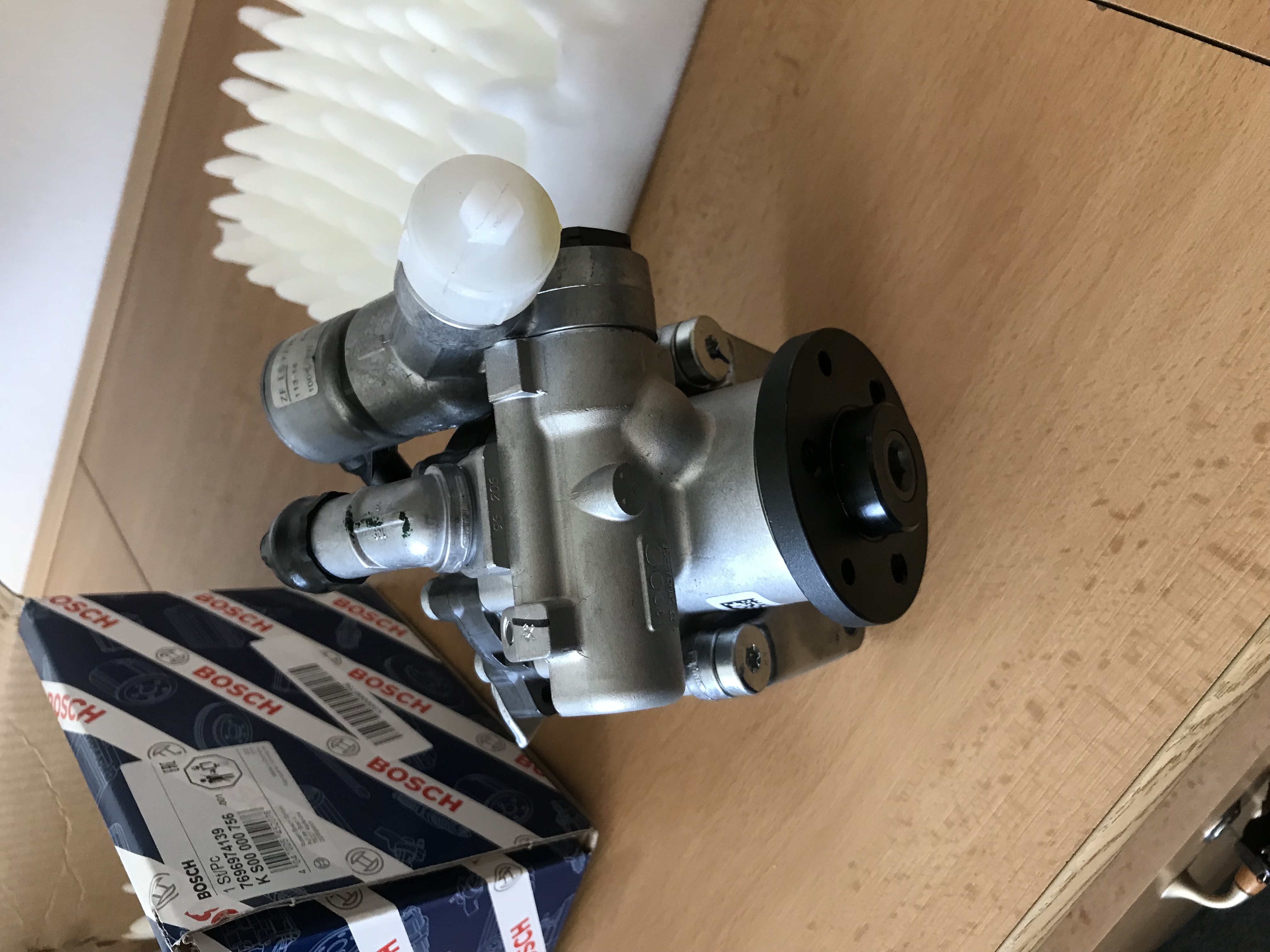 Niekde uniká olej, teda konkrétne cez čerpadlo, treba ho vymeniť. Na druhú stranu, dalo sa s tým jazdiť, akurát bolo treba raz za cca. 1500km doliať ani nie deci oleja. No stále bolo nakvapkané pod autom v garáži, čo by nevadilo, ale hlavne nech je to spravené. Cena super, 315€, Bosch. BTW: zohnať to čerpadlo niekde (iné ako Bosch) je tiež fuška, ale to kvôli tomu aktívnemu riadeniu, na normálne to nie je problém, čo som pozeral.