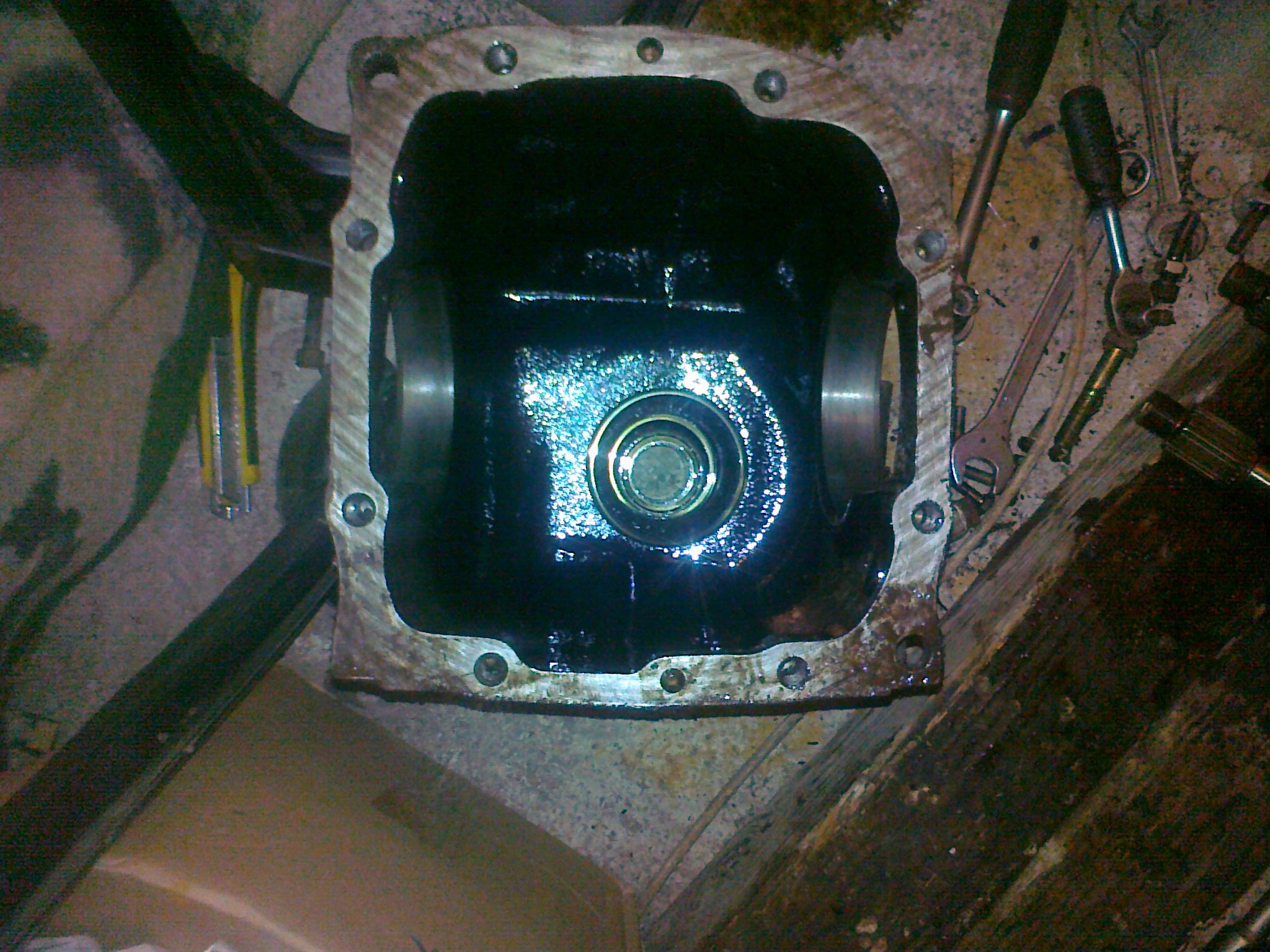 .....inak tá velká matka od kardanu drží jak kurva než sem ju povolil tak mi dala dost zabrat ..sem si vyrobil pomocný nástroj na zaistení príruby len sem použil moc tenký profil a pokrutil sa mi okolo obalu ale hlavny učel splnil a matka povolila