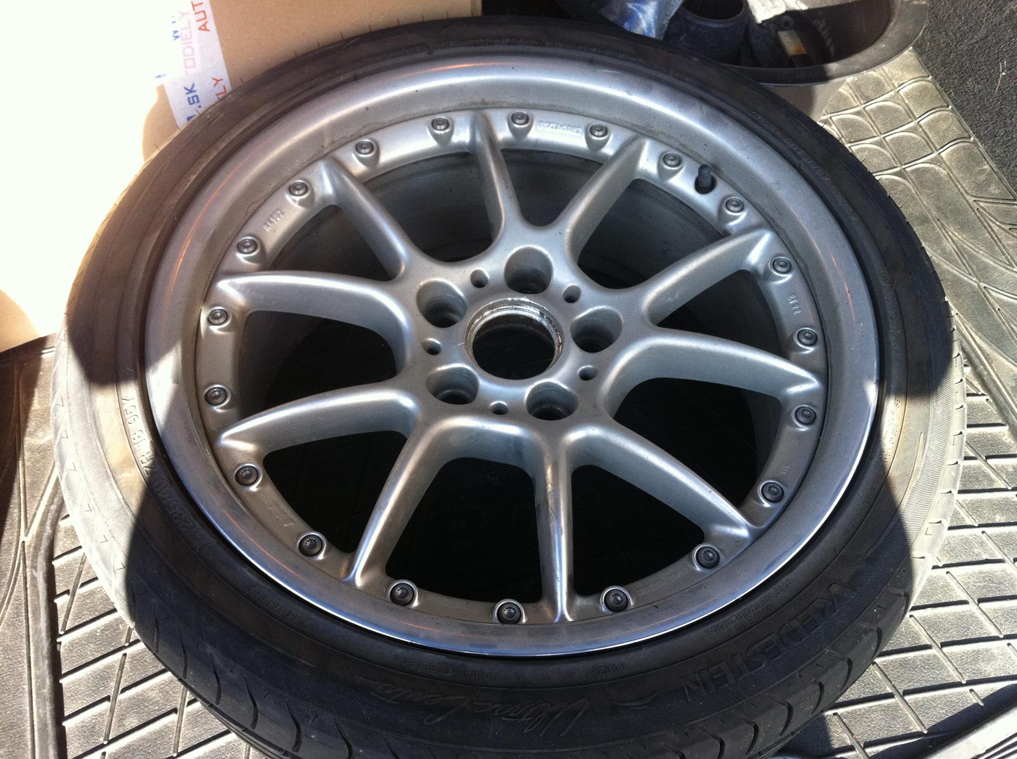 Samozrejme disk je na rovnani a nova guma objednana. Rozsekana guma ktora bola vzadu mala 5,5-6mm dezen co je myslim, ze velmi slusny ubytok za 20t km a kludne s touto sadou mozem ratat este buduci rok. Samozrejme nova guma pojde ku tej predchadzajucej doprava a ta starsia pojde dozadu. Len pruser, ze su to smerove gumy takze budeme obuvat 2x.