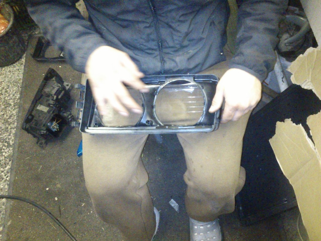 tak pani pridavam nejake fotky z prerabky svetiel ... zadne sme este nedokoncili takze su tam nasadene stare ... smerovky sme zatmavili este o jednu vrstvu a tiez bocne smerovky sme zatmavili ... no ale teraz k tomu podstatnemu ... vybrali sme svetla oddelili sme kryty a vybrali rozptylove sklicka ... cierne casti sme presli Arvou aby sa zvyraznila cierna farba potom sme vylestili kryty svetiel jedno sklicko sme odstranili natrvalo a druhe na dialkove sme potiahli kriklavo zelenou foliou posudte sami A pani policajti je mi jedno kolko mi za to navalite ja to tam budem mat !