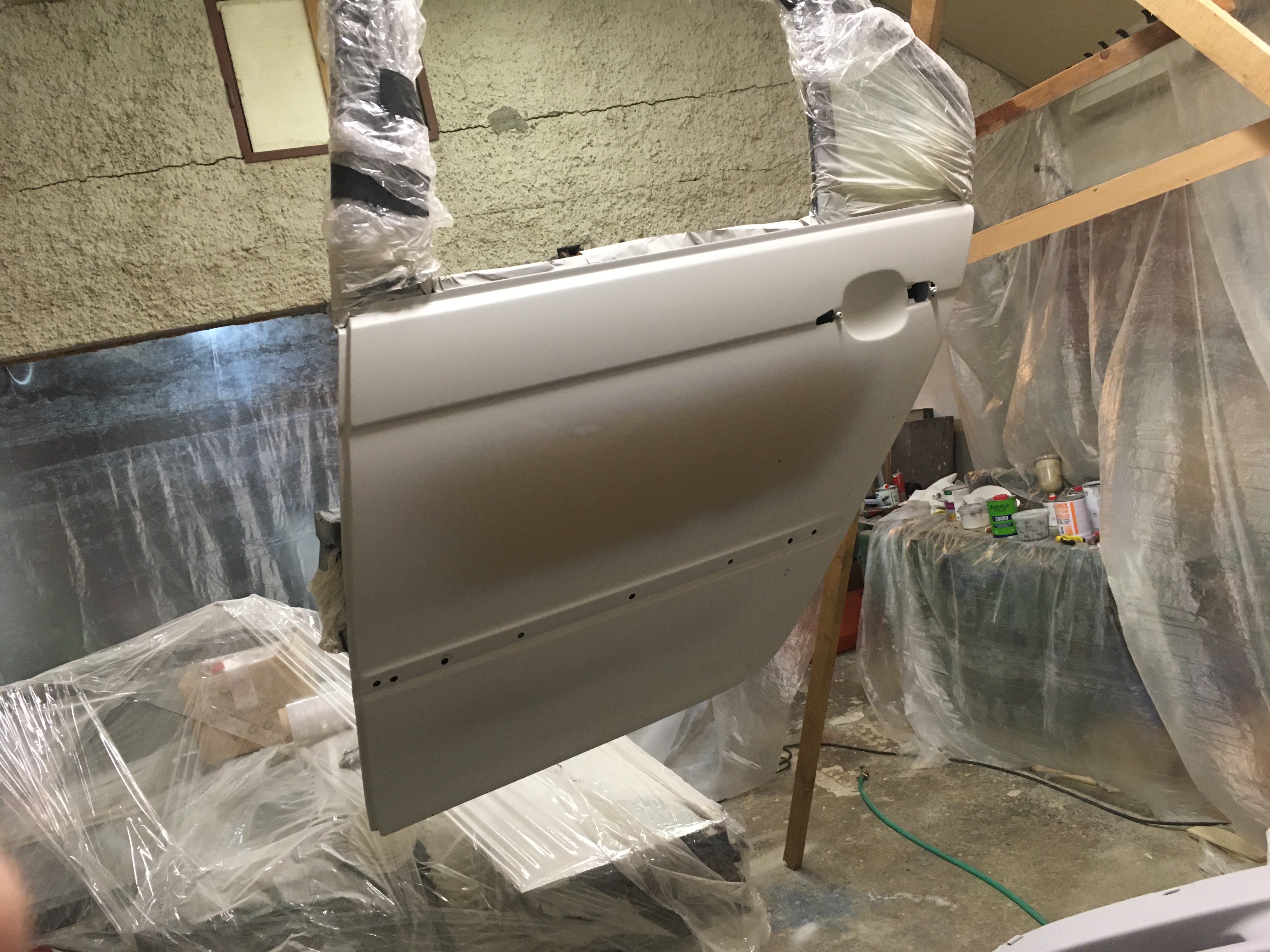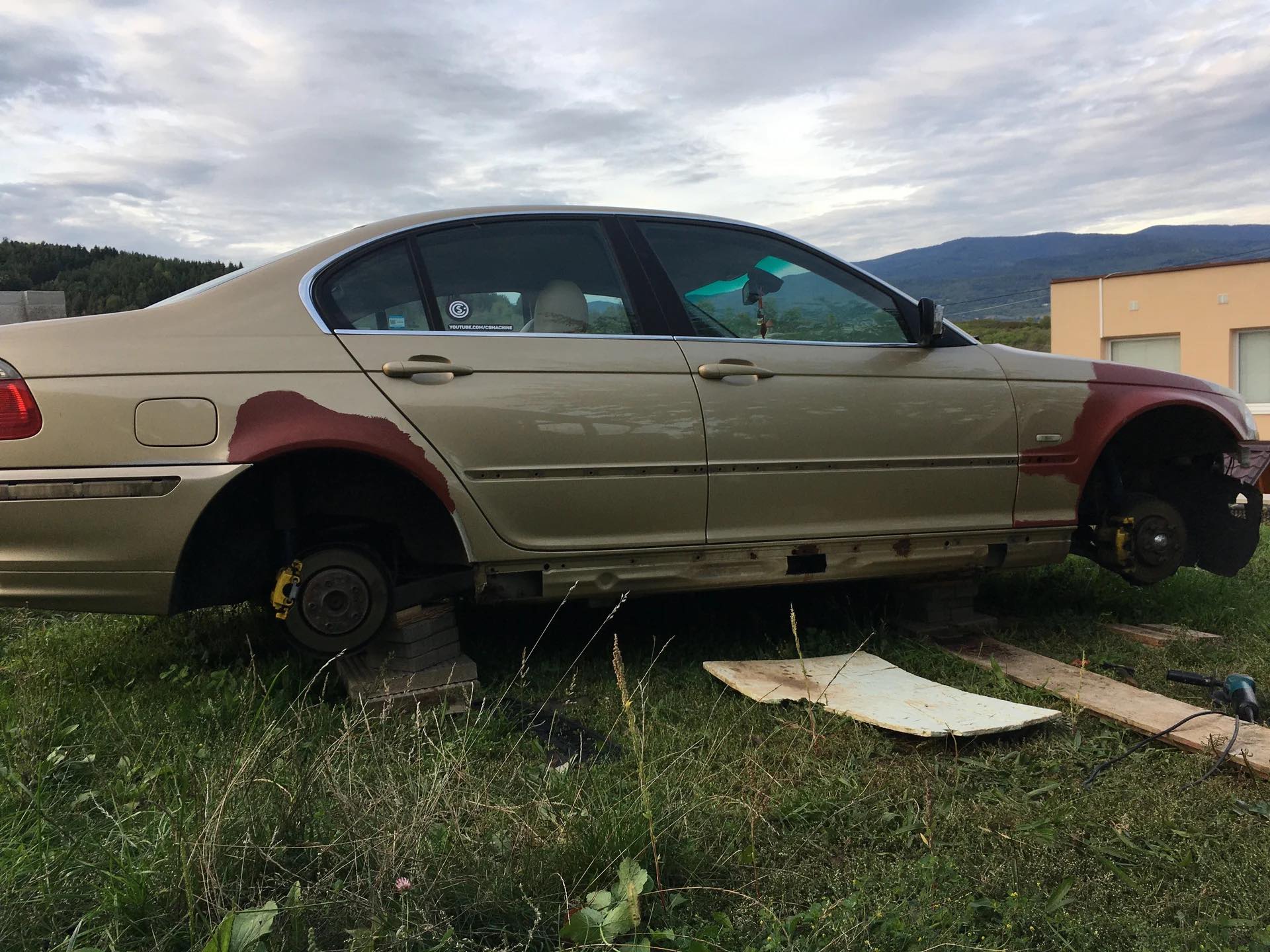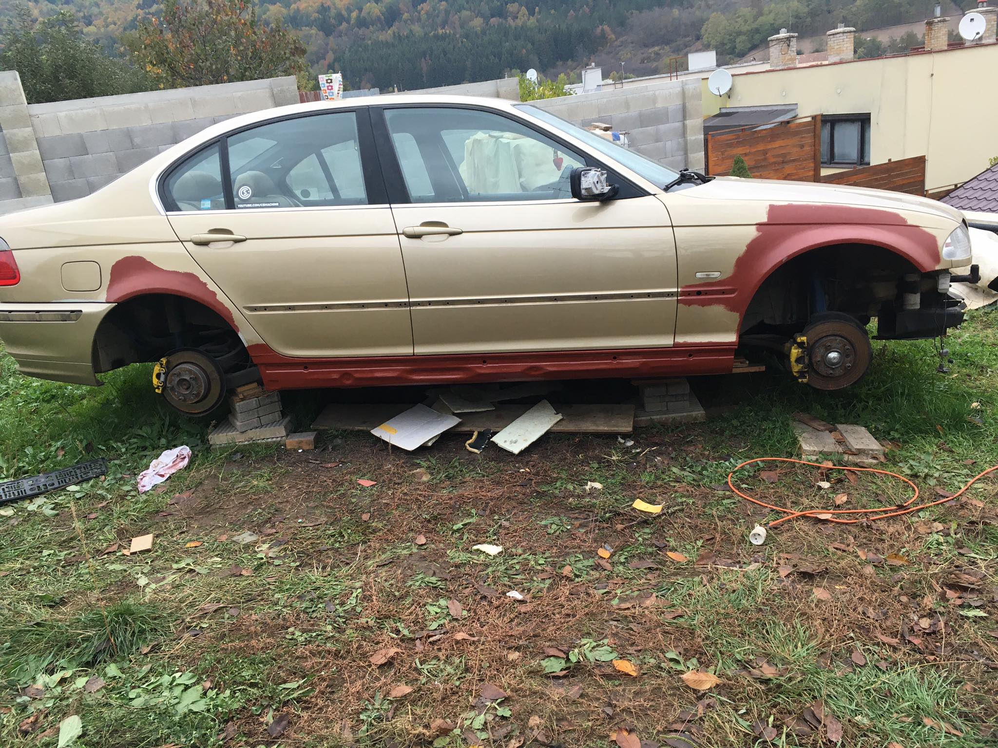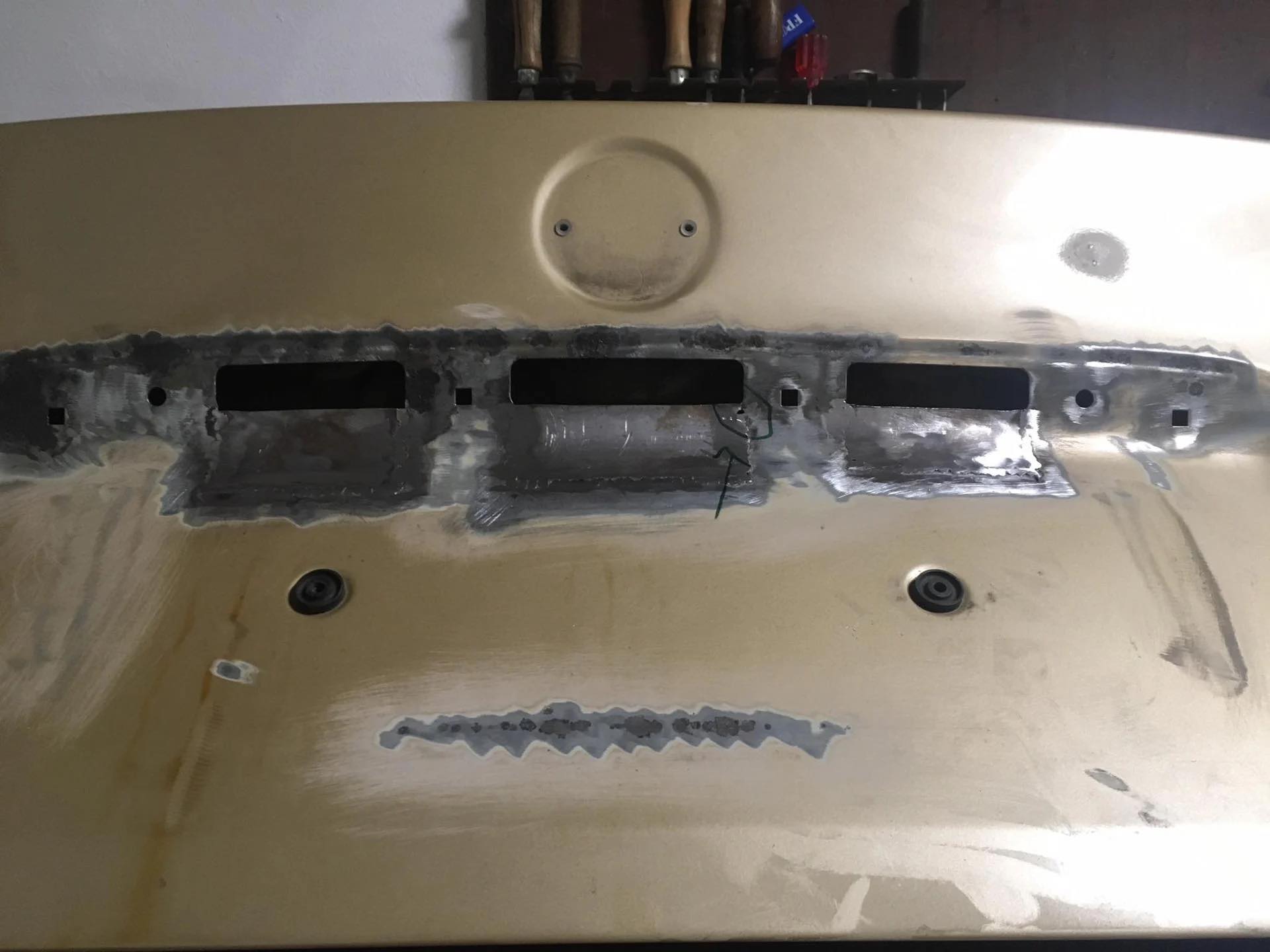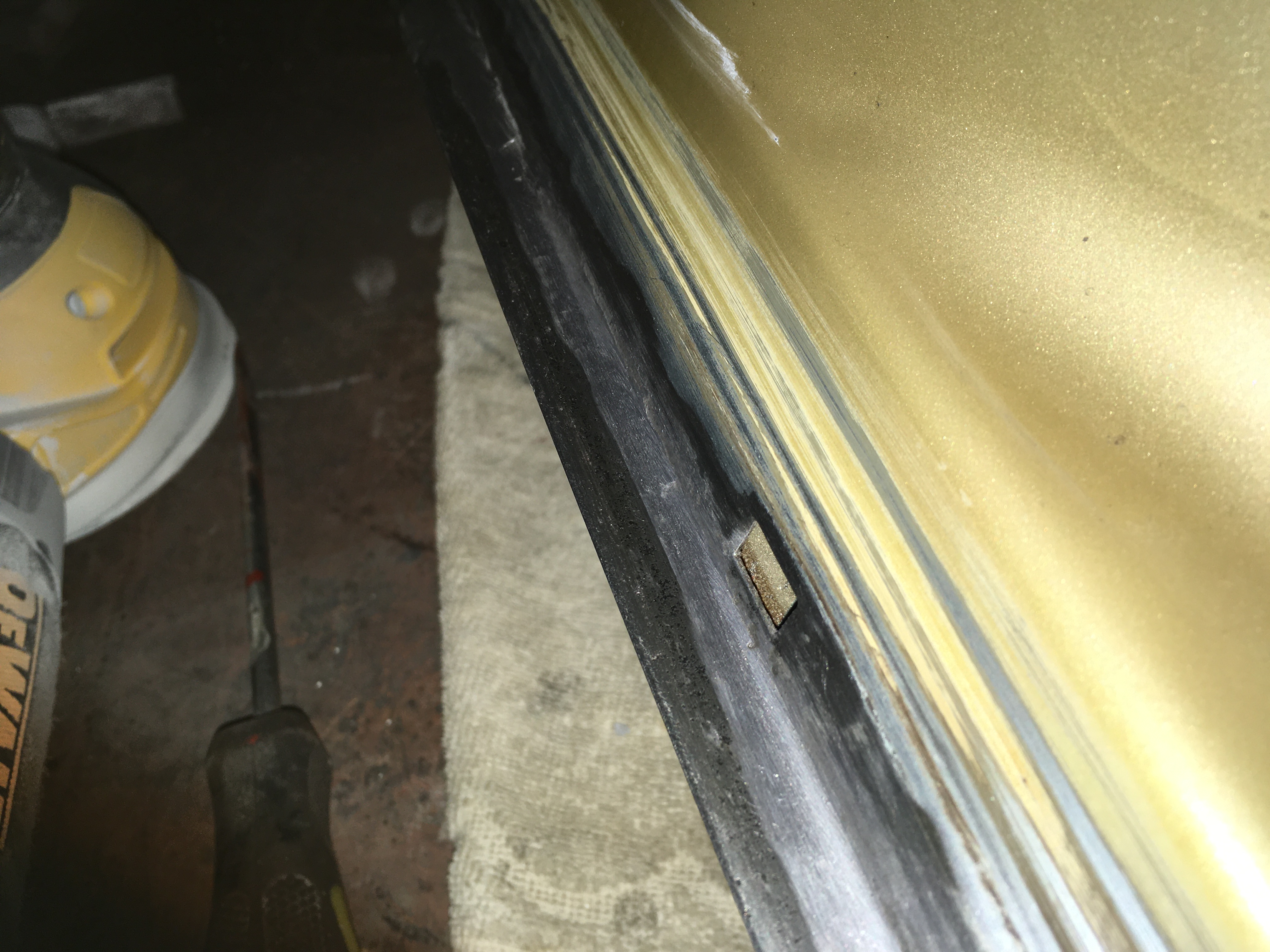 Taakže ďalší update prác. Po dokončení prahov auto stálo nejaký čas vonku nedotknuté. Musel som vymyslieť čo ďalej. Myslím tým s čím ďalším začať, keďže roboty je tam ako na kostole. Voľba padla na lakovanie. Tu som sa rozhodol pokračovať v tradícii urob si všetko sám, a tak som sa do toho pustil. Bola to pre mňa asi najhoršia robota, nakoľko práca s tmelom a všetky tieto veci okolo toho naozaj nie sú mojou šalkou kávy. Nejaké skúsenosti s tým už mám, keďže som si niekoľkokrát robil komplet prípravu pod lak na mojich motorkách (základ, tmelenie, plnič, finalne brusenie) lenže konečnú fázu vždy zavŕšil lakýrnik. Tentokrát tomu tak nebolo. Chcel som získať nové skúsenosti, a tak som začal. Auto som lakoval po častiach ako sa dalo. Robil som to totiž v otcovej stolárskej dielni, ktorú som predtým vyčistil. Je to jediné miesto kde je piecka a tak nebol problém striekať pri 25 stupňoch zatiaľčo vonku bolo mínus 5. Tu by som sa chcel ale pozastaviť. Mojou snahou bolo docieliť to, že auto bude v jednom odtieni zlatej metalízy. Profesionálny výsledok som nečakal (ako by som aj mohol), no zas nie je to úplná “garážova” lakovačka sprejom z Obi. Pravdupovediac som sa pri tomto procese naozaj veľa naučil. Keď sa pustím niekedy do druhého auta, tak už budem presne vedieť na čo si dávať pozor. V tomto prípade by mi k naozaj top výsledku pomohlo len menej prašné prostredie (máme, nová dielňa, no je tam zima) a dať si pozor pri brúsení plniču, nakoľko pod určitým uhlom niekde vidno stopy po brúsení, no nie je to nič strašné. Hold…podcenil som schopnosť svetlej metalízy vyzdvihnúť aj sebemenšiu nedokonalosť.