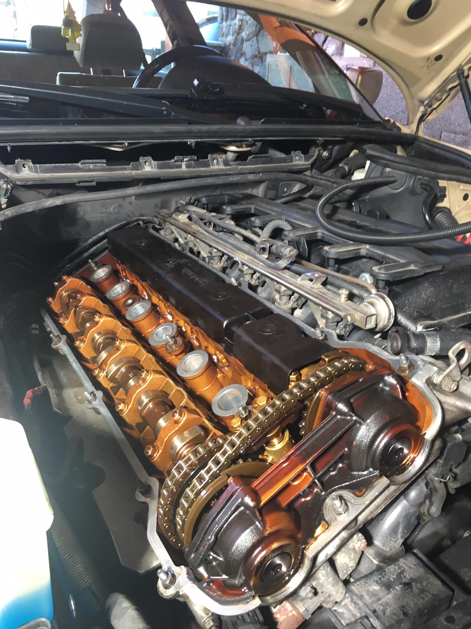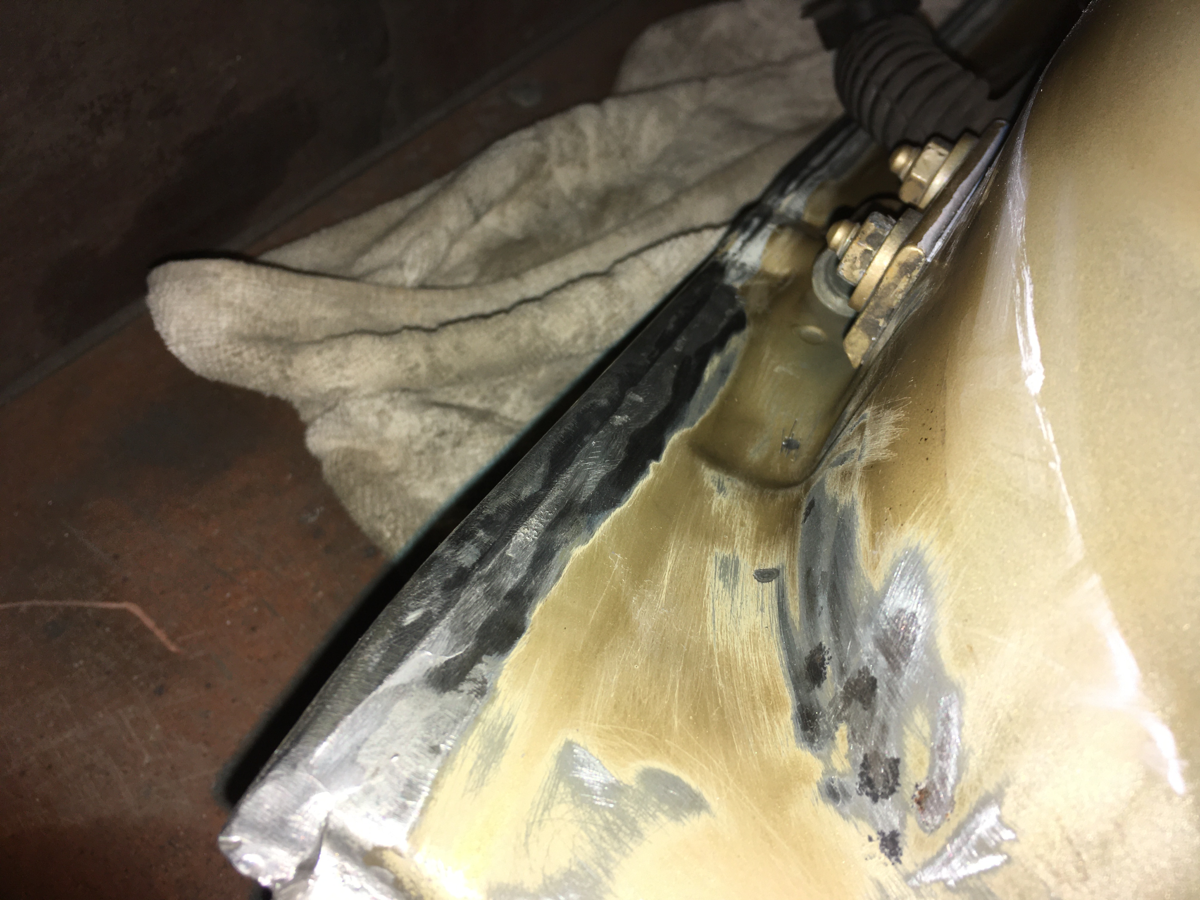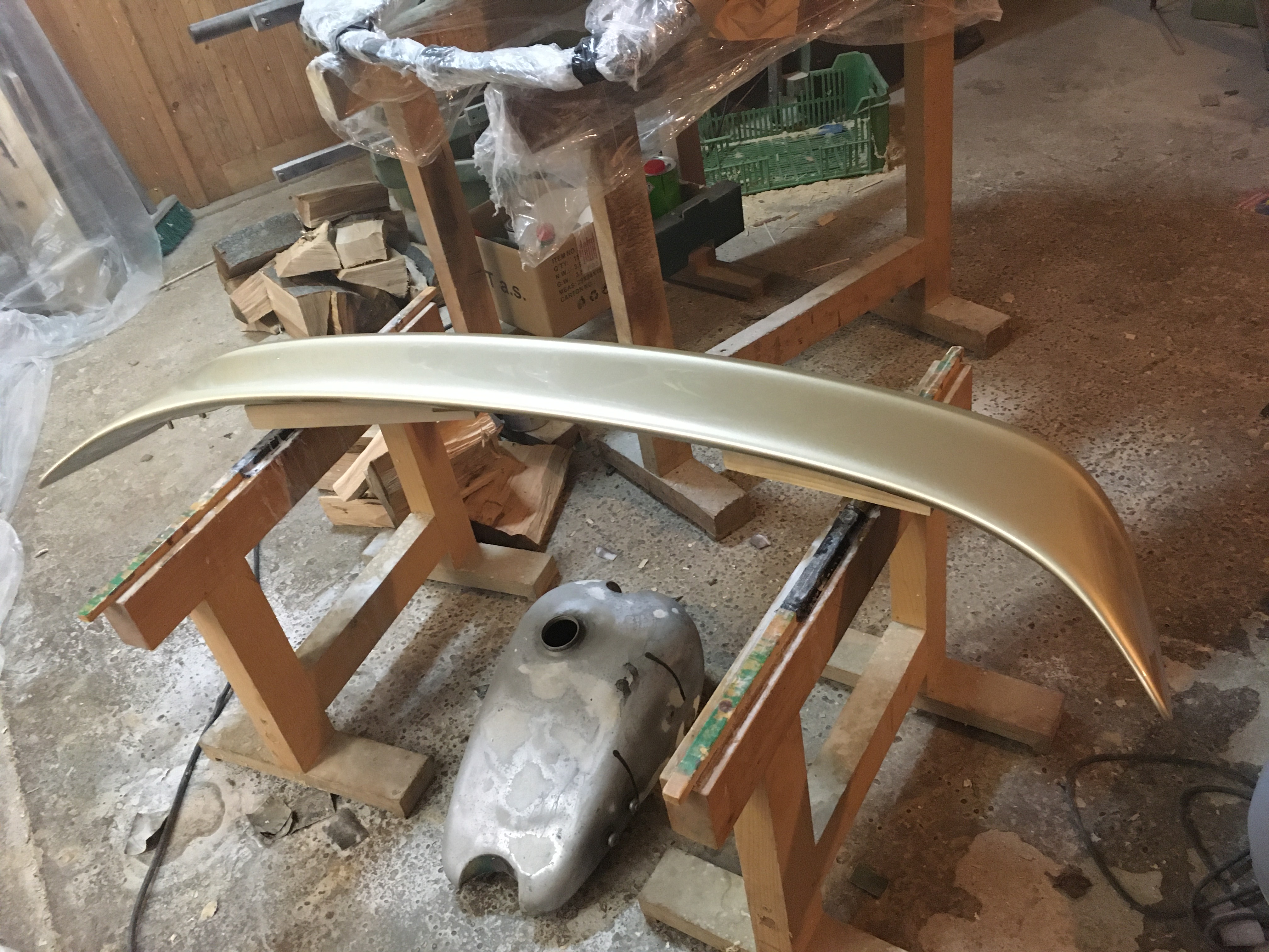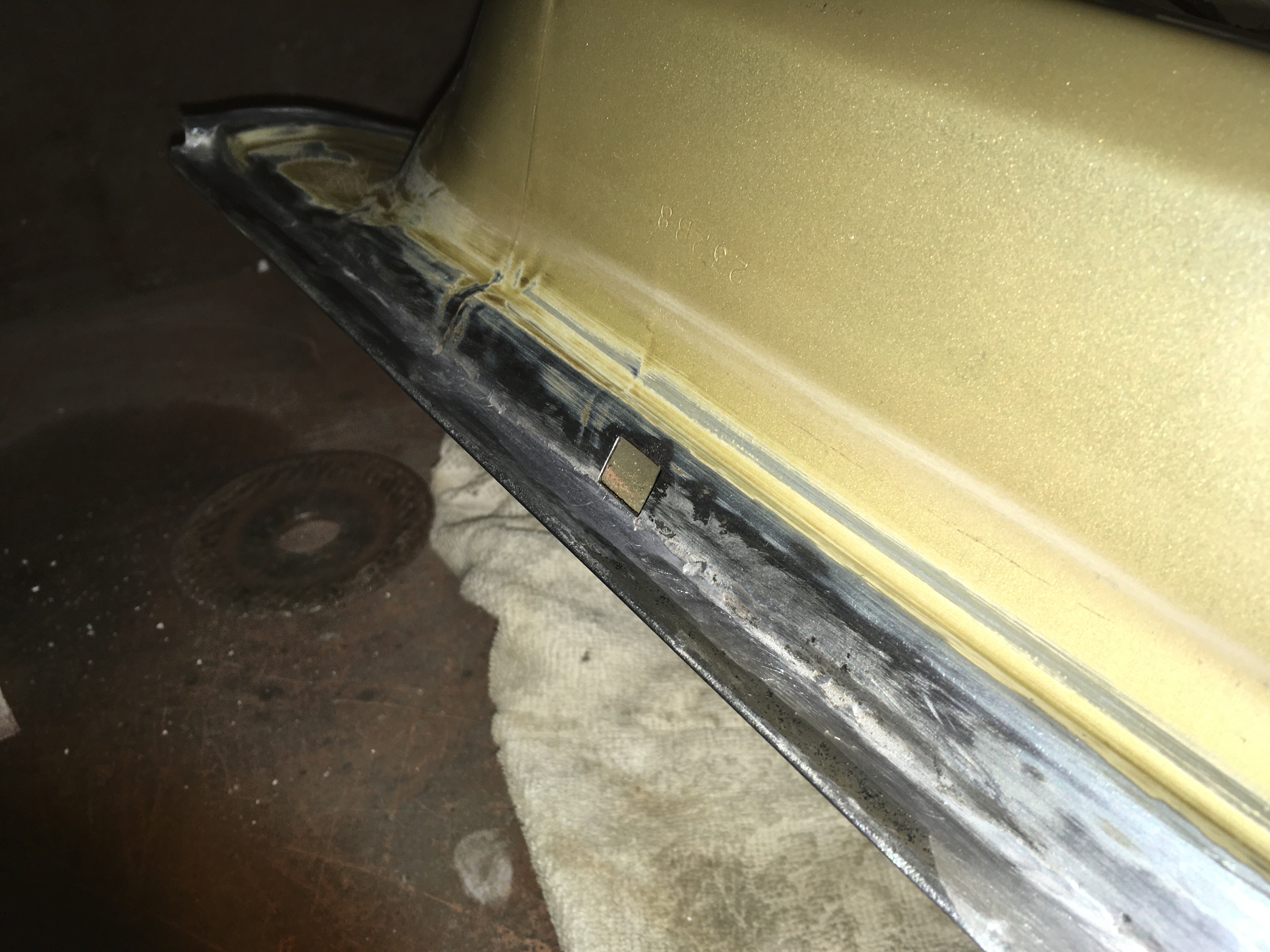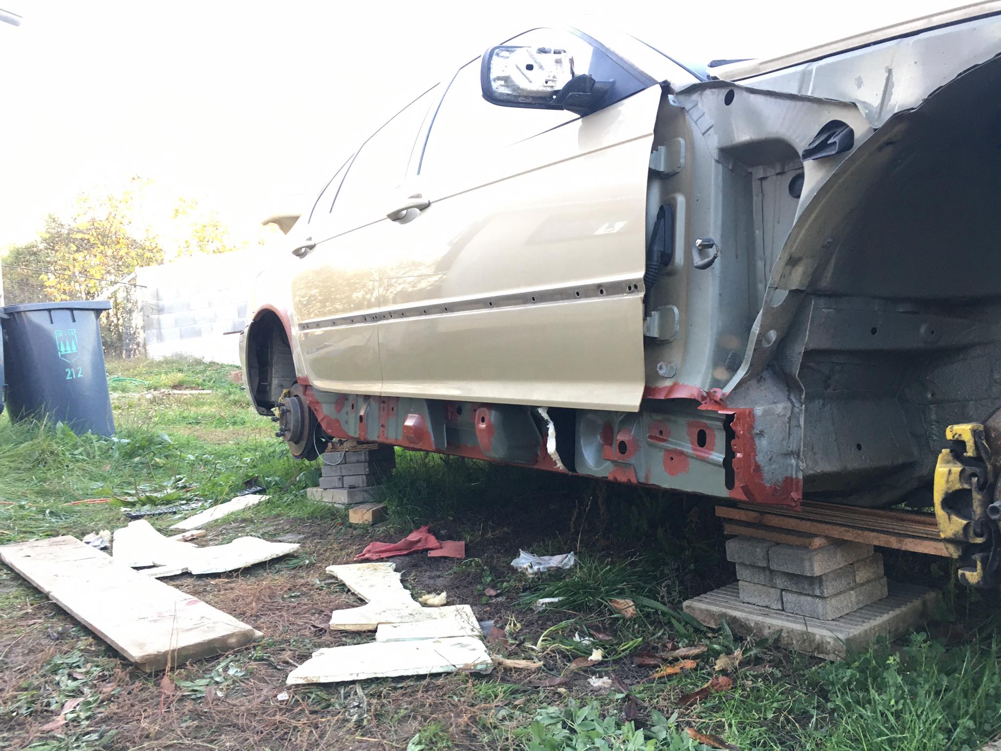 Taakže ďalší update prác. Po dokončení prahov auto stálo nejaký čas vonku nedotknuté. Musel som vymyslieť čo ďalej. Myslím tým s čím ďalším začať, keďže roboty je tam ako na kostole. Voľba padla na lakovanie. Tu som sa rozhodol pokračovať v tradícii urob si všetko sám, a tak som sa do toho pustil. Bola to pre mňa asi najhoršia robota, nakoľko práca s tmelom a všetky tieto veci okolo toho naozaj nie sú mojou šalkou kávy. Nejaké skúsenosti s tým už mám, keďže som si niekoľkokrát robil komplet prípravu pod lak na mojich motorkách (základ, tmelenie, plnič, finalne brusenie) lenže konečnú fázu vždy zavŕšil lakýrnik. Tentokrát tomu tak nebolo. Chcel som získať nové skúsenosti, a tak som začal. Auto som lakoval po častiach ako sa dalo. Robil som to totiž v otcovej stolárskej dielni, ktorú som predtým vyčistil. Je to jediné miesto kde je piecka a tak nebol problém striekať pri 25 stupňoch zatiaľčo vonku bolo mínus 5. Tu by som sa chcel ale pozastaviť. Mojou snahou bolo docieliť to, že auto bude v jednom odtieni zlatej metalízy. Profesionálny výsledok som nečakal (ako by som aj mohol), no zas nie je to úplná “garážova” lakovačka sprejom z Obi. Pravdupovediac som sa pri tomto procese naozaj veľa naučil. Keď sa pustím niekedy do druhého auta, tak už budem presne vedieť na čo si dávať pozor. V tomto prípade by mi k naozaj top výsledku pomohlo len menej prašné prostredie (máme, nová dielňa, no je tam zima) a dať si pozor pri brúsení plniču, nakoľko pod určitým uhlom niekde vidno stopy po brúsení, no nie je to nič strašné. Hold…podcenil som schopnosť svetlej metalízy vyzdvihnúť aj sebemenšiu nedokonalosť.