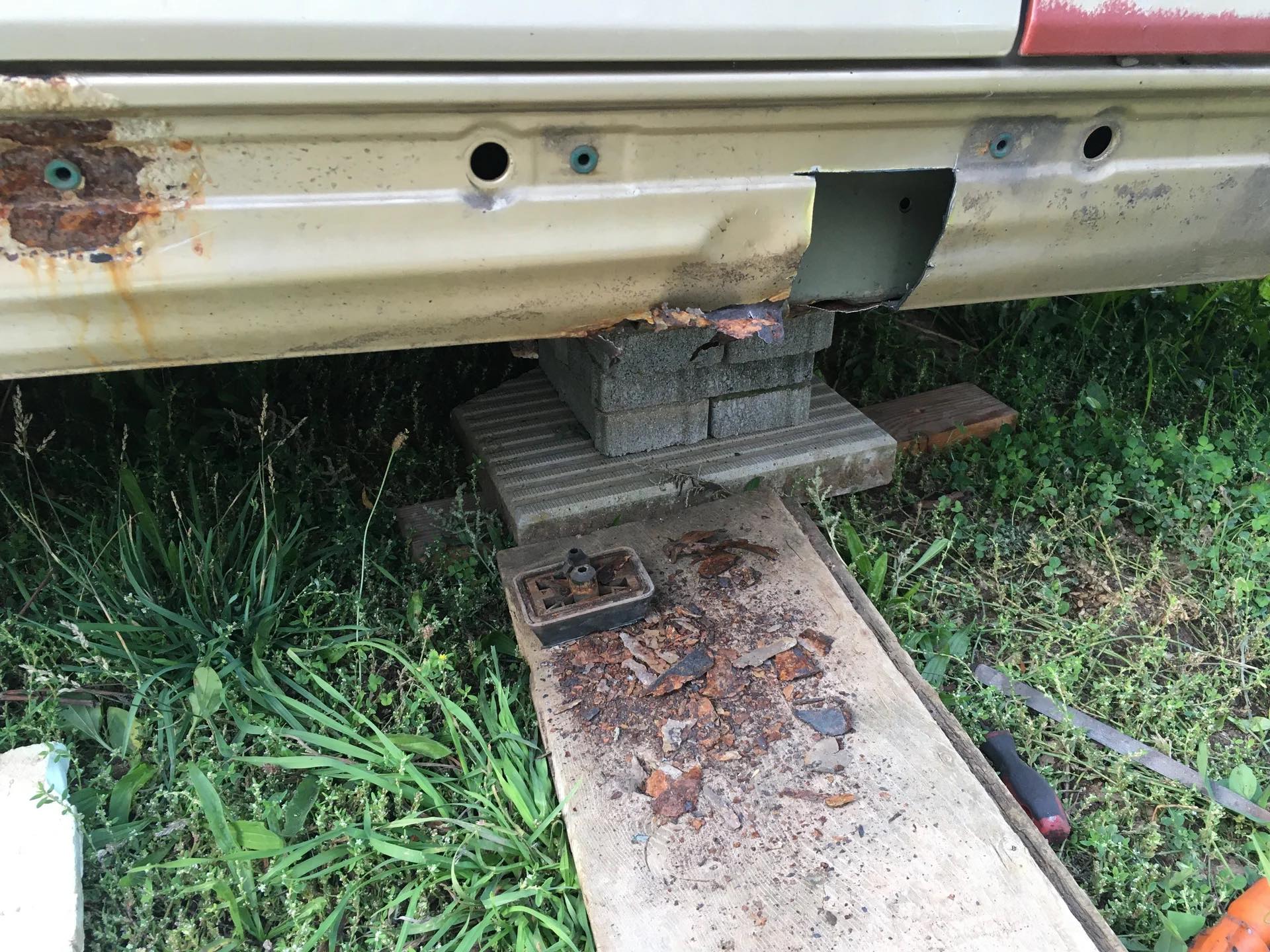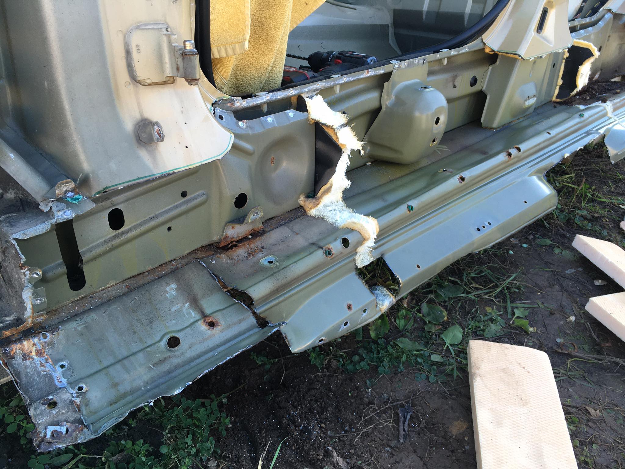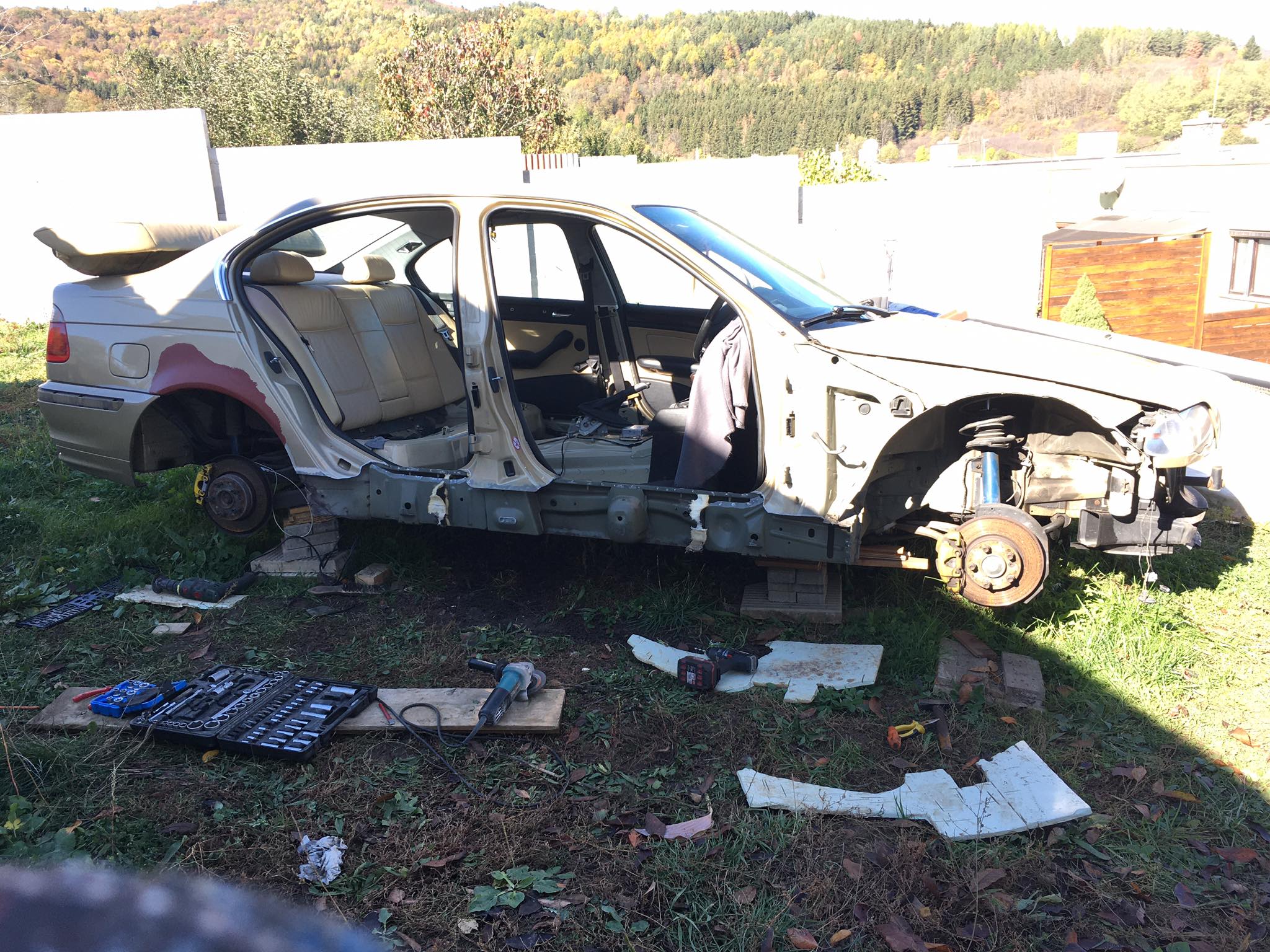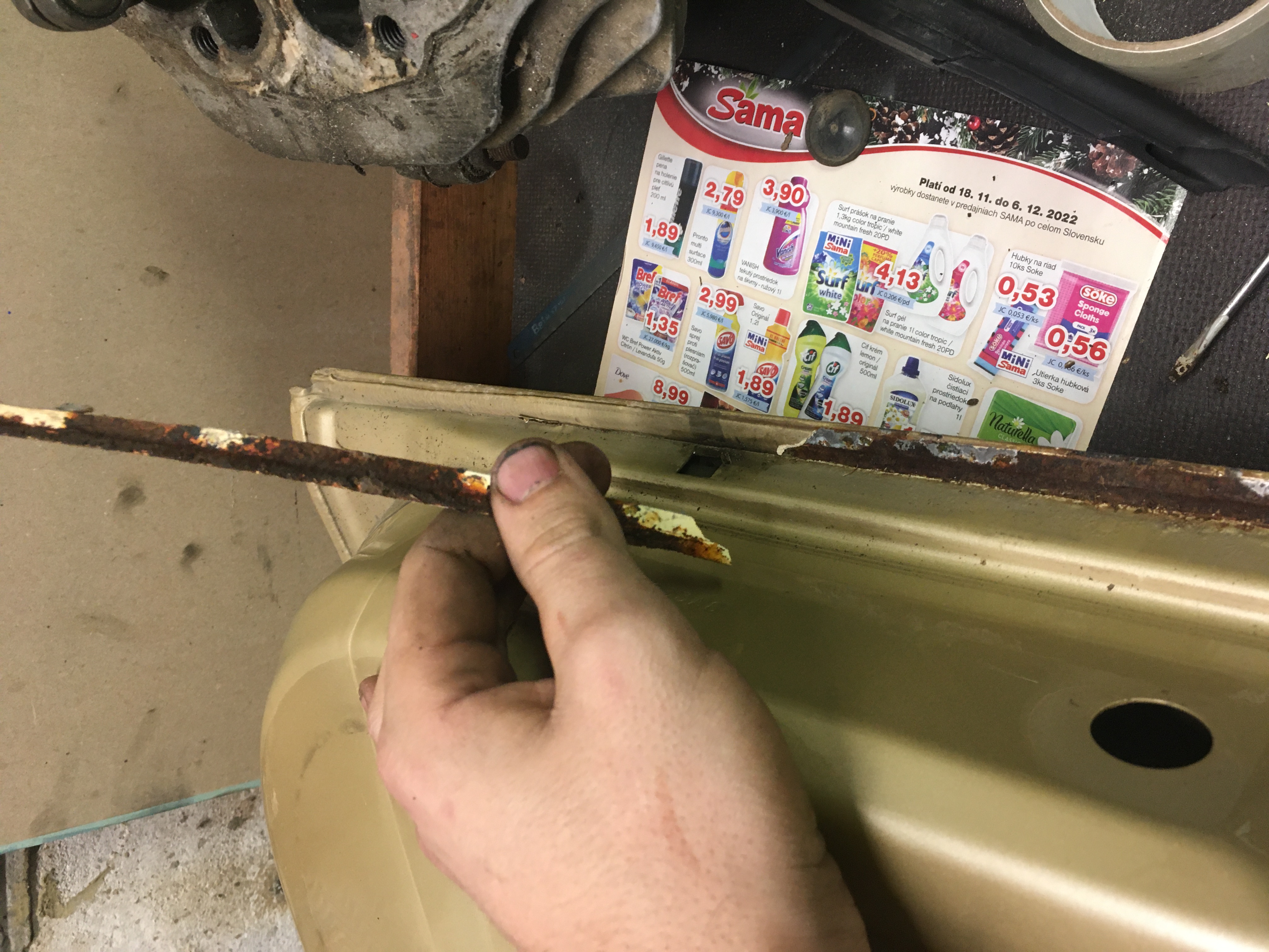 Pridávam aj foto, čo som stihol porobiť v priebehu. Auto teraz vypadá ako z cirkusu, no na pekný vzhľad si bude musieť počkať. Potrebujem ho už ako soľ. O nejaký týždeň - dva idem na STK, a tak musí byť všetko pripravené. Dokončujem detaily a zháňam potrebné diely ako blázon, napríklad dočasné sedačky, keďže moje som dal opraviť. Ale teším sa, že po pol roku mám zas pojazdné auto a je porobené, bez hrdzavých prahov :)