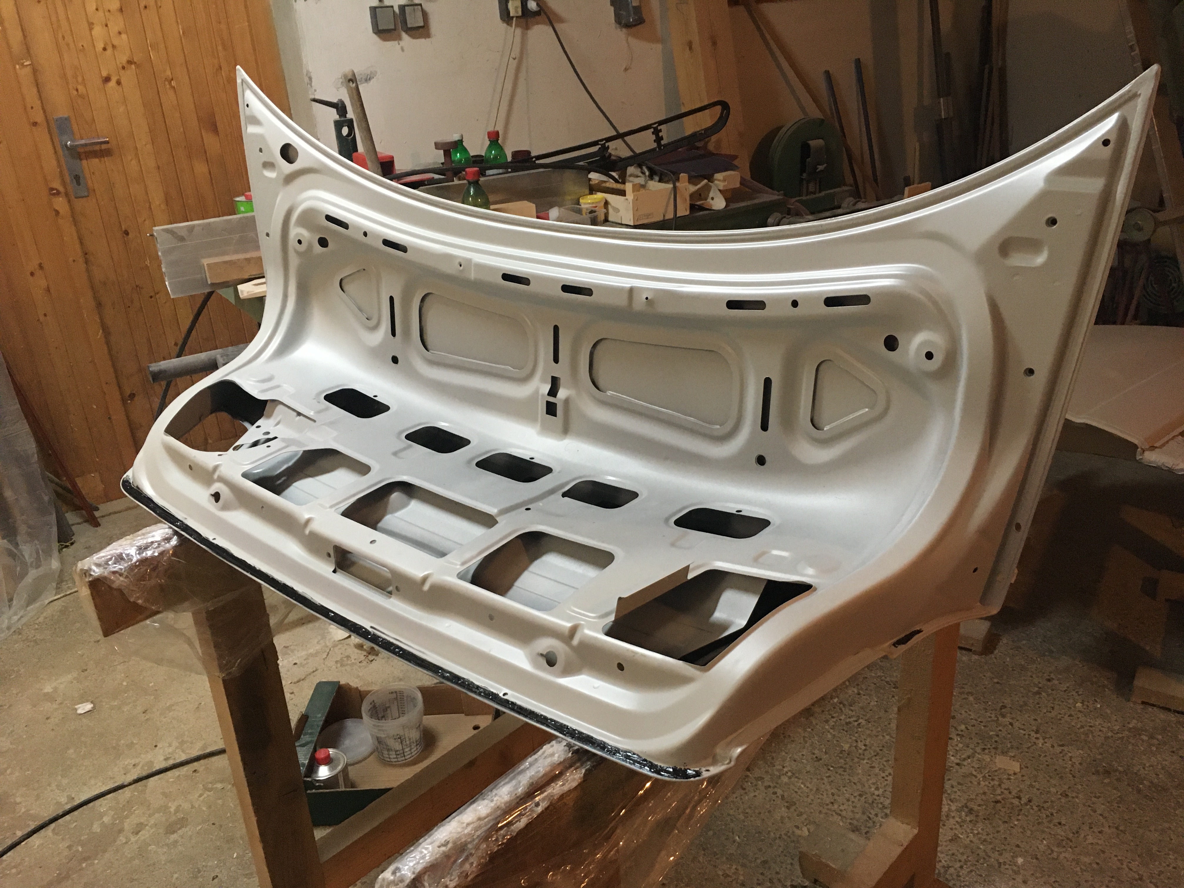 Tak som to celé nejako v priebehu decembra a začiatku januára zmastil. Spravili sa: kufor, krídlo, zadné dvere, kľučky, lišta osvetlenia špz a oba nárazníky. To je na tento stage všetko. Ostatok laku sa bude robiť niekedy na jar alebo v lete v našej novej dielni, ktorú sme s kamošom postavili - uvidím podľa času keďže toho bude veľa (končím školu a nejaká práca atď…). Predné blatníky som kúpil Taiwanské, nechcelo sa mi plátať druhý zhnitý pôvodný, sadli fakt dobre. Bude treba len minimálne úpravy a dopasovanie.