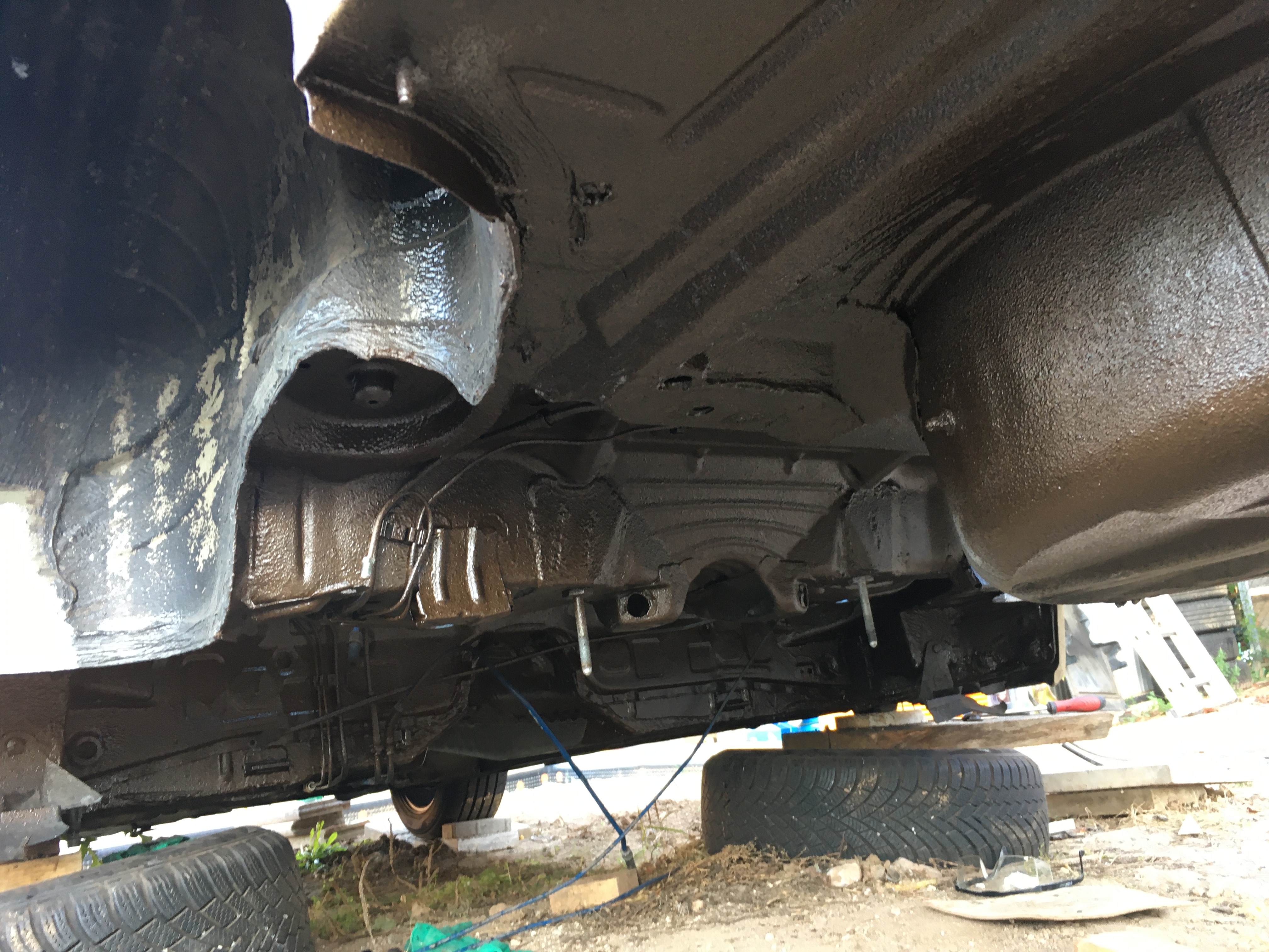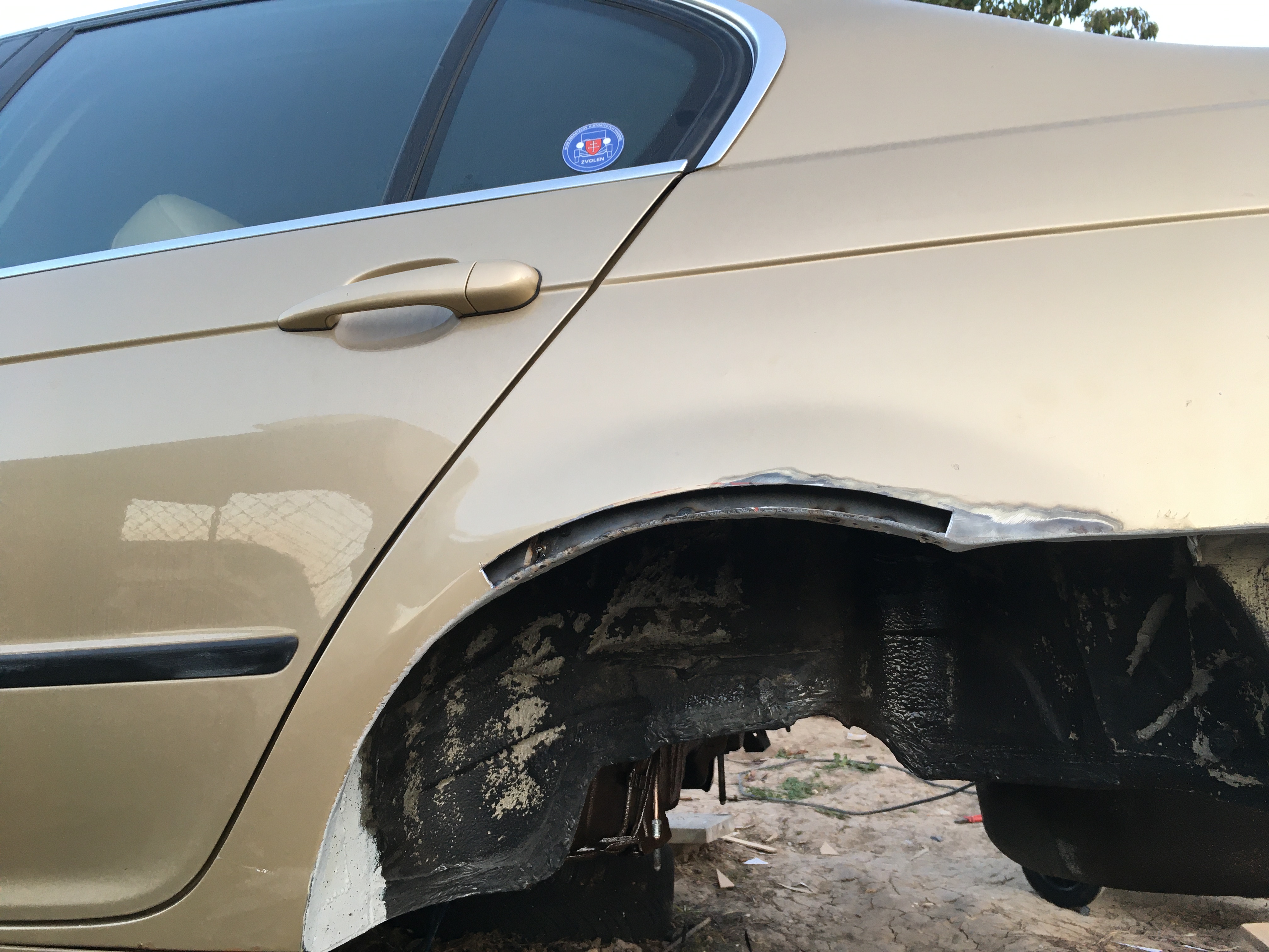 Auto som doskladal a dal na geometriu. Poviem vám teda...bol to šok. Auto prestalo vrzgat a pukať, bolo tvrdšie a zároveň som bol milo prekvapený ovládaním auta. Diferenciál 3.38 bol asi najlepšie minutých 60€ v mojom živote, bol to zázrak. Dokázal pretvoriť 323ku na 328čku 😂 (samozrejme ber s rezervou). Auto dostalo o cca 12% väčší krutak na kolesá, co je teda cítiť. Aj zodrata spojka si oddýchla a dokázal som odgumovať z krizovatky a "spalit" pneumatiky...no teda aspoň prvých pár dní kym som spojku úplne nedorazil😎. Najprv som z dôvodu dorabania druhých vystuh do podlahy jazdil bez zadnychy sedaciek a to teda bolo hlucne (kvôli polyuretanom) ale po založení calunenia a sedaciek naspäť pominulo a je to hadam aj také isté ako predtým. Zároveň som potom ešte vypilil vonkajšie lemy blatnikov a vovaril dnu nový plech ale zatial však nedisponujem fotkami z tohoto môjho počínania... Dôvod bol jednoduchý. V roku 2014 (predpokladám) prešlo auto klampiarskou robotou, kde navarili nové oba zadné blatniky, ale len ich vonkajšiu časť. Normálne si dali s tým robotu a fakt pekne to spravili, aj medzery ku dverám sedeli...aby to v zapätí odflakli tým, že vnútorné zadné blatniky nechali také polohrdzave a iba medzi to natlacili kilo nekvalitneho tmelu. Zakončili to najhoršie ako mohli, tzn. nastriekanim najväčšieho bordelu aký mohli na auto dať - gumoasfaltu. Nie som odborník na náterové hmoty podvozku, ale viem že väčšina predávaných "unterbodenschutz" za 20€ je shit a do roka stvrdne na kameň. Keď do hry vstúpi pravý kameň od kolies a odlupi kúsky toho "unterbodenschutz" tak sa tvoria krásne kapsy vody ktoré sa zväčšujú a zväčšujú. No a voda a hlavne slaná voda v zime skrytá pod gumoasfaltom plechu teda moc nechutí, skôr plech chutí jej... Takže preto ma čakalo hento nemilé prekvapenie. Gumoasfalty na moje auto už nikdy nesmú 🙂. Radšej každý rok nafukam na celý podvozok Dinitrol vosk (nie nerobím im reklamu 😂).