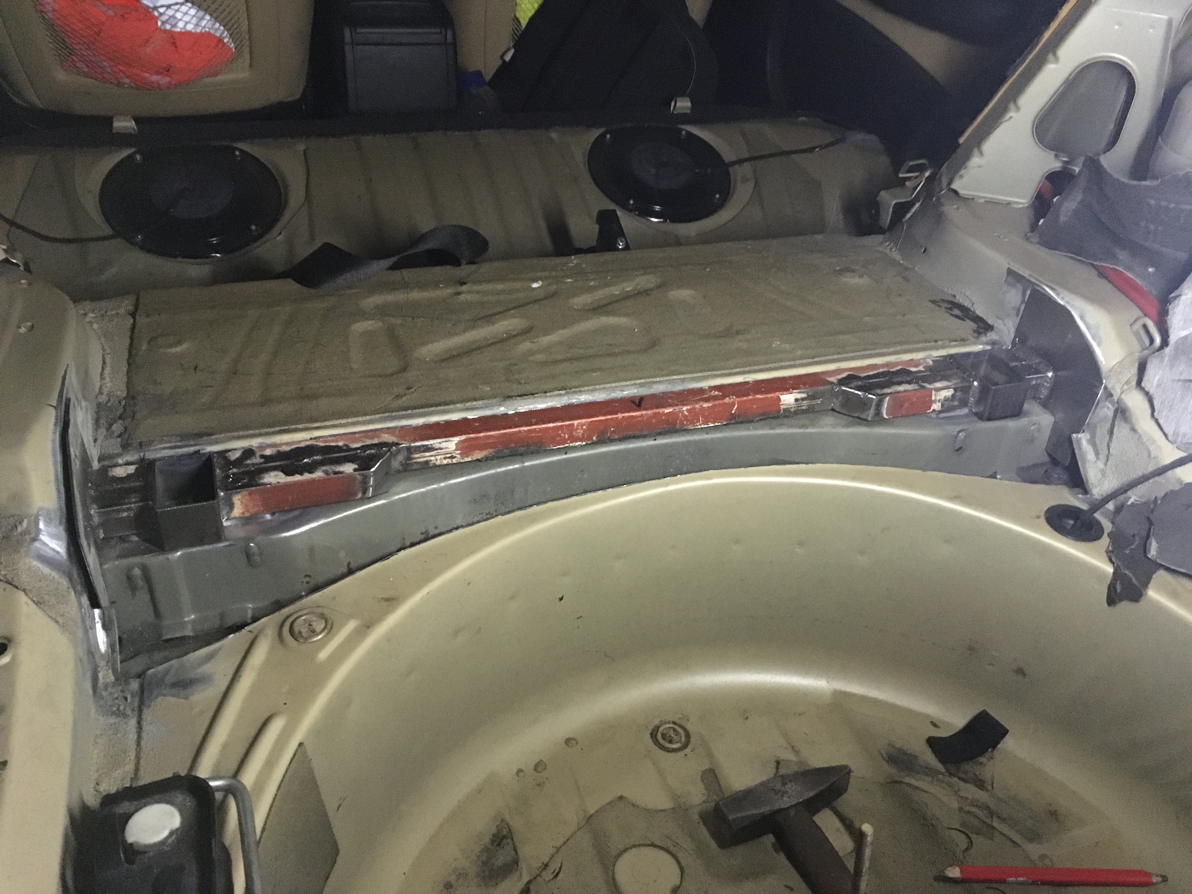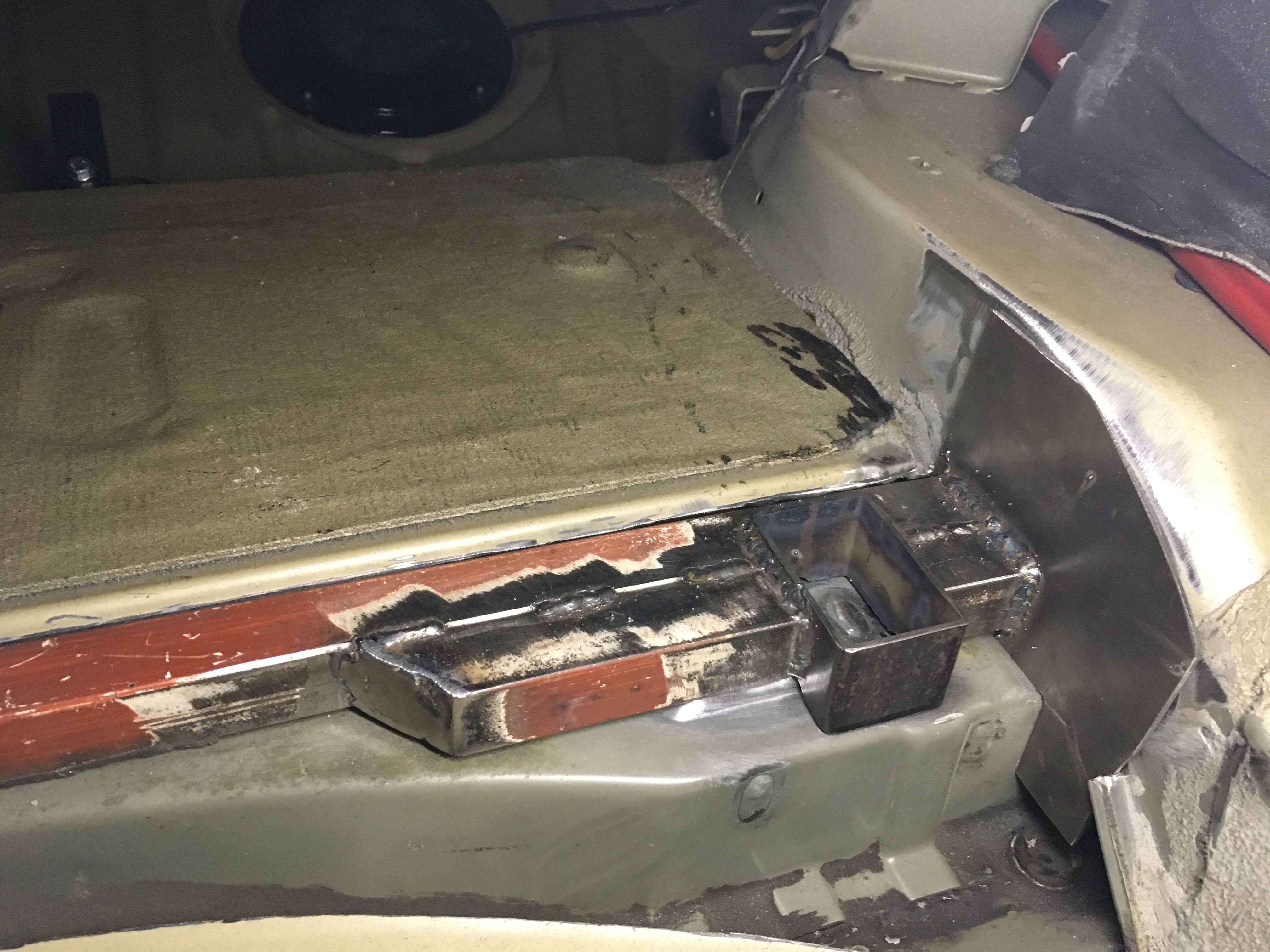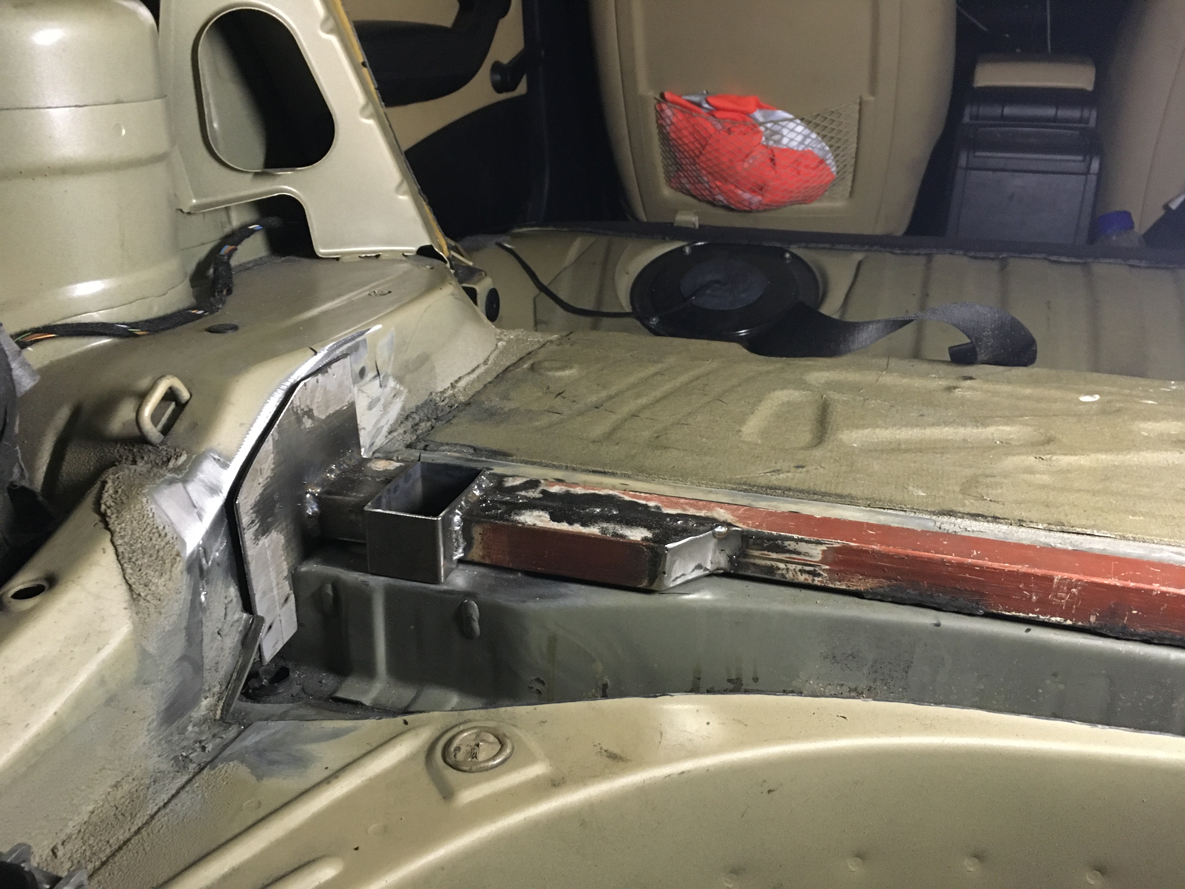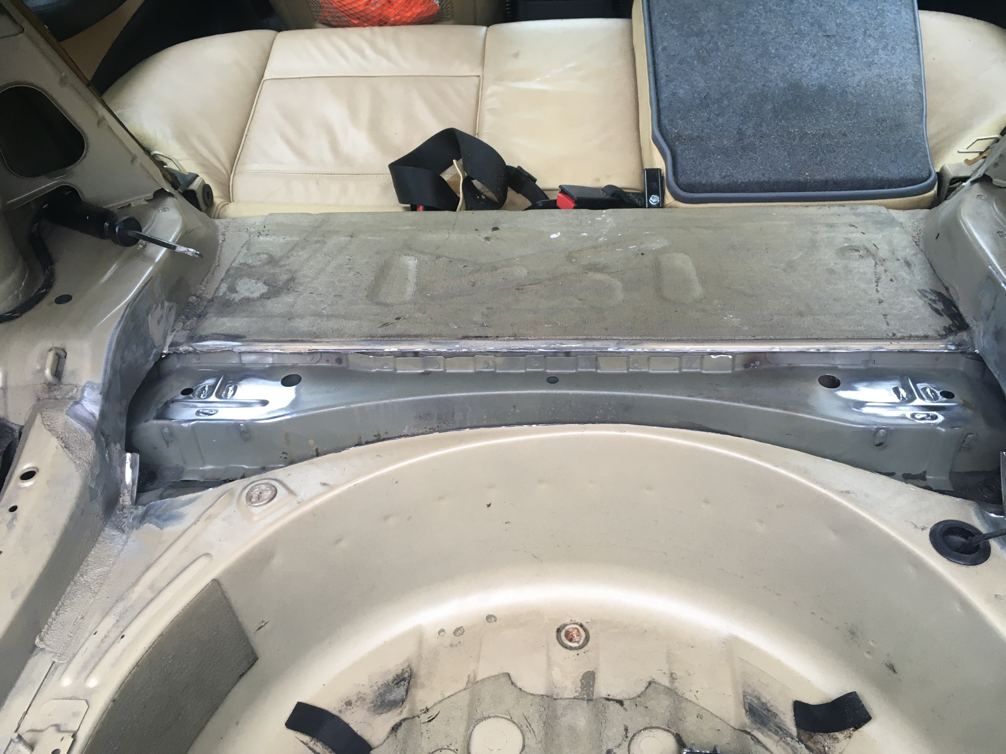 Nasledovala posledná "vyváračka" tento rok. Vyrobil som si vystuhu do zadnej podlahy v kufri známu v krajinách západných ako "VinceBar". Táto v celku jednoduchá vystuha ma za úlohu spevniť zadnú podlahu (kto by to bol povedal cooo). Oni totižto spevnili ulozenia zadnej nápravnice proti vytrhnutiu vloziek so závitom, ale absolútne neopravili najzávažnejšiu konštrukčnu chybu E46ky - slabú zadnú podlahu celkovo. Ono totižto sa dá veľmi ľahko dohliadať o čom to celé je. Podlaha je vzadu ako "sendvič", rozumej z 3 častí. Spodná ( pohľad odspodu auta) vrchná (pohľad do kufra) ale to čo nevidieť je stredná vrstva medzi nimi. Medzi tou spodnou a strednou vrstvou sú navarene tie závitové vložky. Pri akceleracii a pusteni plynu sa tieto vrstvy proste nepatrne hýbu hore dolu. Jeden pohľad na obrázok rozloženia podlahy v googli a hned to clovek pochopí. Tato vystuha a.k.a VinceBar sa vkladá medzi strednú vrstvu a vrchnú, resp sa vkladá o strednú vrstvu a vytŕča z vrchnej vrstvy kusok do priestoru kufra. Pre túto druhu možnosť som sa rozhodol aj ja. Dal som si s tým "extrémnu" námahu a ten dizajn som jednoducho okopiroval a prisposobil mojim poziadavkam. Oni totižto túto vystuhu srobuju šrobmi "durch" cez podlahu az do napravnice, a tak zaistia prenos sily od napravnice do pozdlznych nosníkov vzadu - celý princíp toho. Ja som sa rozhodol to o tú podlahu privarit v miestach kde napravnica tlači na podlahu odspodu. Na uchytenie vystuhy som použil platne 3mm, ktoré som navaril o nosníky. Na tie platne som obvaril vystuhu a vystuhu som na 3 miestach zvaril s podlahou. Nasledovalo ako-take vrátenie pôvodného vrchného plechu naspäť. Výsledkom mi bola naozaj funkčná vystuha, ktorá jednak neskutočne zpevnila auto na ceste a aj v zakrute, ale aj pomôže predísť prasklinam v zadnej podlahe auta. Akože 323 so svojimi 250Nm krutaku je nič, ale pridajte 20 rokov prevádzky a máte nábeh na puknutie podlahy. Je to ale veeelmi individuálny problém ktorý postihuje v najväčšej miere M3 ky (tam to byva masaker) a skôr 330i. Sú však zdokumentovane aj 325ky. Robil som to skôr ako prevenciu pred mojim jazdnym stylom. Nevylučujem do budúcna ani prerabku na 3.0 stroker...