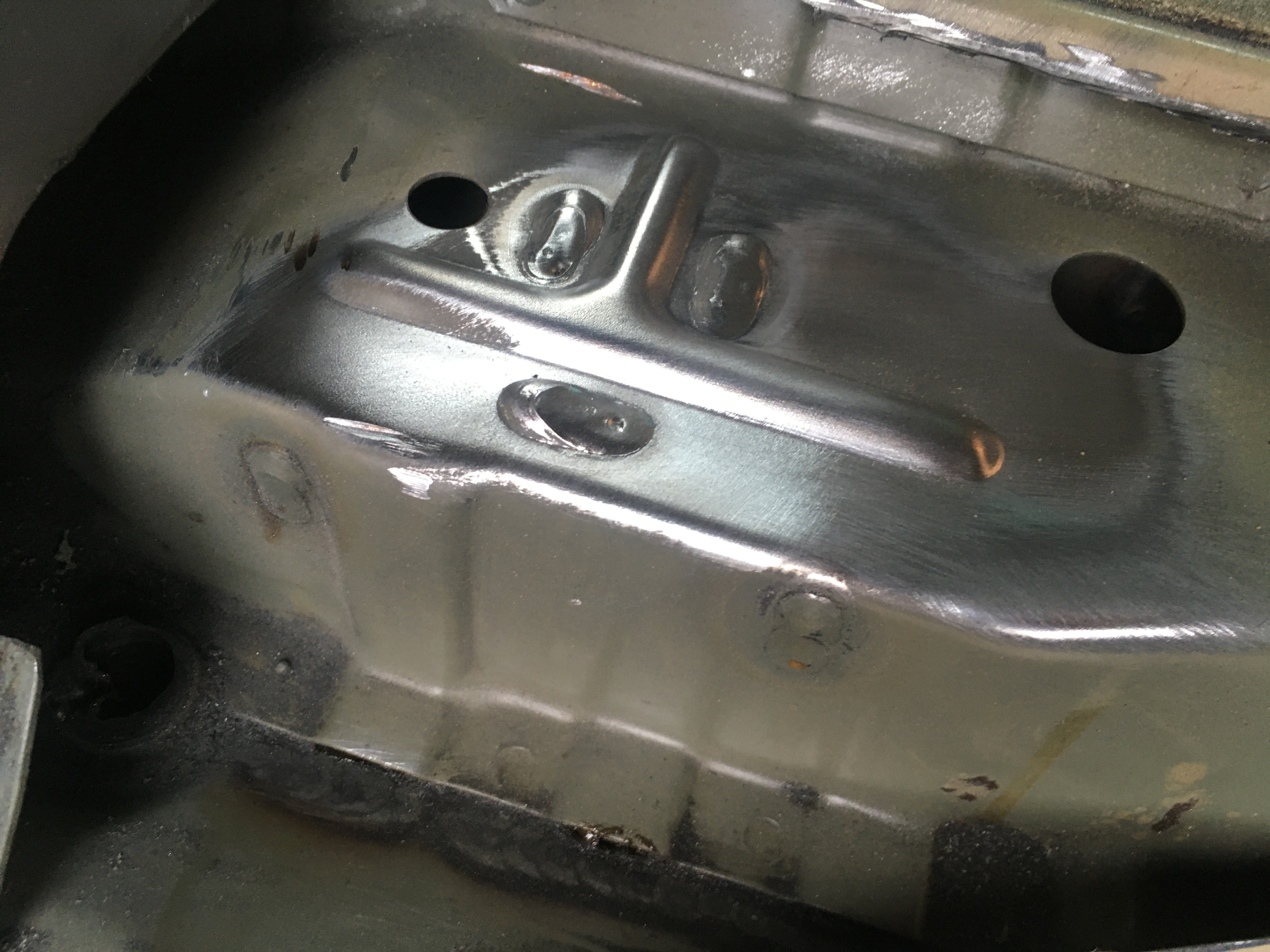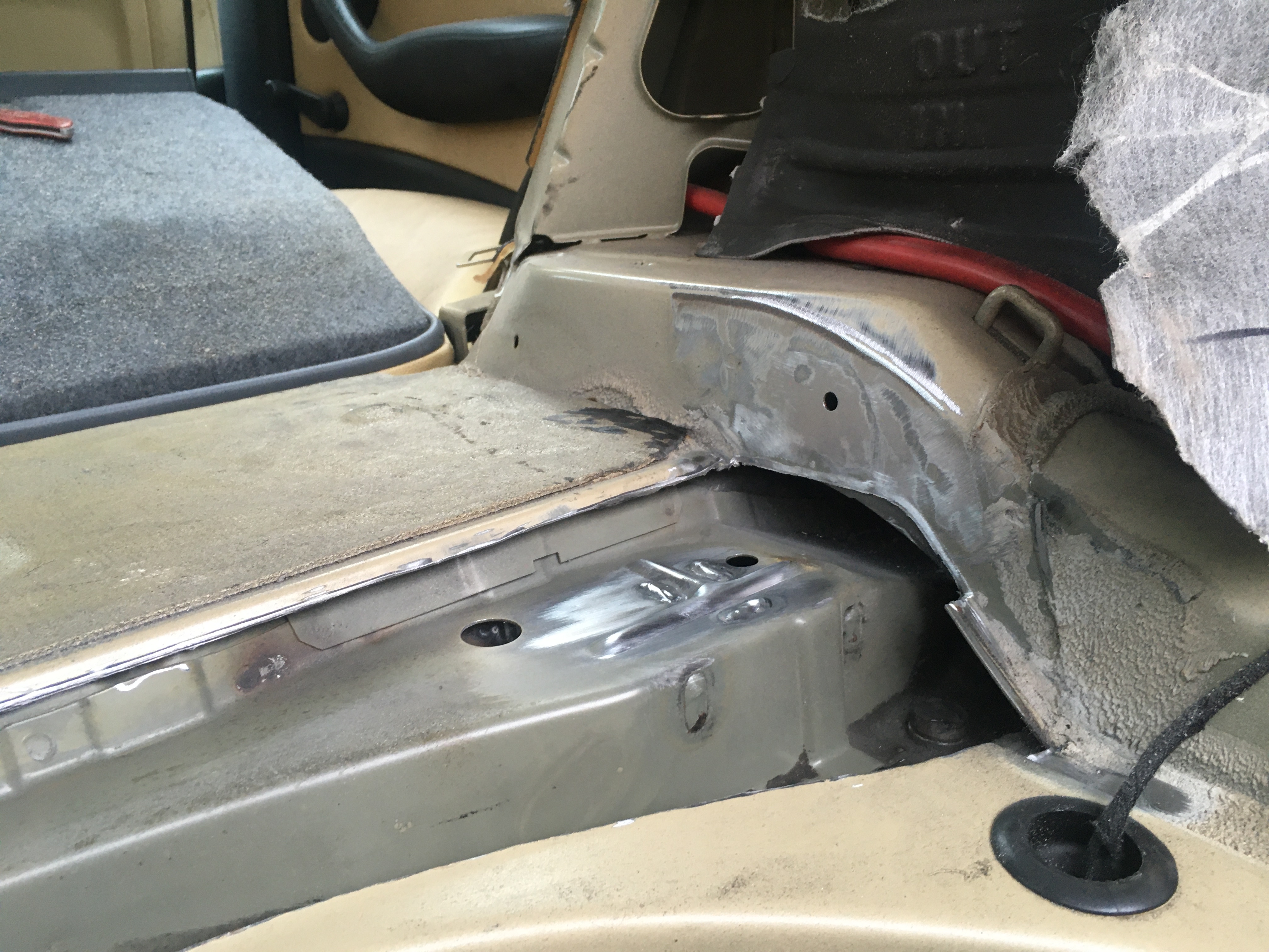 Dávka fotiek 2. Na niektorých z nich môžte vidieť, čo ostalo z vnútornej strany z blatnikov, keď som ich poriadne postlacal holými rukami...zdrvil som ich ako chipsy. Samozrejme som kupil tabuľu plechu a patrične som sa o to postaral. Nasledovali vrstvy polyuretanky a na to pekná vrstva Dinitrolu. Samozrejme do dutin tiež ten riedky. A veru že som ním nešetril. Všetky zvary pretrete Terosonom, hlavne tie nešťastné falce zadných blatnikov, tam som si dal záležať.