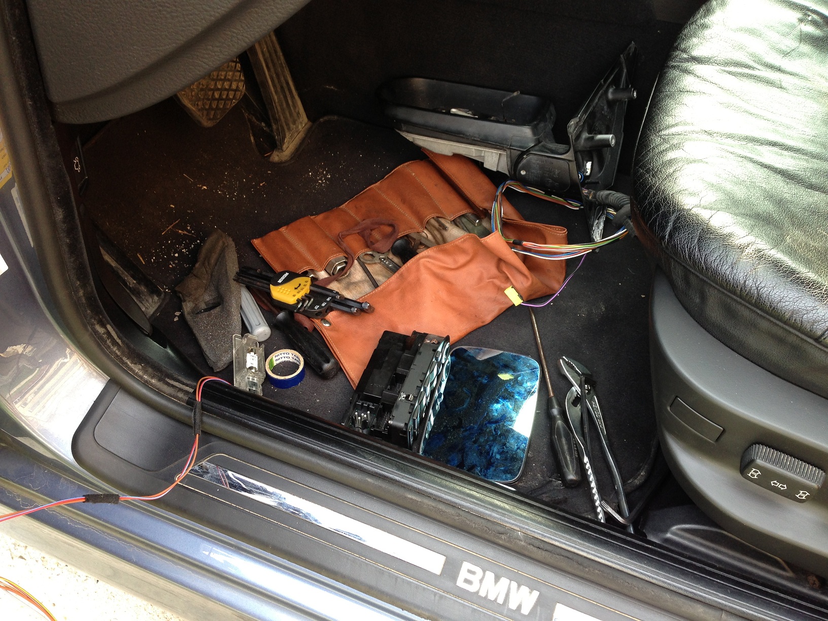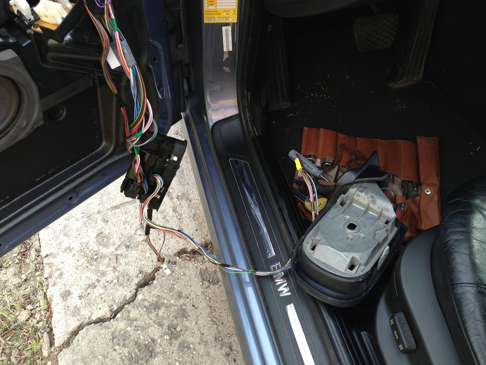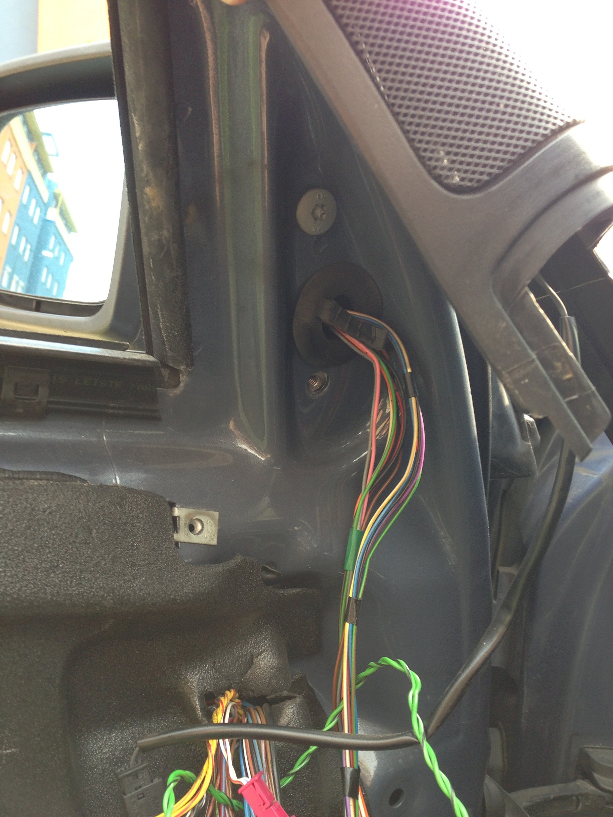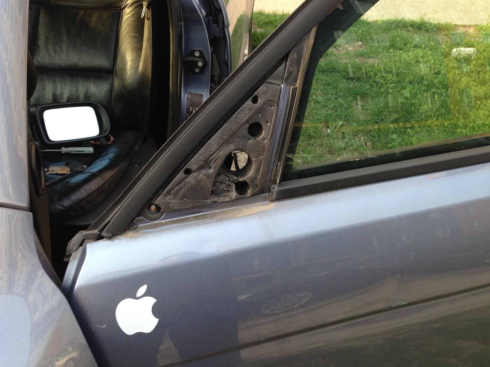 Už dlho mi robilo vrásky spätné zrkadlo, ktoré malo problémy so sklápaním, sklápalo sa pomaly a nie celkom "na doraz". Mal som také isté zrkadlo, ešte zo sedmičky, tak ma napadlo to vymeniť. Predtým som porovnal tvar, veľkosť aj čísla (všetko sedelo) tak som sa pustil do výmeny. Tak som vybral tapacír, všetko poodpájal, vymenil krytky a sklíčko do "nového", vybral pôvodné a chcel som to poskladať. Aké bolo moje prekvapenie, nové má nožičky ďalej od seba ako pôvodné, takže ho nemôžem vložiť do dverí