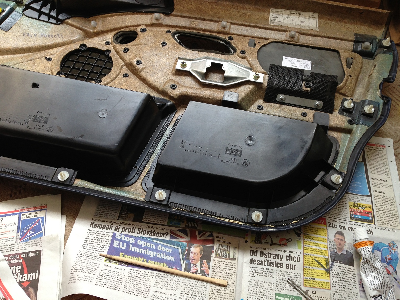 Tak som len zobral WD-40, prestriekal poriadne staré (na počudovanie to pomohlo a už sa pekne sklápa bez problémov), celý proces zopakoval, poskladal naspäť a prilepil priehradku vo dverách, ktorá bola oddelená od tapacíru (nebolo to vidieť ale mne to vadilo). Budem ešte potrebovať tie "cvoky" čo sú vo dverách, pár ich nevydržalo