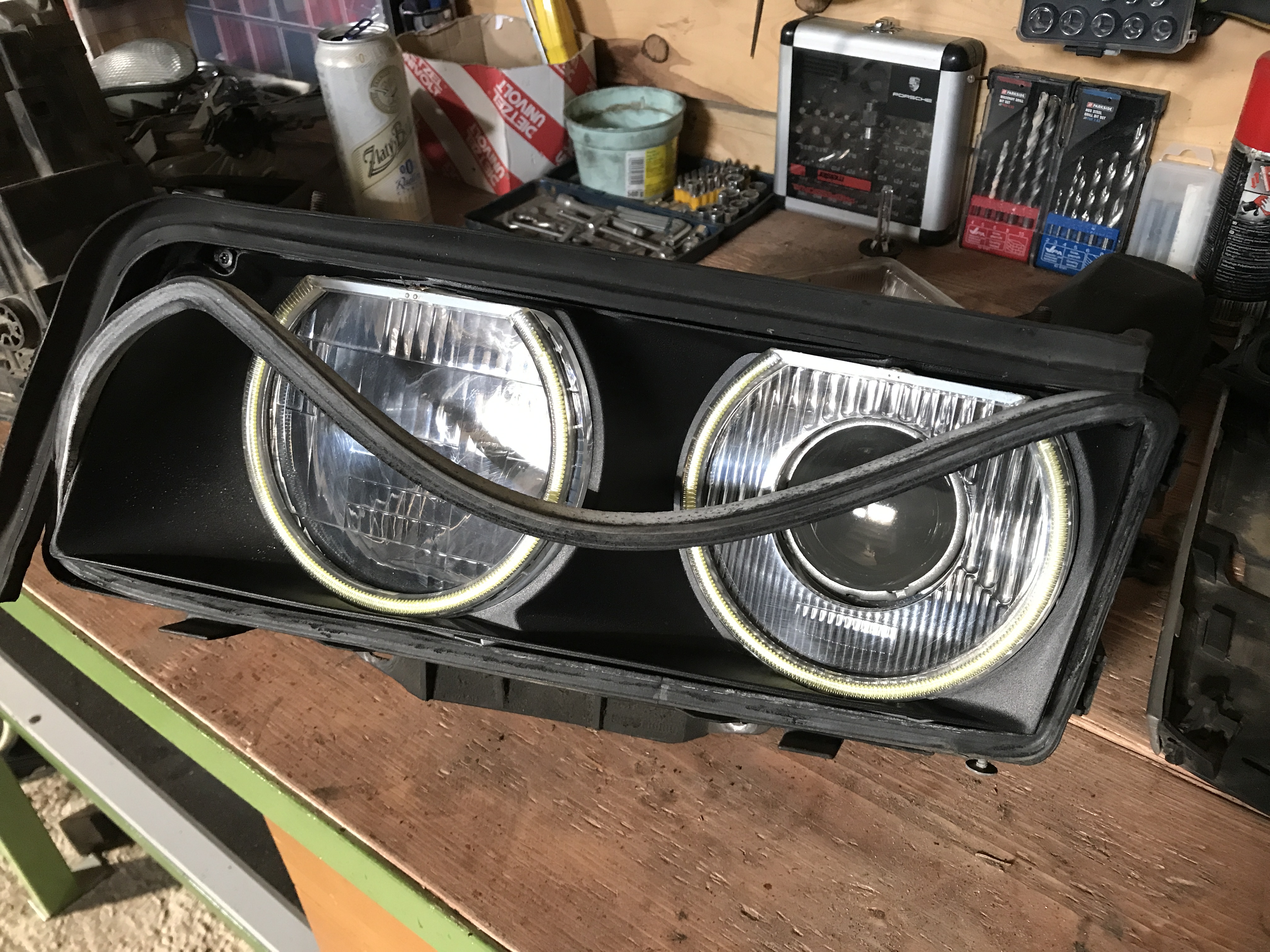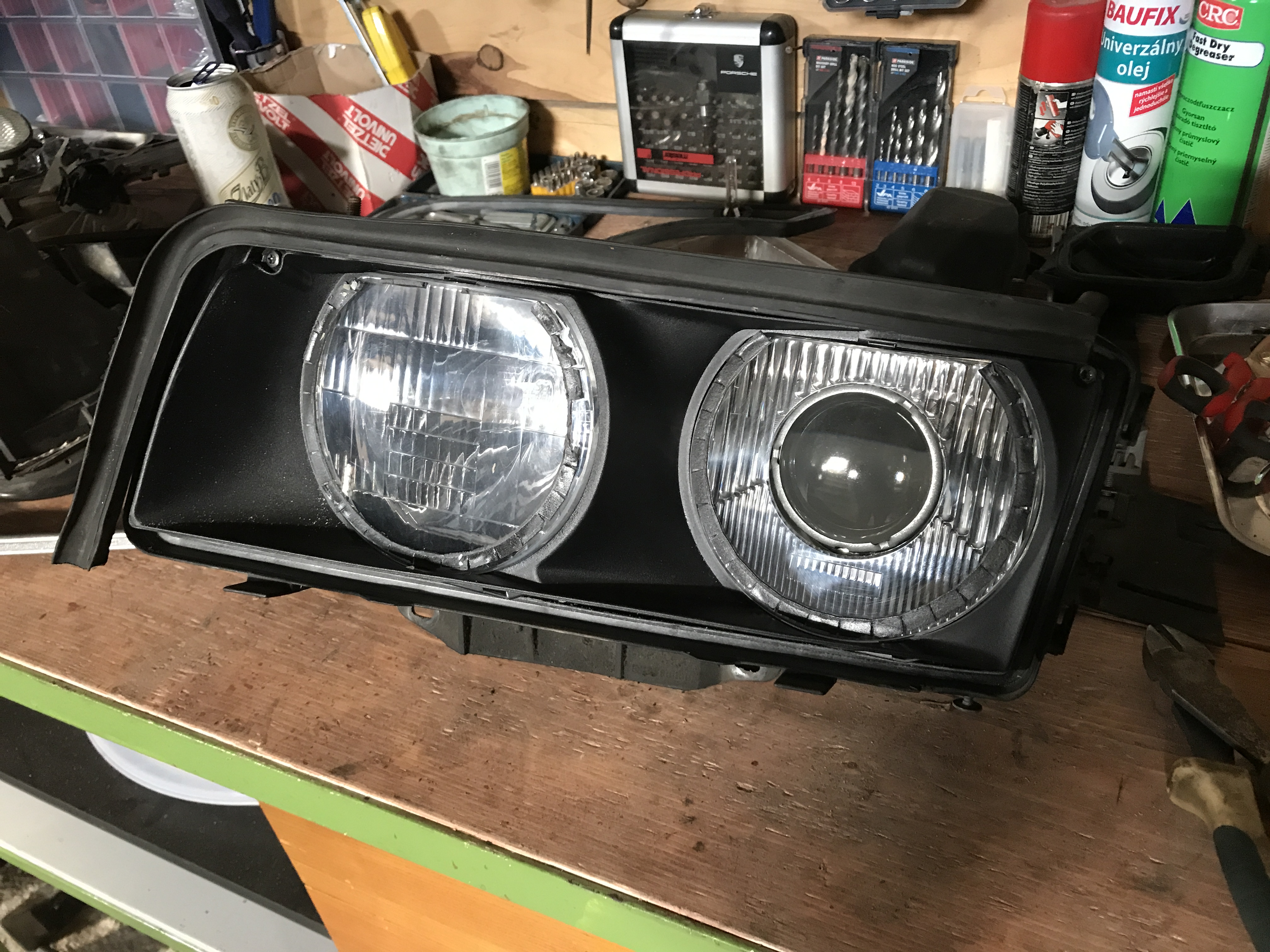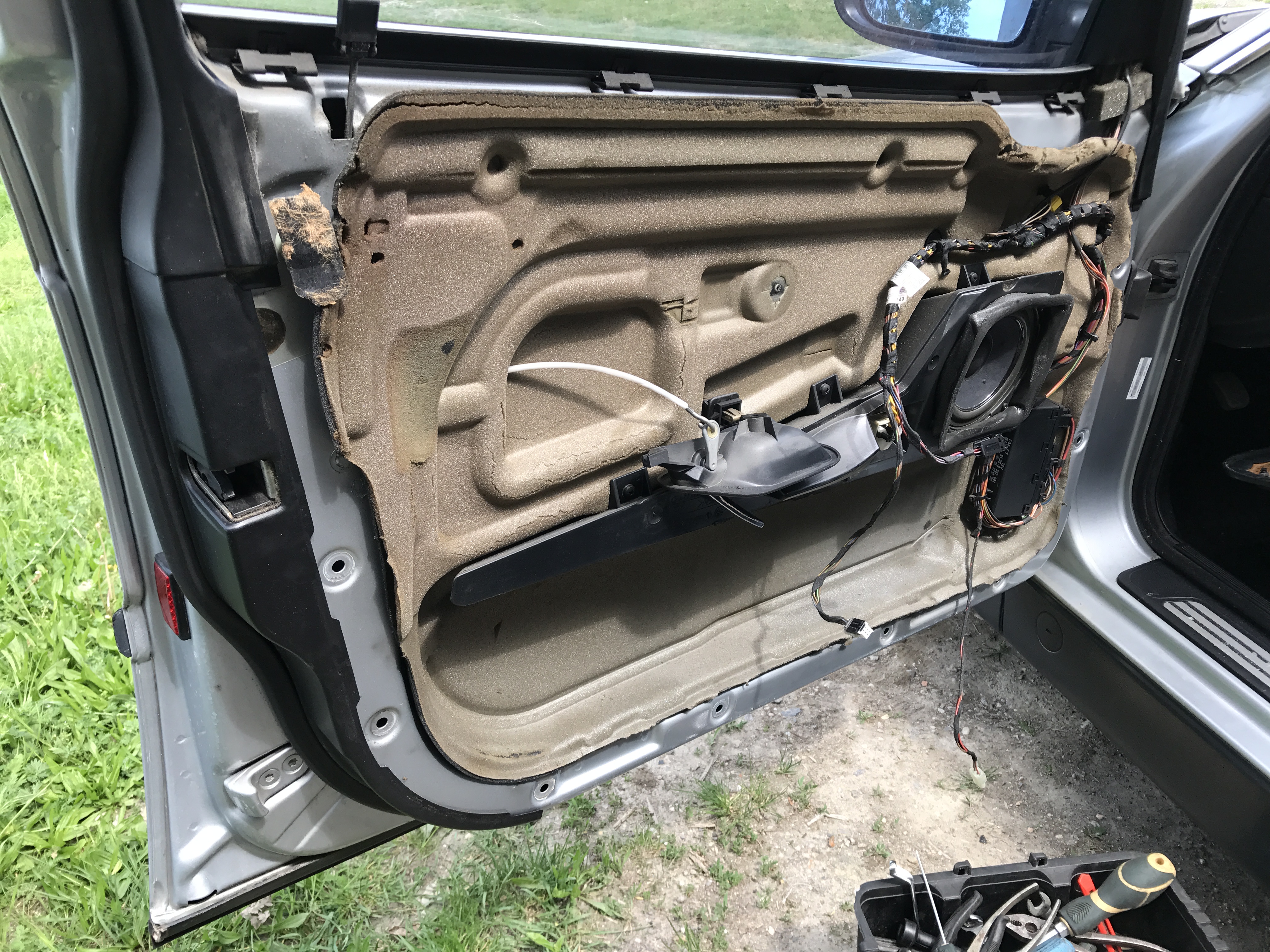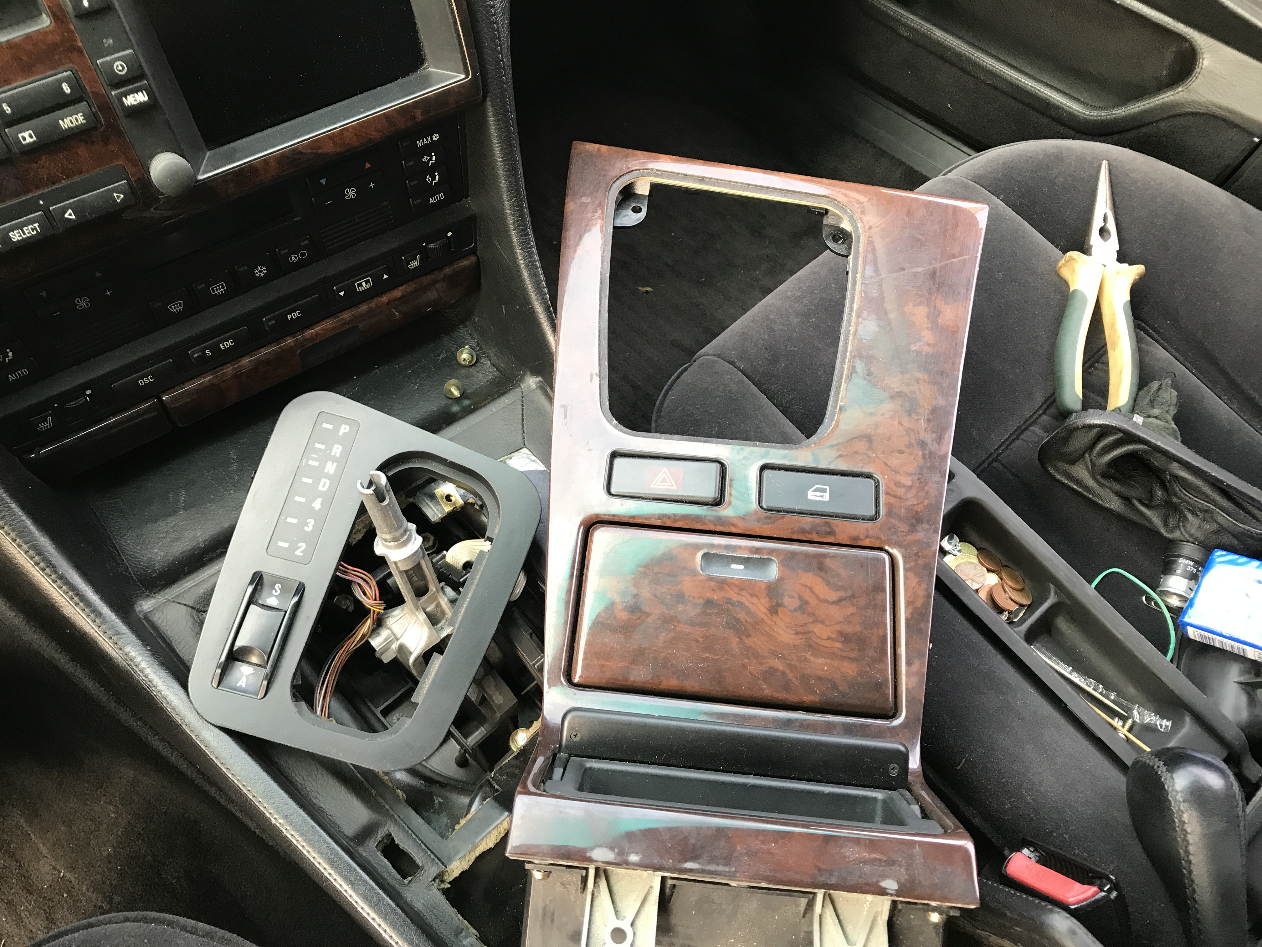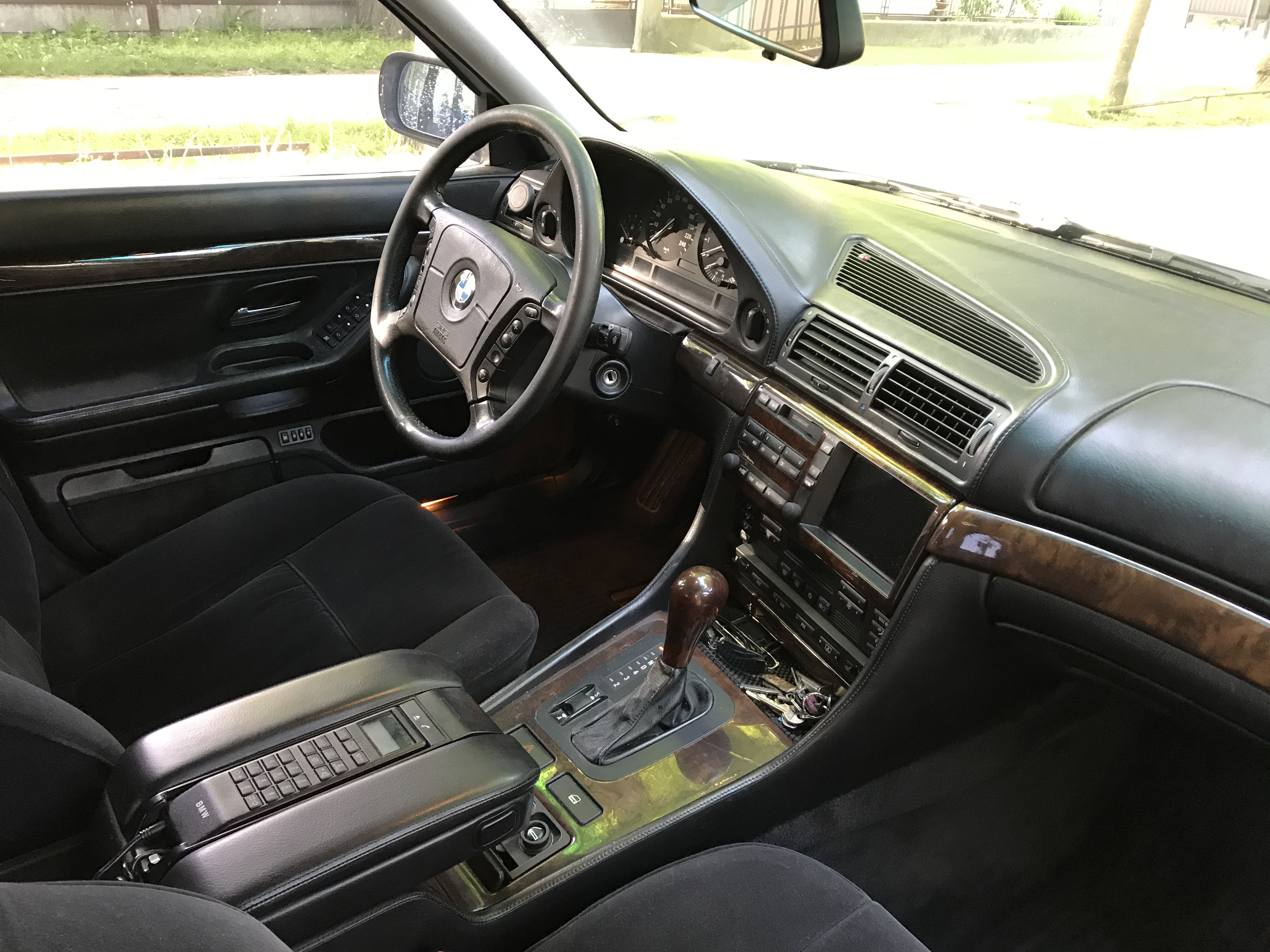 Čo ma ale prekvapilo, že tie dvere ešte nikto nikdy nerozoberal, všetko v 100%-tnom a pôvodnom stave, to som ešte ani nevidel na E38-čke. Chcel som dať podsvietené vnútorné kľučky, ale nejako som nechcel do tej originálnej kabeláže pájkovať tak som to zatiaľ nechal tak. Opravil som kastlík v stredovom tuneli, konečne aj zatvára...