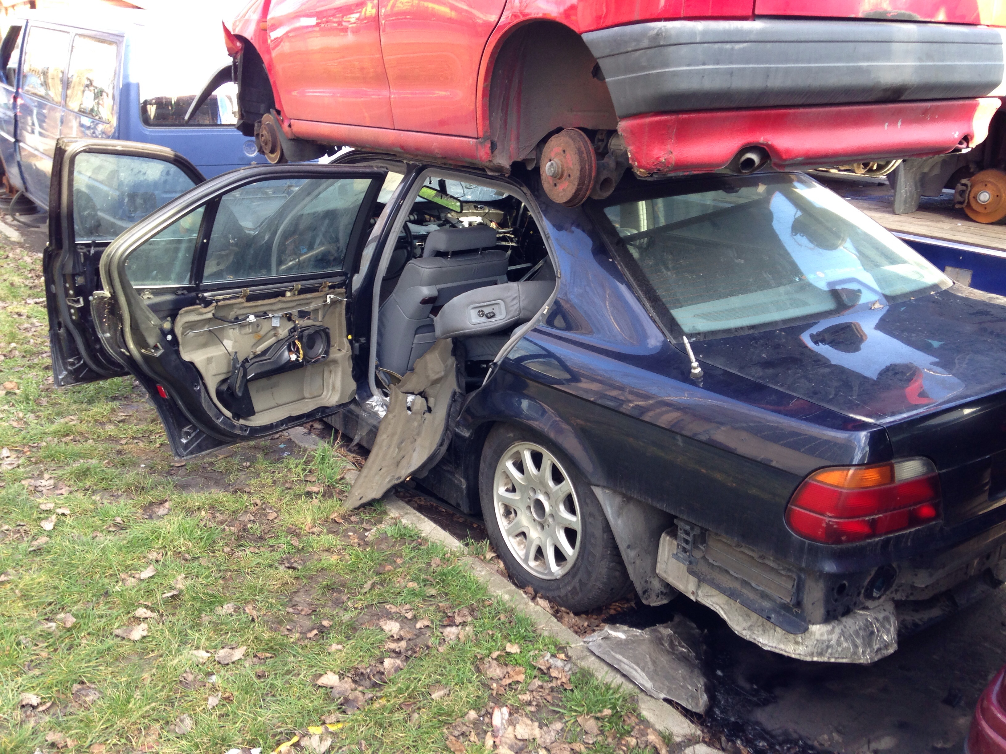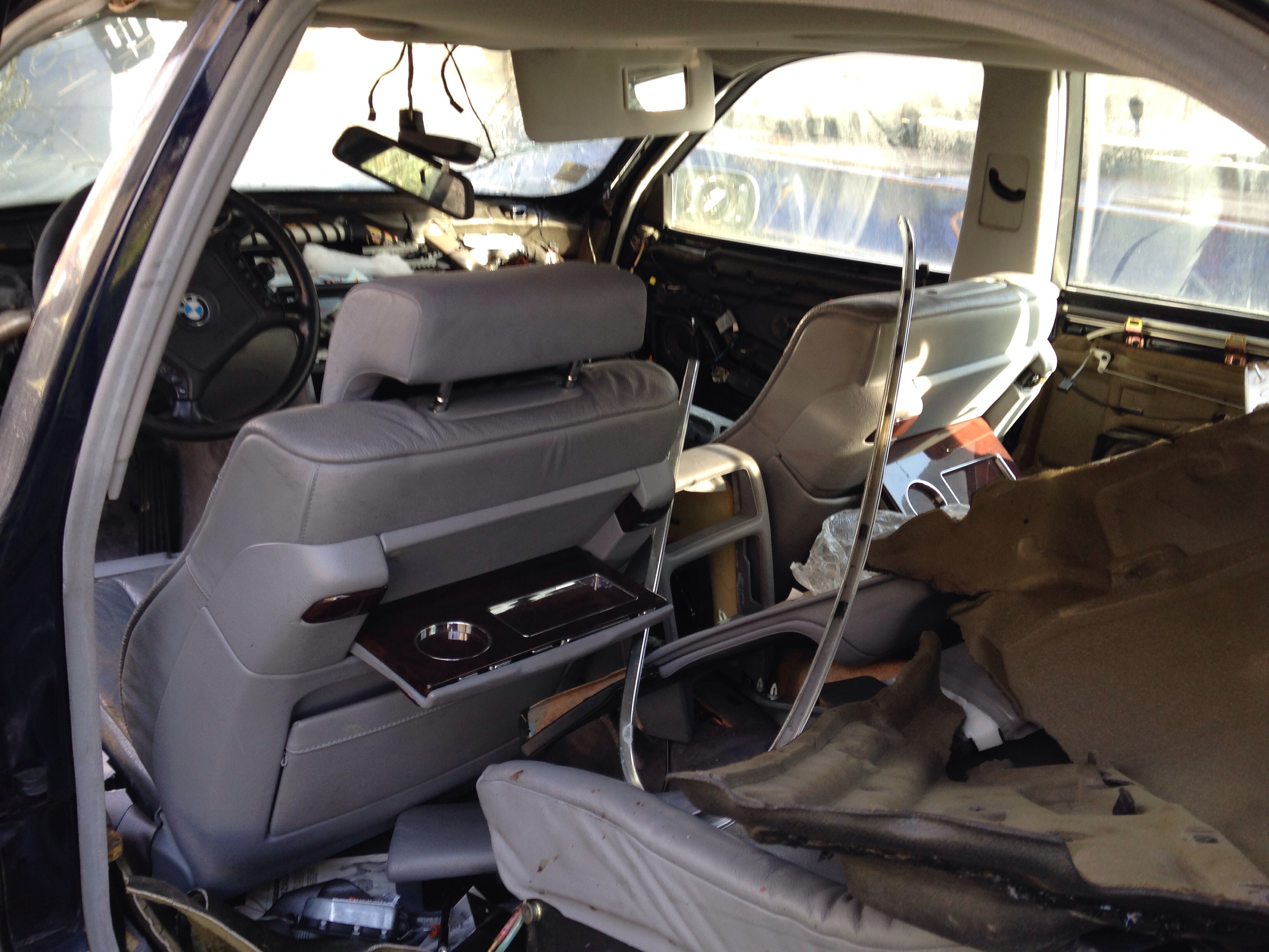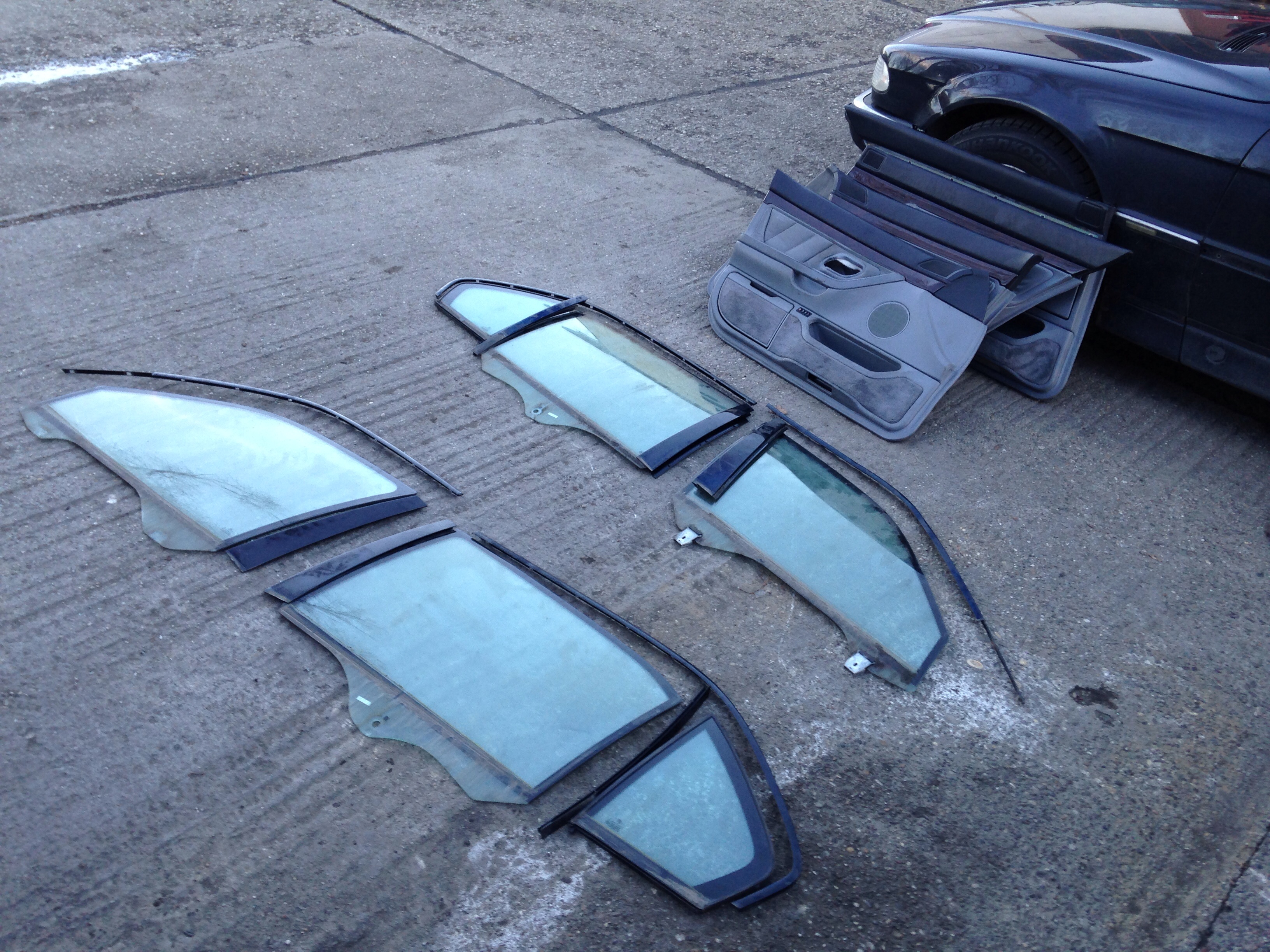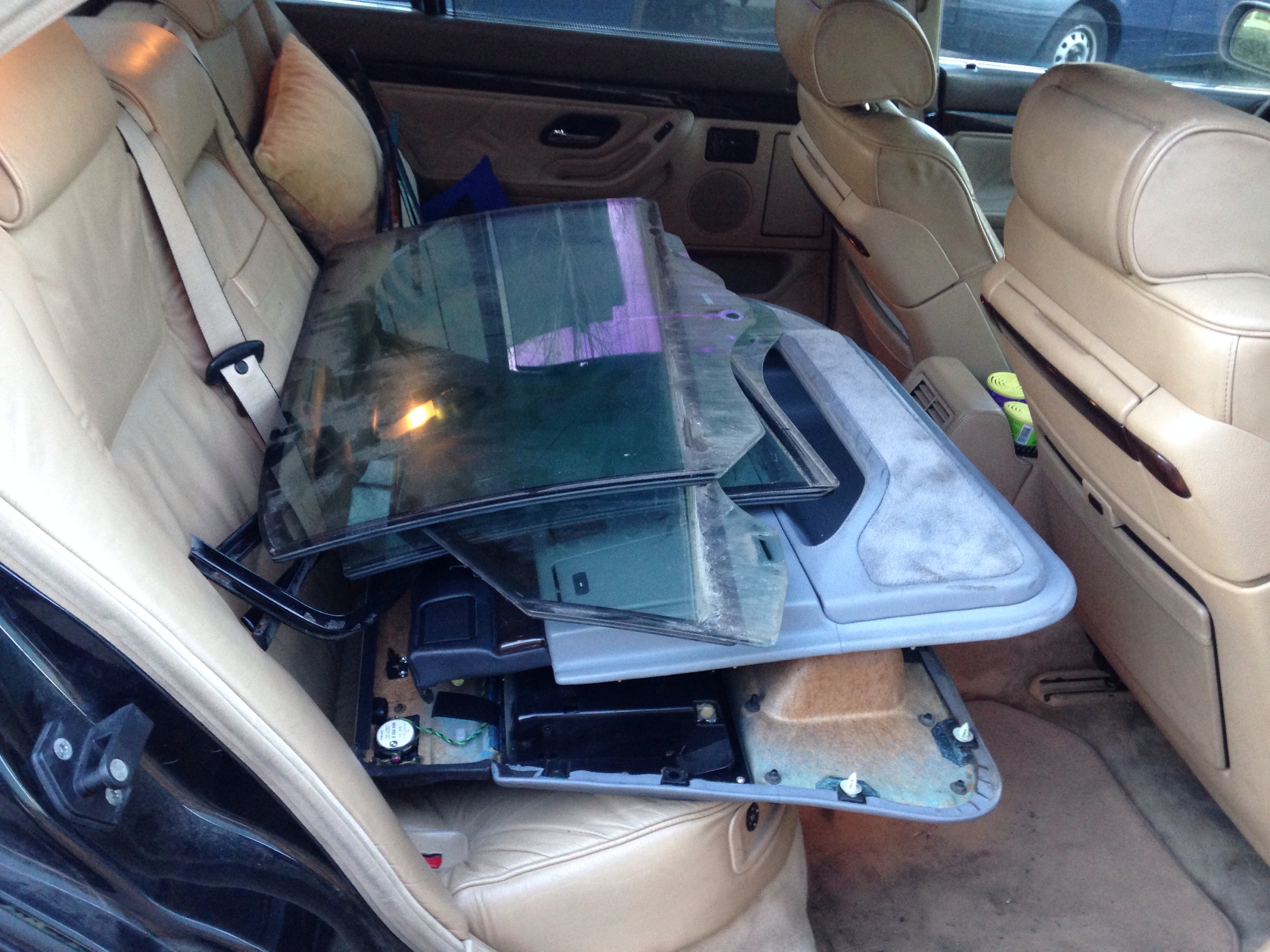 No... takže keďže zajtra o druhej ráno idem do Budapešti chcel som spojazdniť tempomat. V dobrej viere som išiel na WIP autovrakovisko na Galvániho (naposledy tam bolo cca 12ks E38 long). Ako na potvoru ostali posledné dva vybrakované kusy. A vraj aj tie pôjdu čochvíľa preč pobral som čo sa dalo. Zobral som videomodul s kabelážou, krytku spätného zrkadla, zdvihák, tú červenú krytku do dverí čo svieti, plast okolo senzoru osvetlenia na spätnom zrkladle a doraz ktorý drží predné dvere otvorené. Darca bol 750iL INDIVIDUAL, tak sa zišla aj kompletná sada dvojitých okien (protective glazing), high-gloss individual lišty okolo okien a celokožené tapacíry s dierami na roletky. Chcel by som použiť pekné kožené vo farbe ako mám ja a tie vrchy v kombinácii s čiernou koženou palubovkou. Počkalo by to, ale keď už to bolo hneď k dispozícii, prečo nie