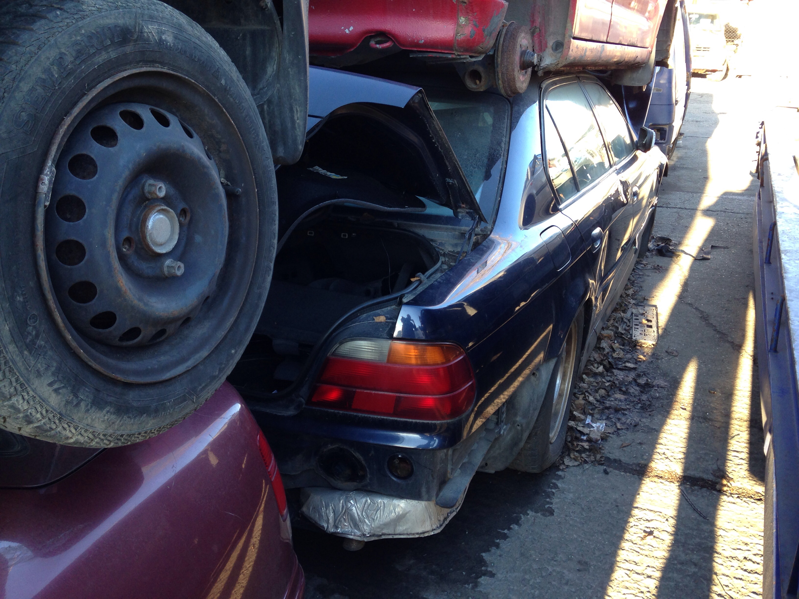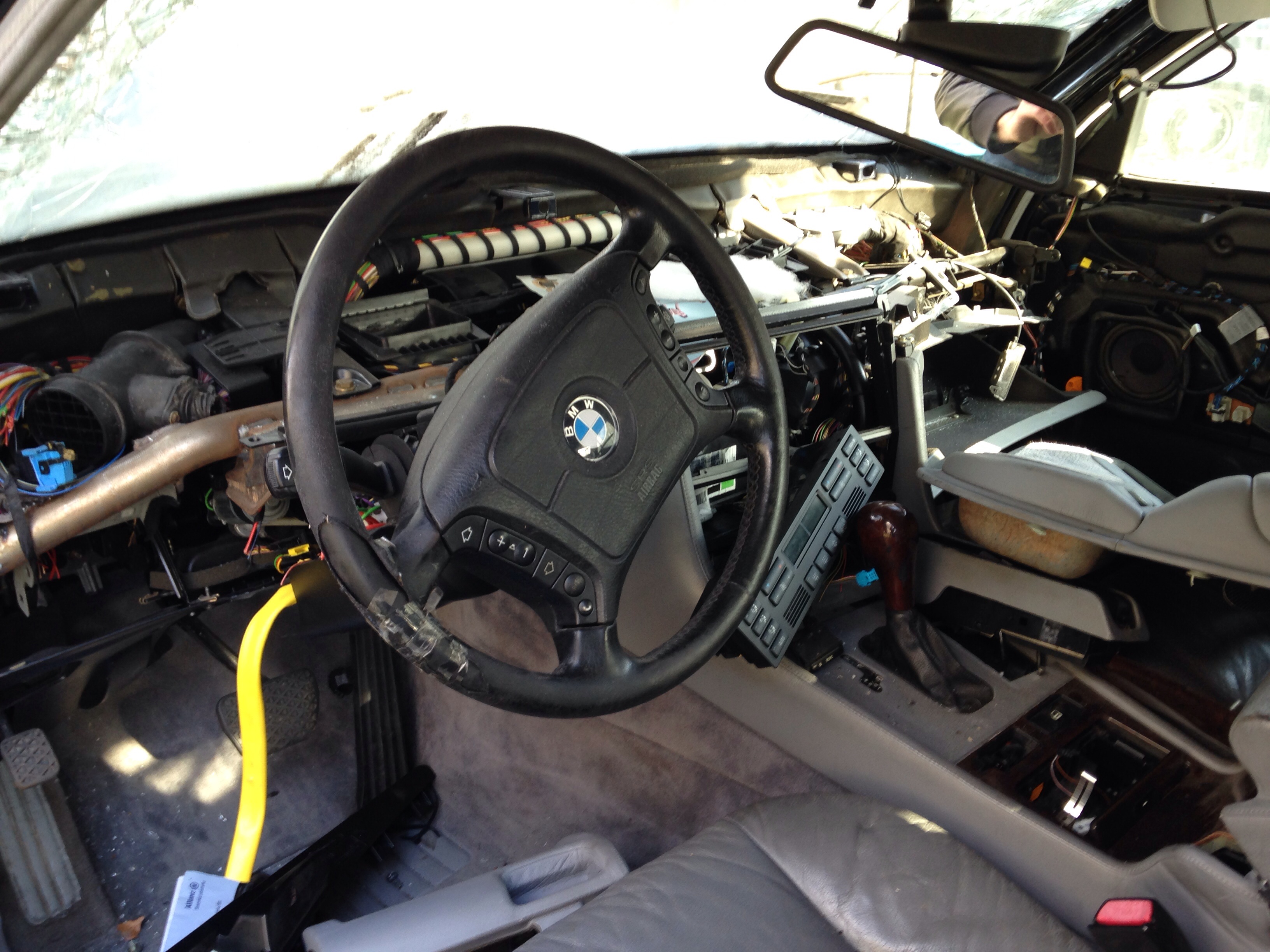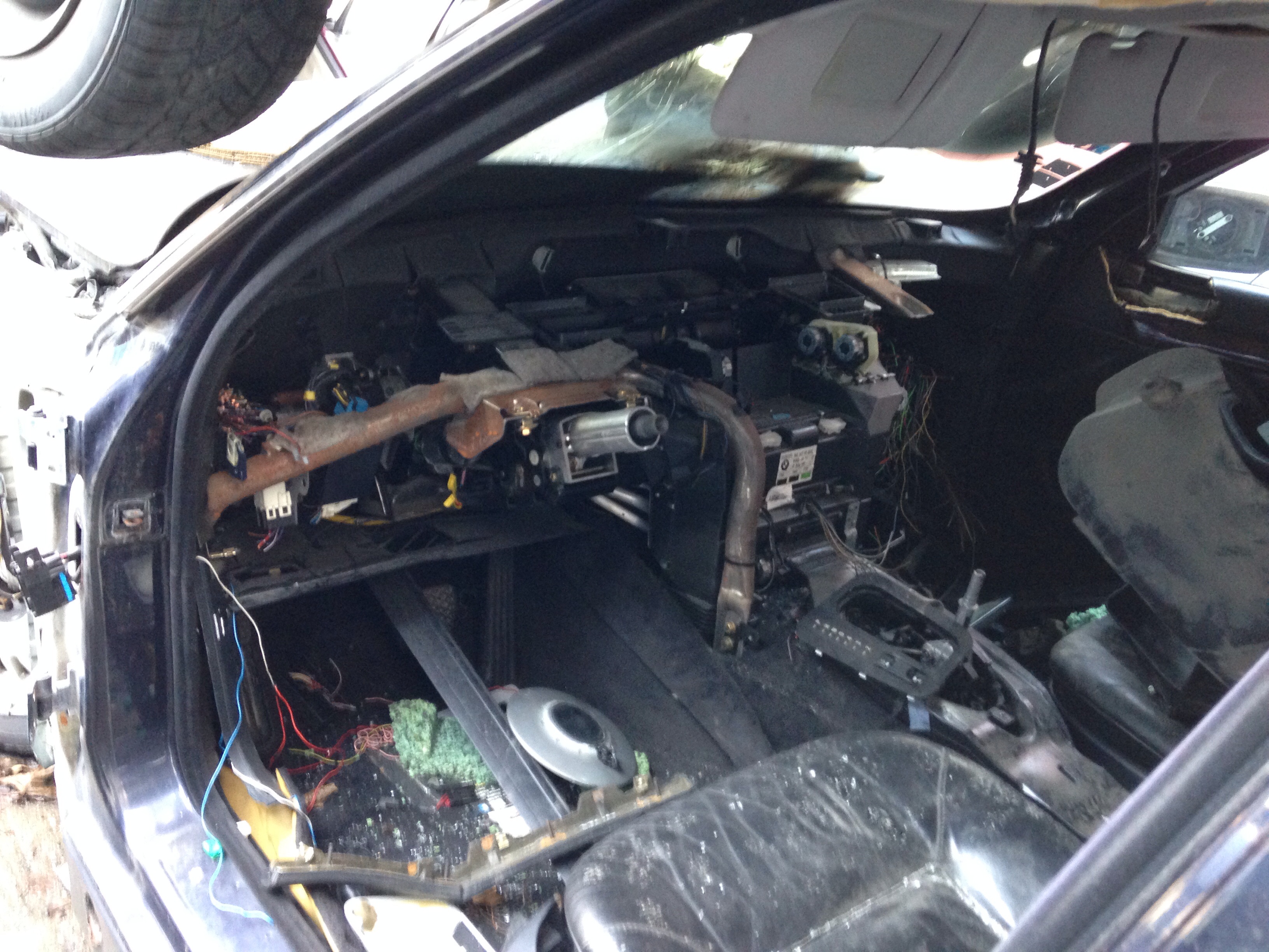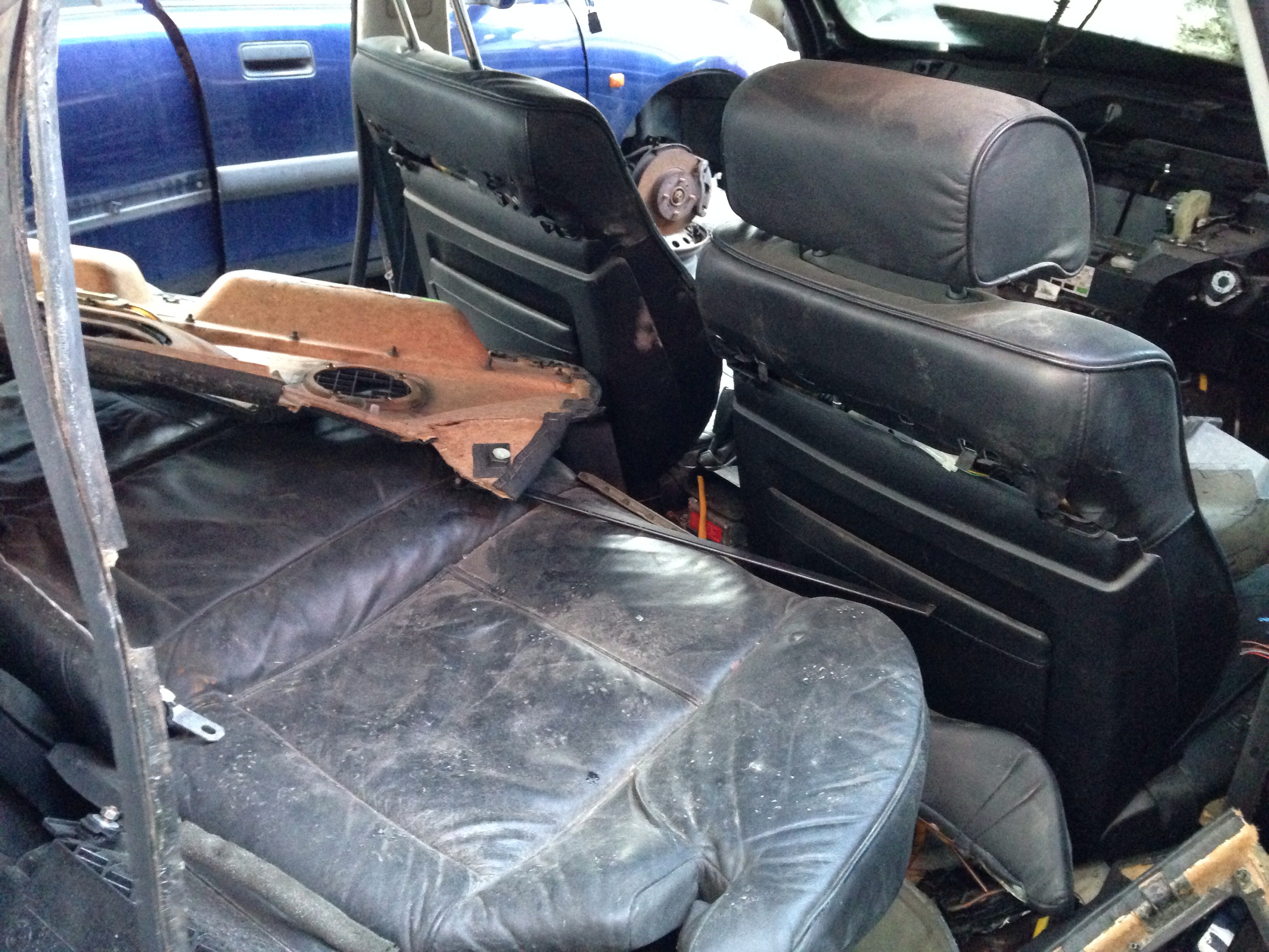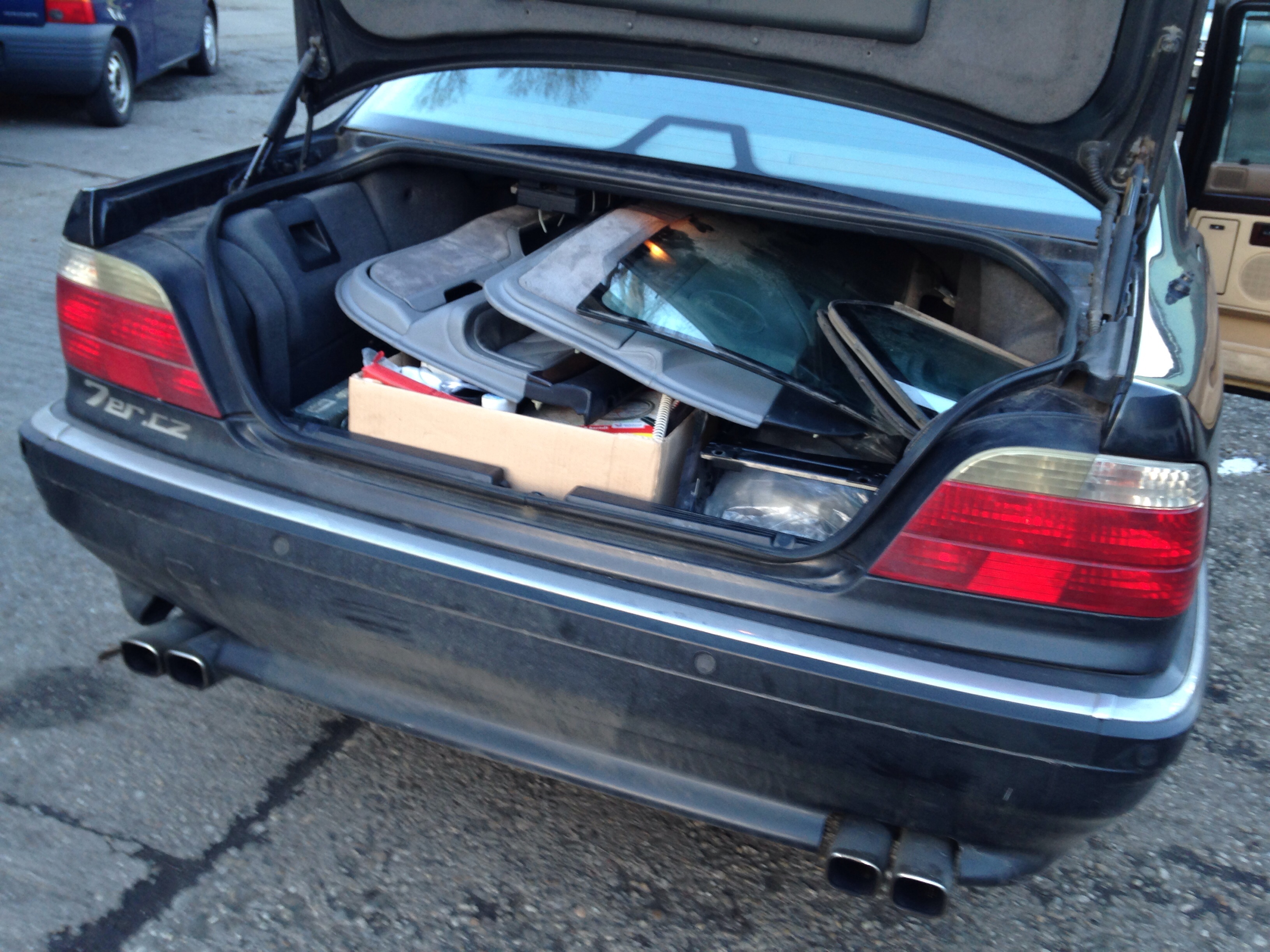 No... takže keďže zajtra o druhej ráno idem do Budapešti chcel som spojazdniť tempomat. V dobrej viere som išiel na WIP autovrakovisko na Galvániho (naposledy tam bolo cca 12ks E38 long). Ako na potvoru ostali posledné dva vybrakované kusy. A vraj aj tie pôjdu čochvíľa preč pobral som čo sa dalo. Zobral som videomodul s kabelážou, krytku spätného zrkadla, zdvihák, tú červenú krytku do dverí čo svieti, plast okolo senzoru osvetlenia na spätnom zrkladle a doraz ktorý drží predné dvere otvorené. Darca bol 750iL INDIVIDUAL, tak sa zišla aj kompletná sada dvojitých okien (protective glazing), high-gloss individual lišty okolo okien a celokožené tapacíry s dierami na roletky. Chcel by som použiť pekné kožené vo farbe ako mám ja a tie vrchy v kombinácii s čiernou koženou palubovkou. Počkalo by to, ale keď už to bolo hneď k dispozícii, prečo nie