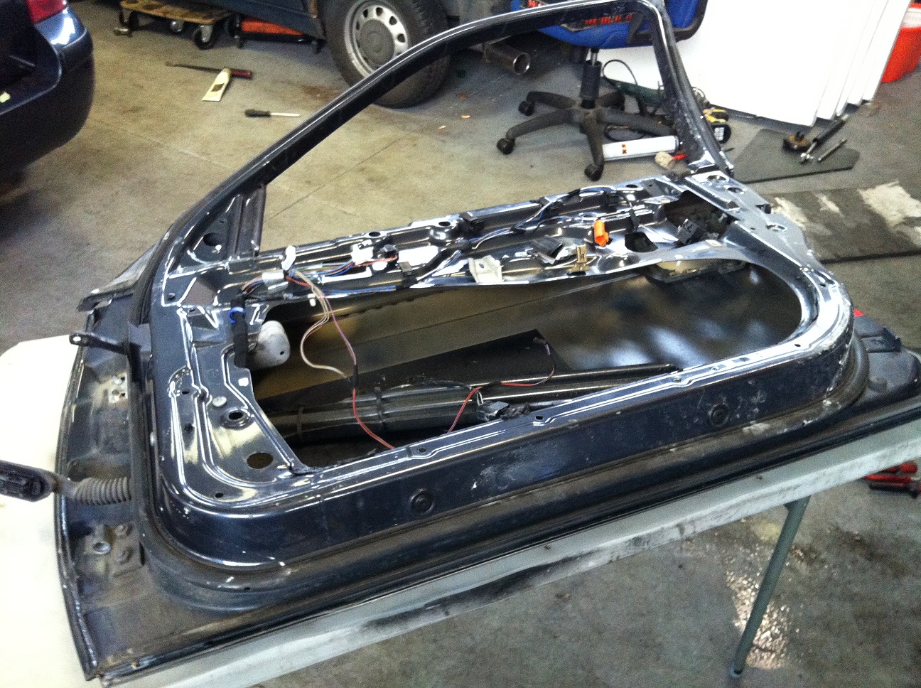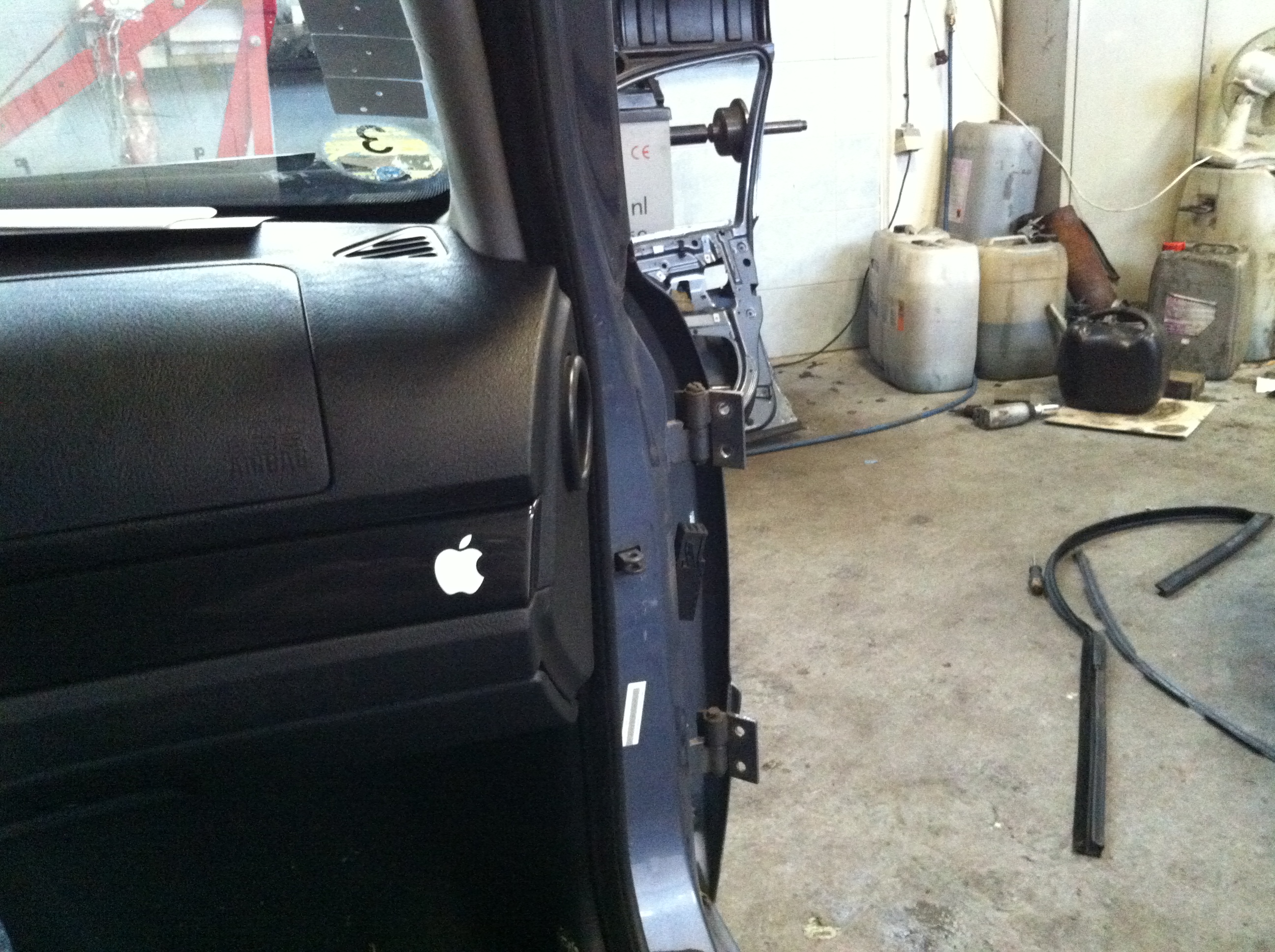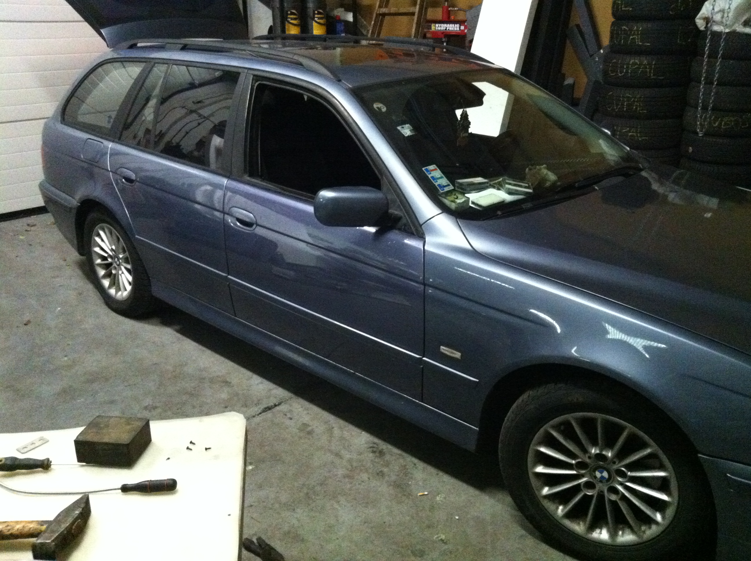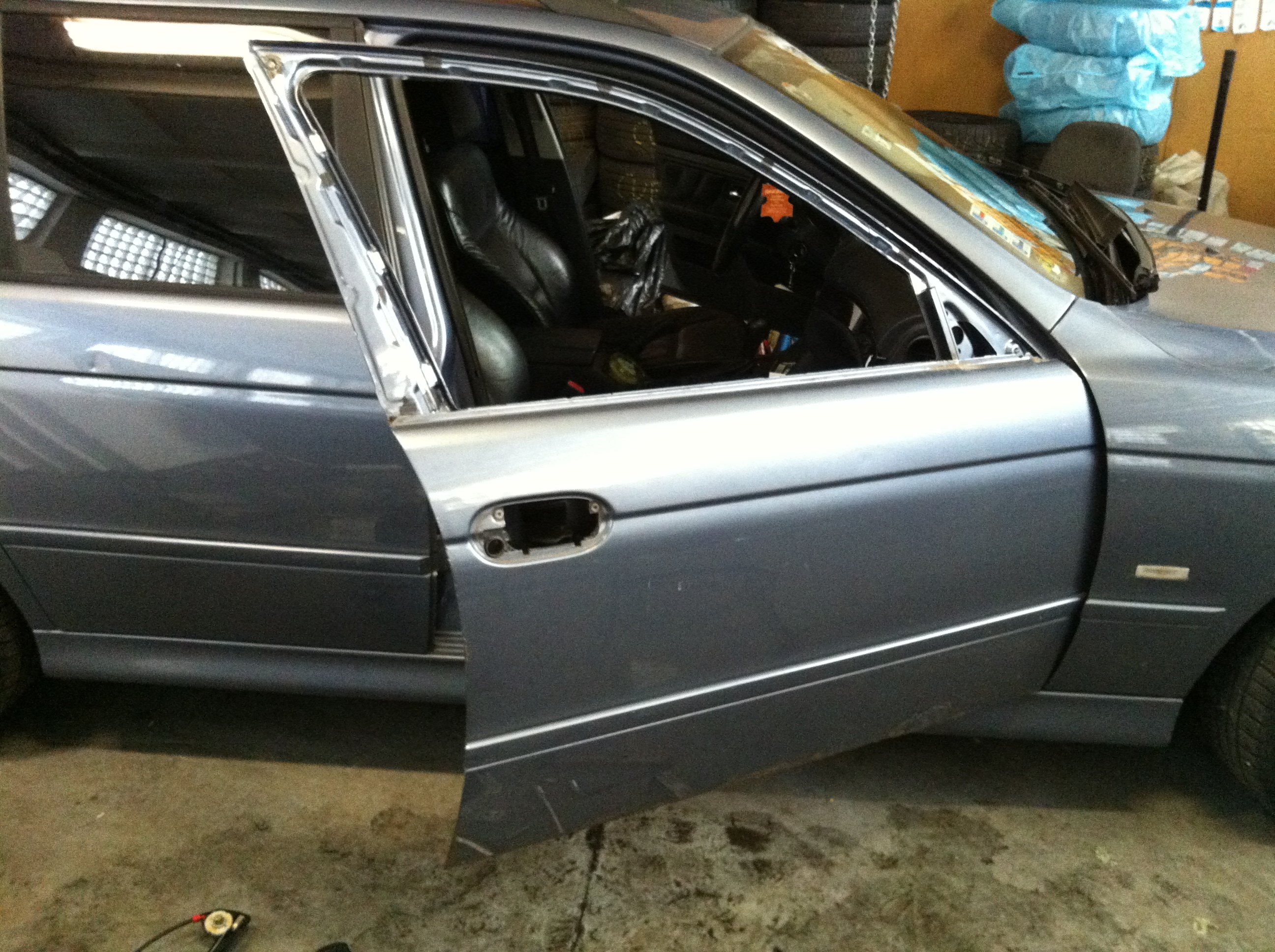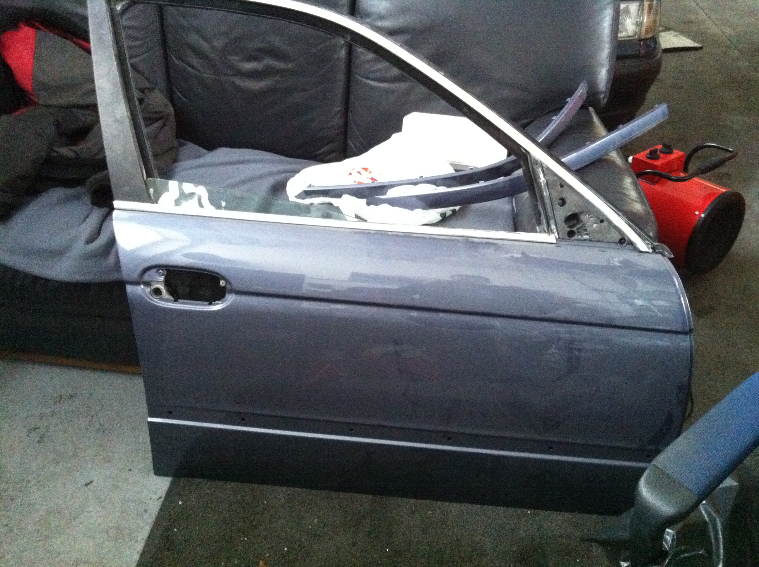 Prečo som to menil? Mal som sľúbené dvere vo farbe "Stahlblau metallic" ale prehnal som sa skoro 700km (tam aj späť) a dvere boli vo farbe "Fjordgrau"... Už keď som tam bol tak som rozmýšľal čo by som ešte zobral, nech necestujem takú diaľku len kvôli dverám ktoré sú navyše iné a musím ich striekať.