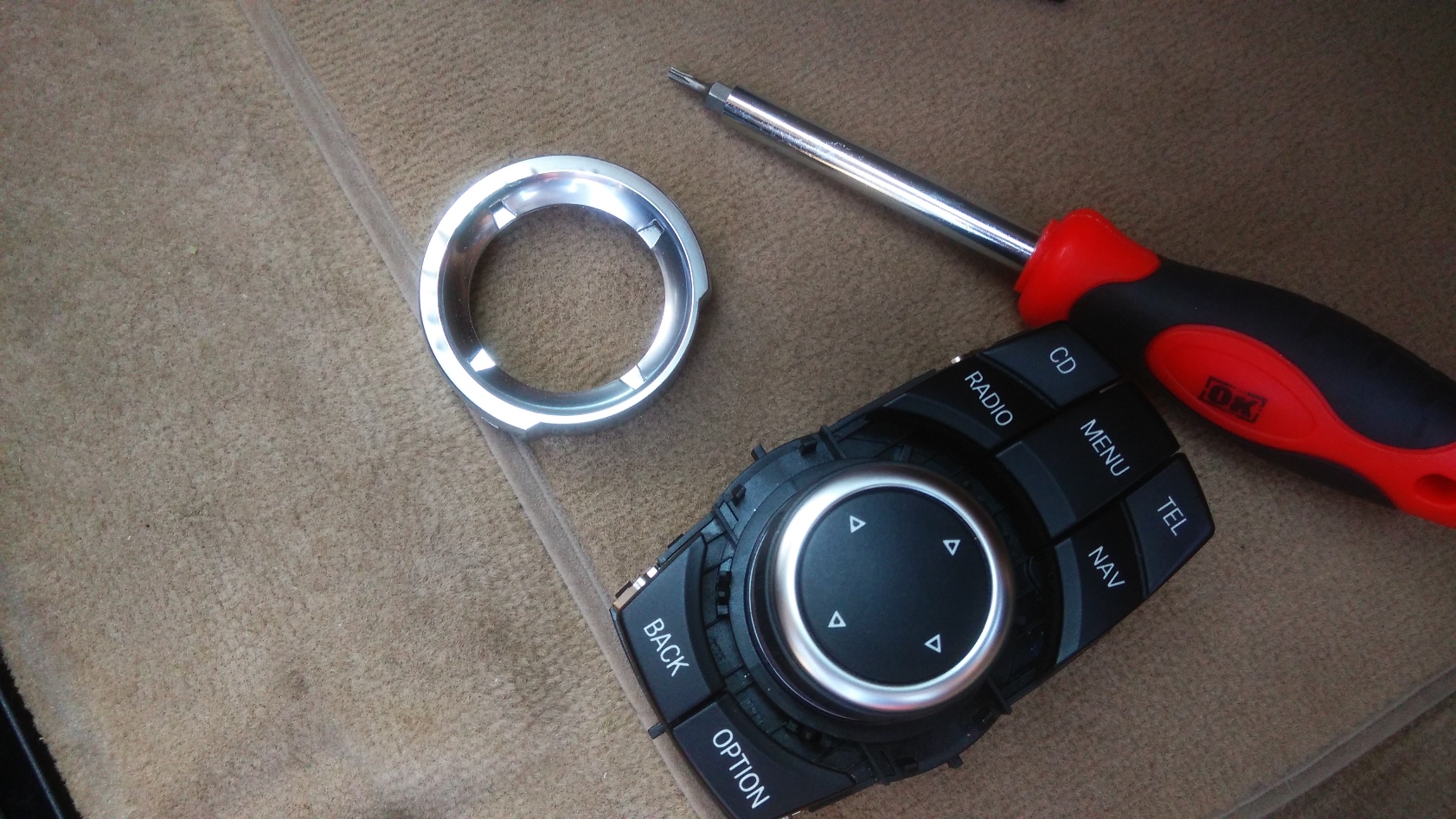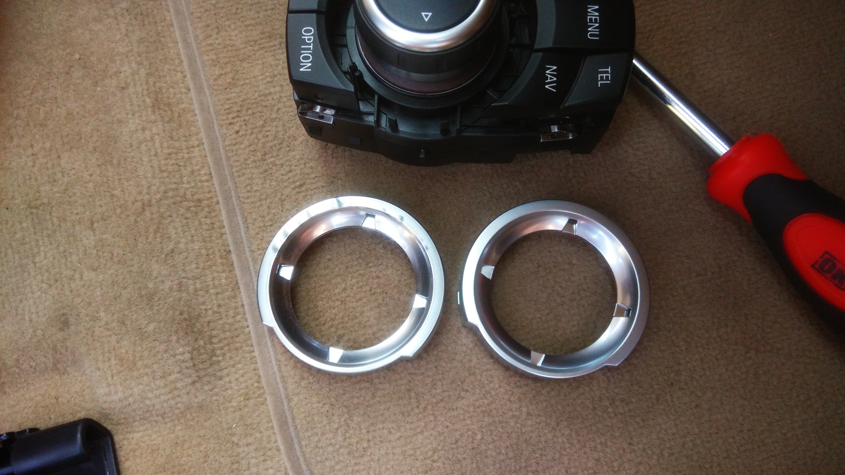 Tak je to plast okolo CIC, zatial jazdim bez neho. Objednal som aj uplne novy (20€ cca.) + zase piny uchyty listy, ked to doriesim nech je vsetko na mieste od nova. Objednal som aj vanicku do opierky a odstranim ten tel. adapter. Do konca novembra mi snad pridu aj ledky do interieru a budu sa menit ziarovky. Zatial som hodil jeden sulfid do kufra a vypada to fajn 6000k mi vyhovuje. Nech je to vsetko jednotne (klucky su led, podznacka LED, kruzky ziarovka, interier ziarovka, nevypada to dobre ako celok ked sa otvoria dvere).