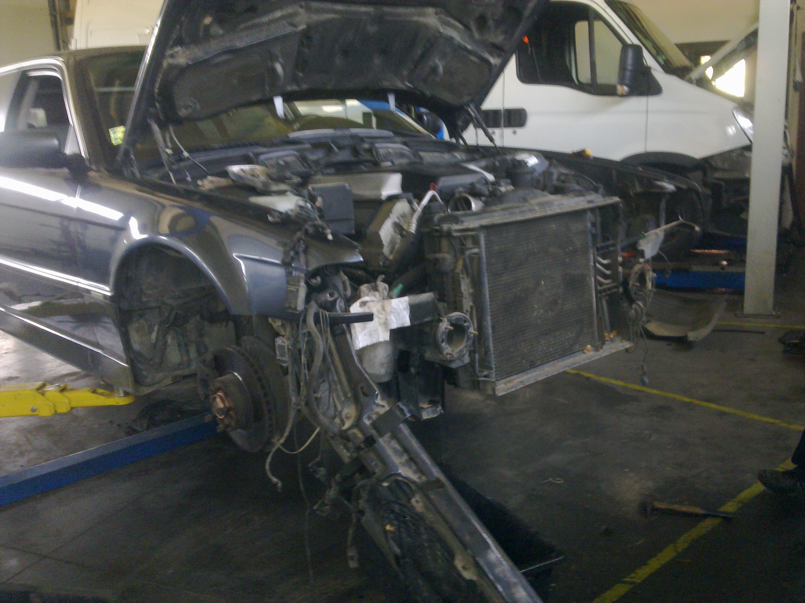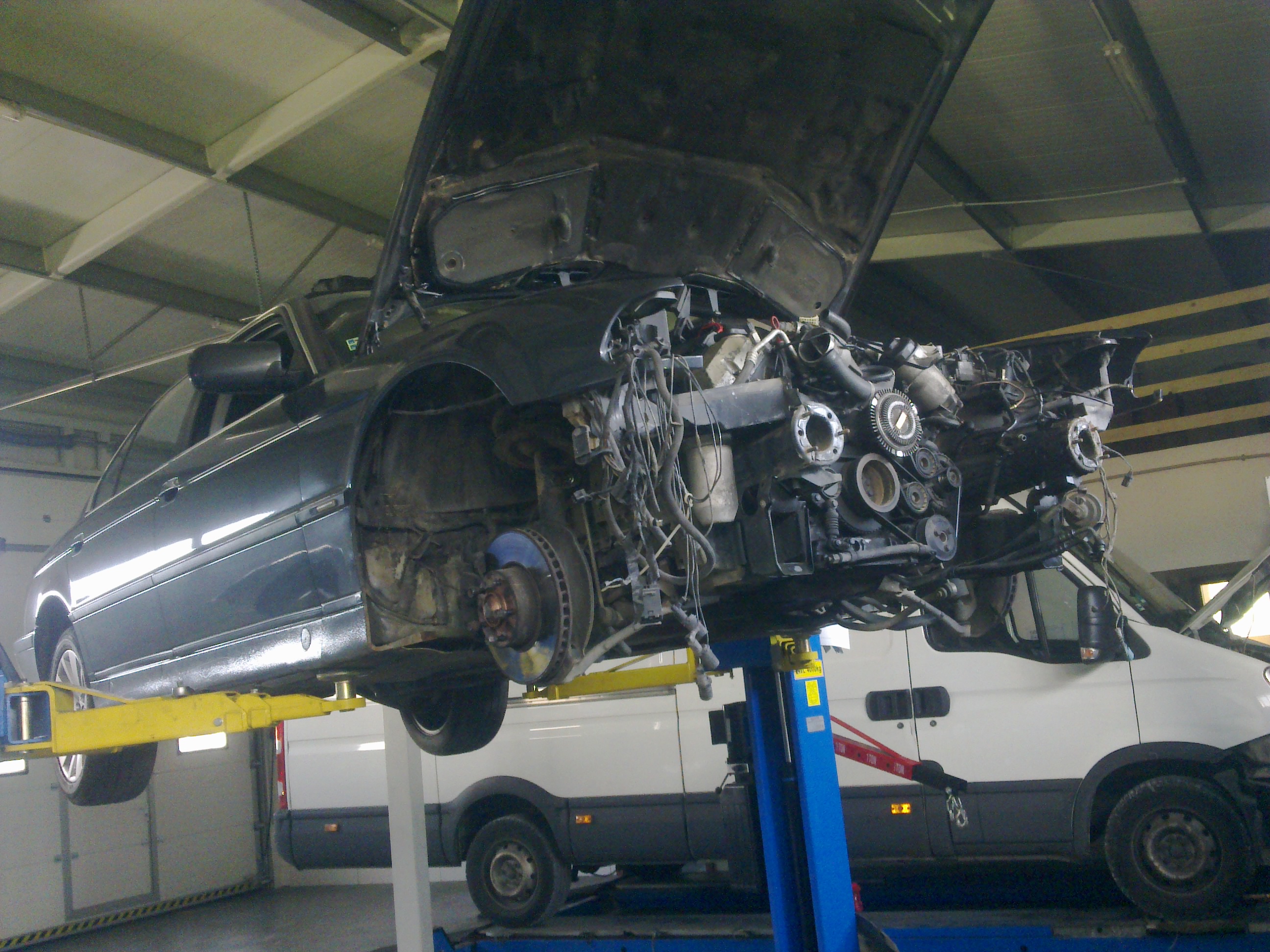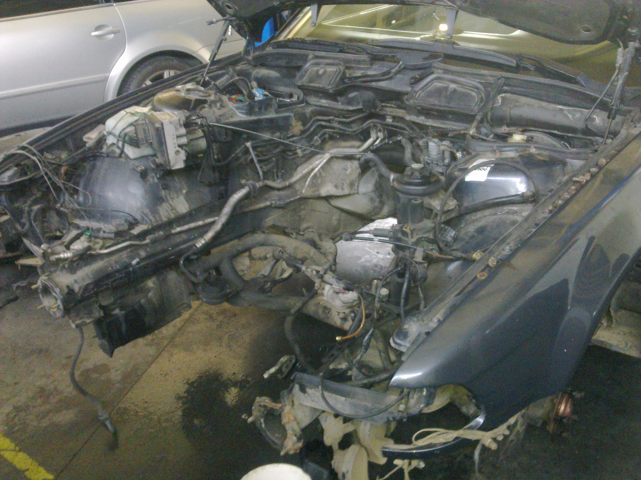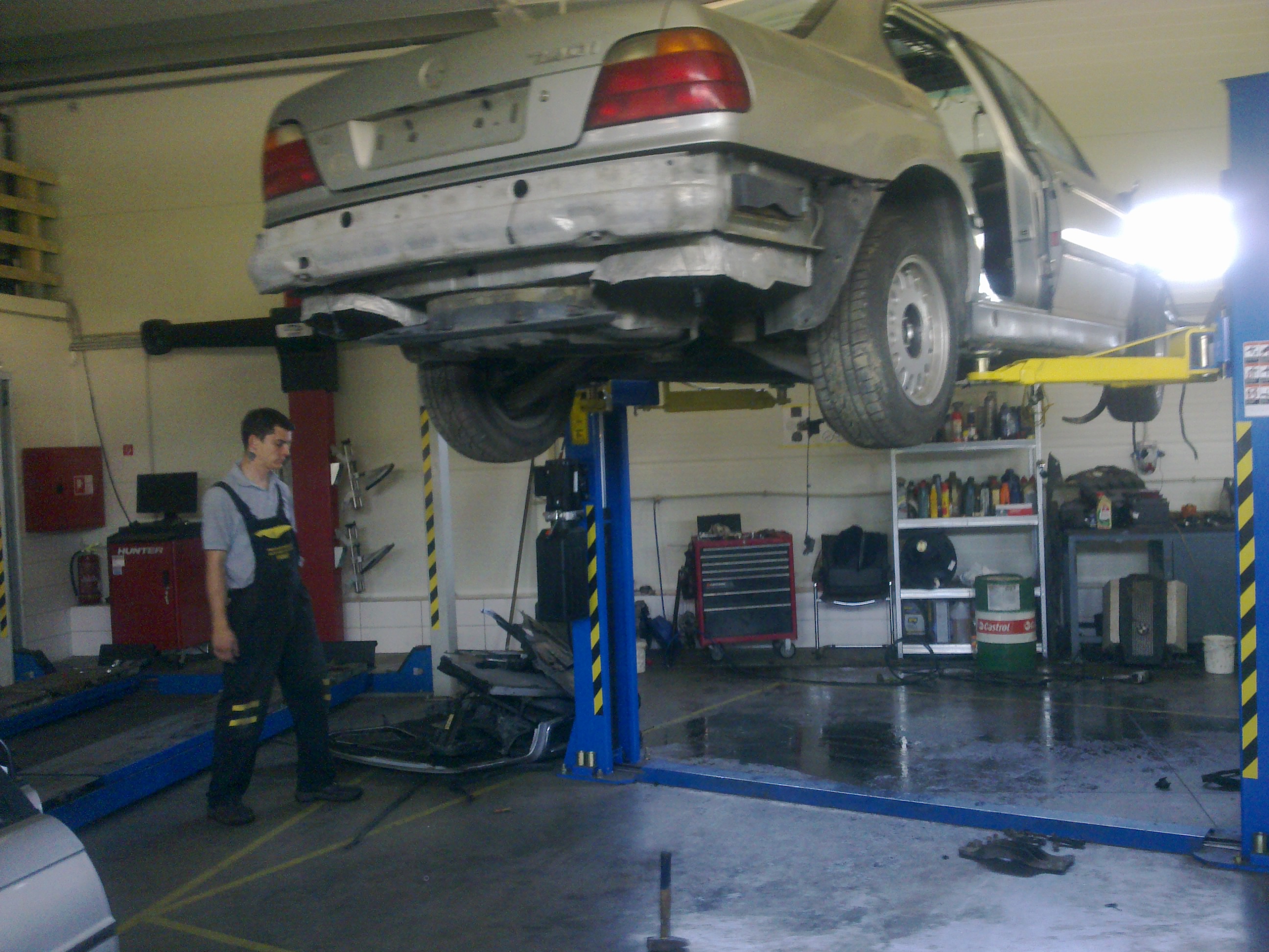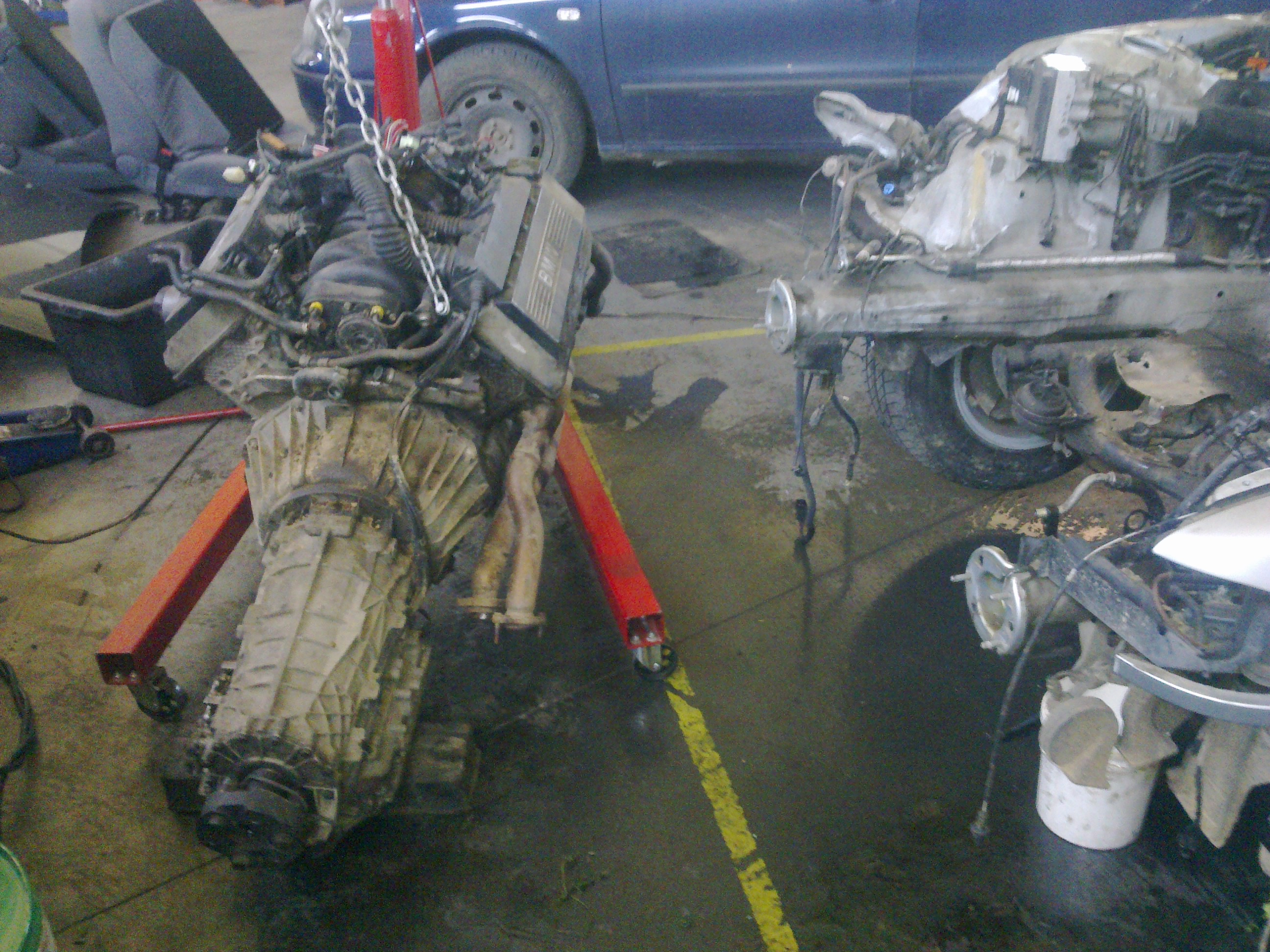takže práce dnes postúpili, z búraného auta sa ďalej vymontovali a namontujú do môjho : brzdový valec, komplet riadenie a nádrž. Dnes sme odstrojili už aj moje auto, všetko odpojené, uvolnené, zajtra už sa len vytiahne motor a všetky spomenuté veci ktoré chcem prehodiť. Keďže už bude auto v takejto miere rozobraté a odstrojené, celý spodok karosérie sa očistí, ošetrí a nahodí sa body lak nech to tak nehnije