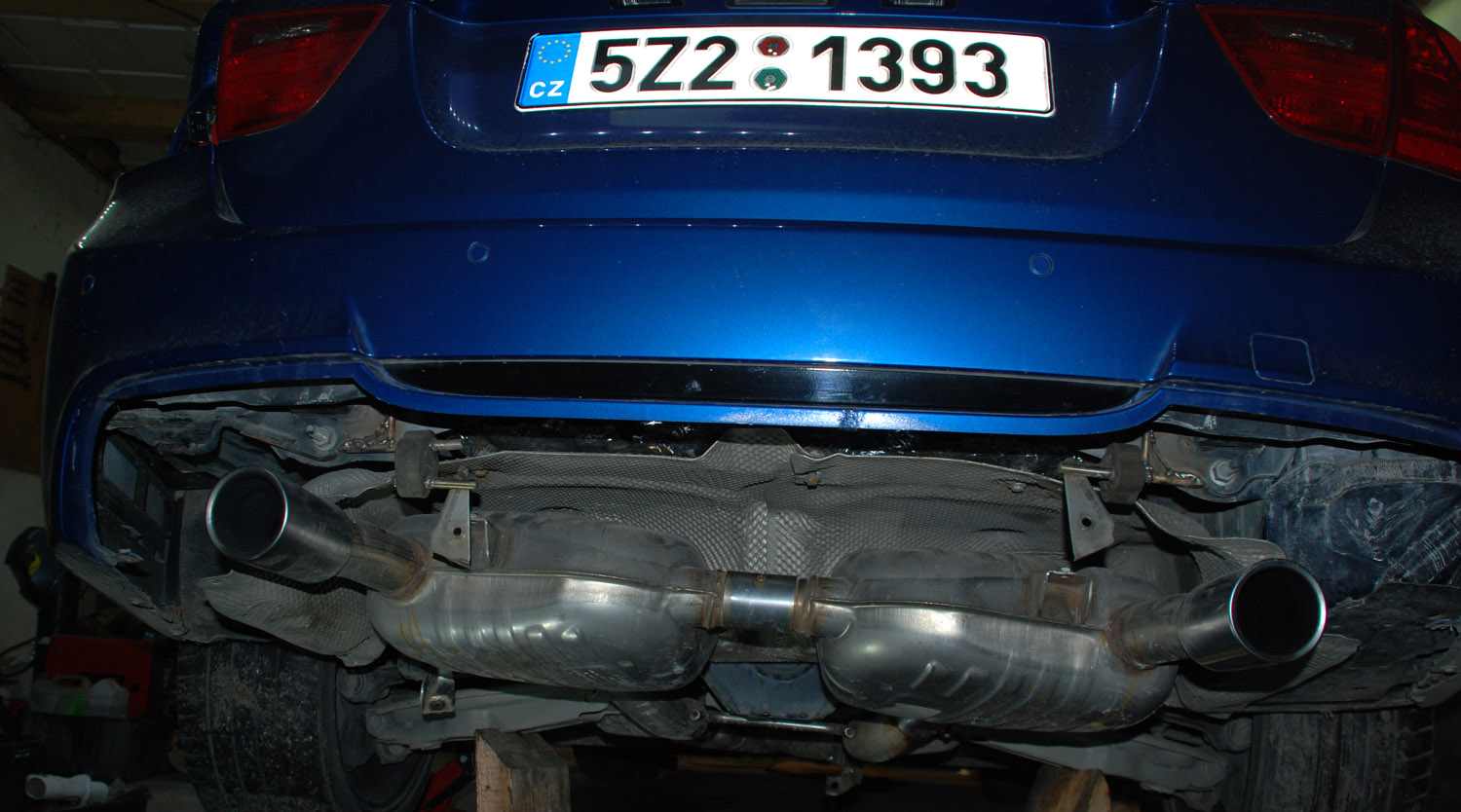 Kompletní dvojitě vedený výfuk od turba po koncovky, 335d