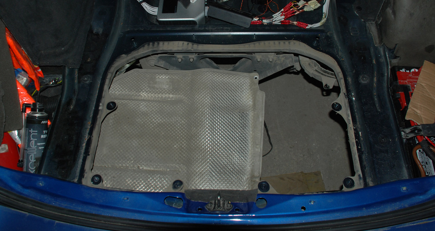 Upravenné dno kufru a tepelné štíty kvůli výfukům, díly z e92 335i