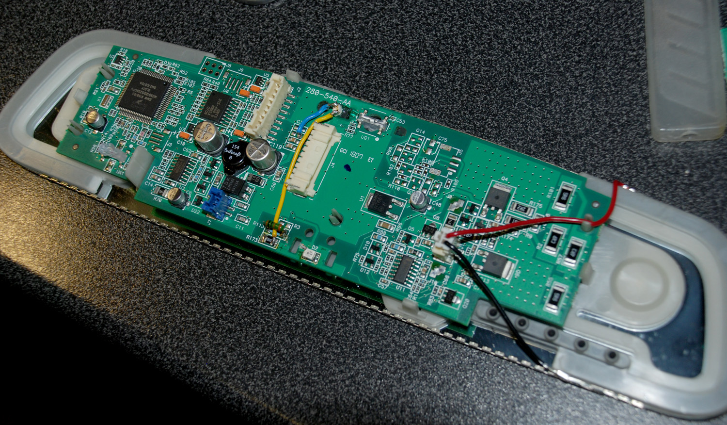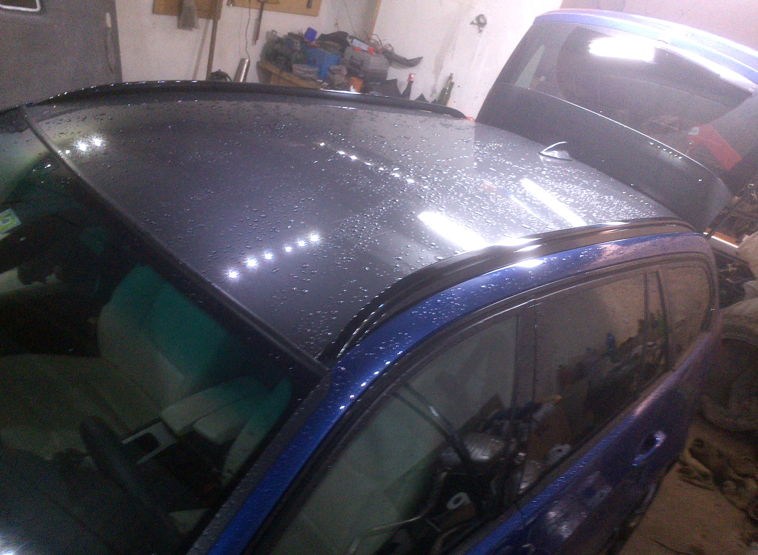 Nějaké drobnosti v interieru. Docela práce byla se zrcátkem. Chtěl jsem samostmívací zrcátko s "klauním nosem" kvůli alarmu a s FLA kamerou - asistentem dálkových světel. Taková kombinace ale nešla sehnat, tak jsem nakoupil zrcátka a vyrobil si svoje vlastní :) z jednoho jsem použil kryt a klaunův nos, z dalšího kameru a z mého elektrochrom. Musel jsem tam dopájet nějaké součástky kvůli alarmu, zjistilo se že nejde přehodit celá deska ze zrcátka s alarmem, pak by mi zas nefungovalo FLA. Největší problém je rozebrat kloub zrcátka, který je plastový a drží ho silná pružina, oficiálně je to nerozebratelné. Ovšem složit to je ještě 5x těžší aby to fungovalo :) no podařilo se.