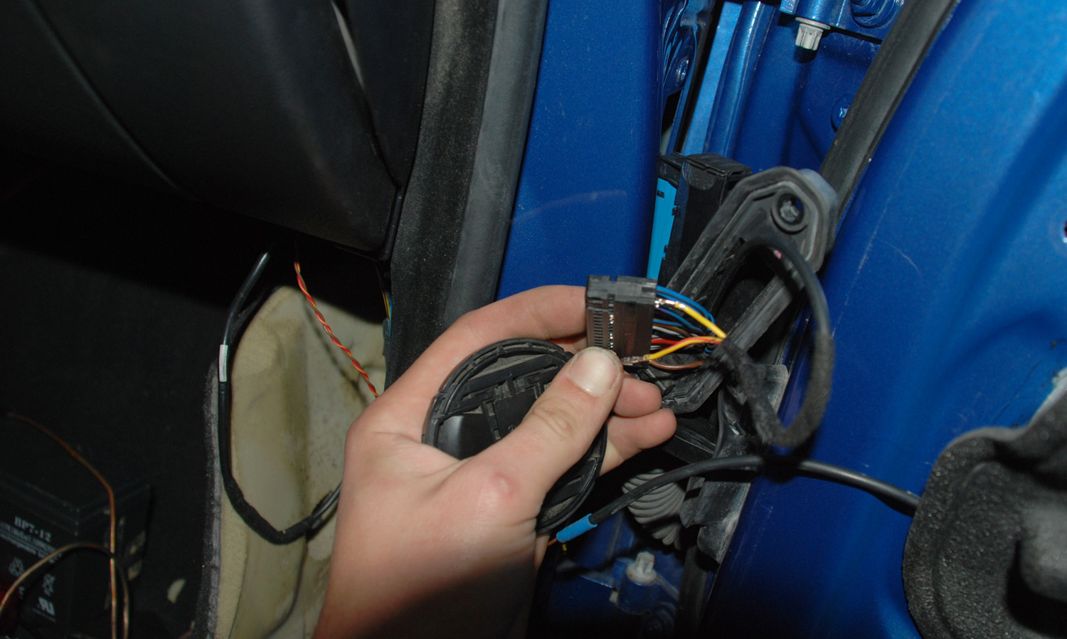 Protože nepoužívám pasivní výhybky na výškáče ve dveřích, bylo potřeba natahat piny do dveřního konektoru na přidanou kabeláž pro výšky