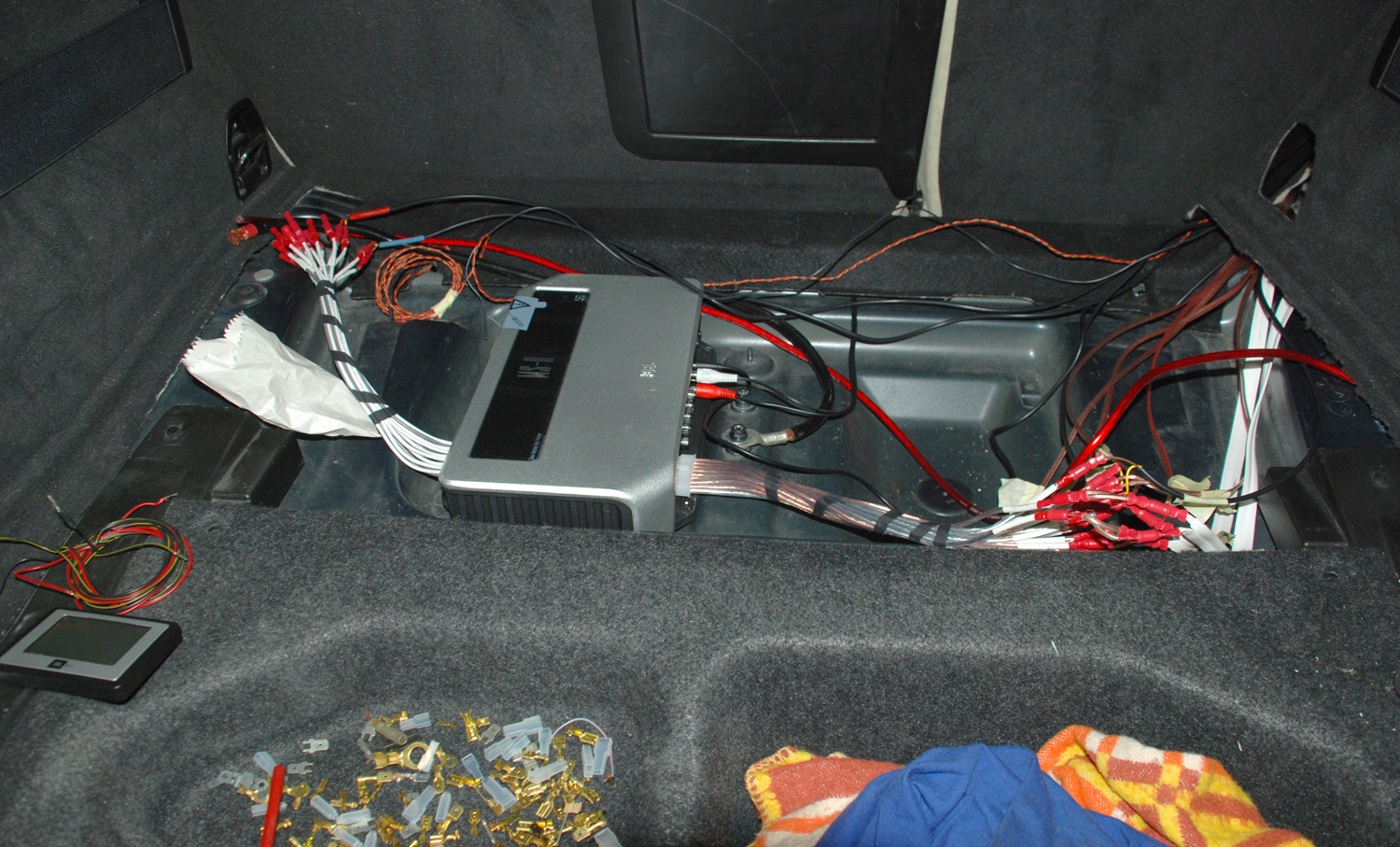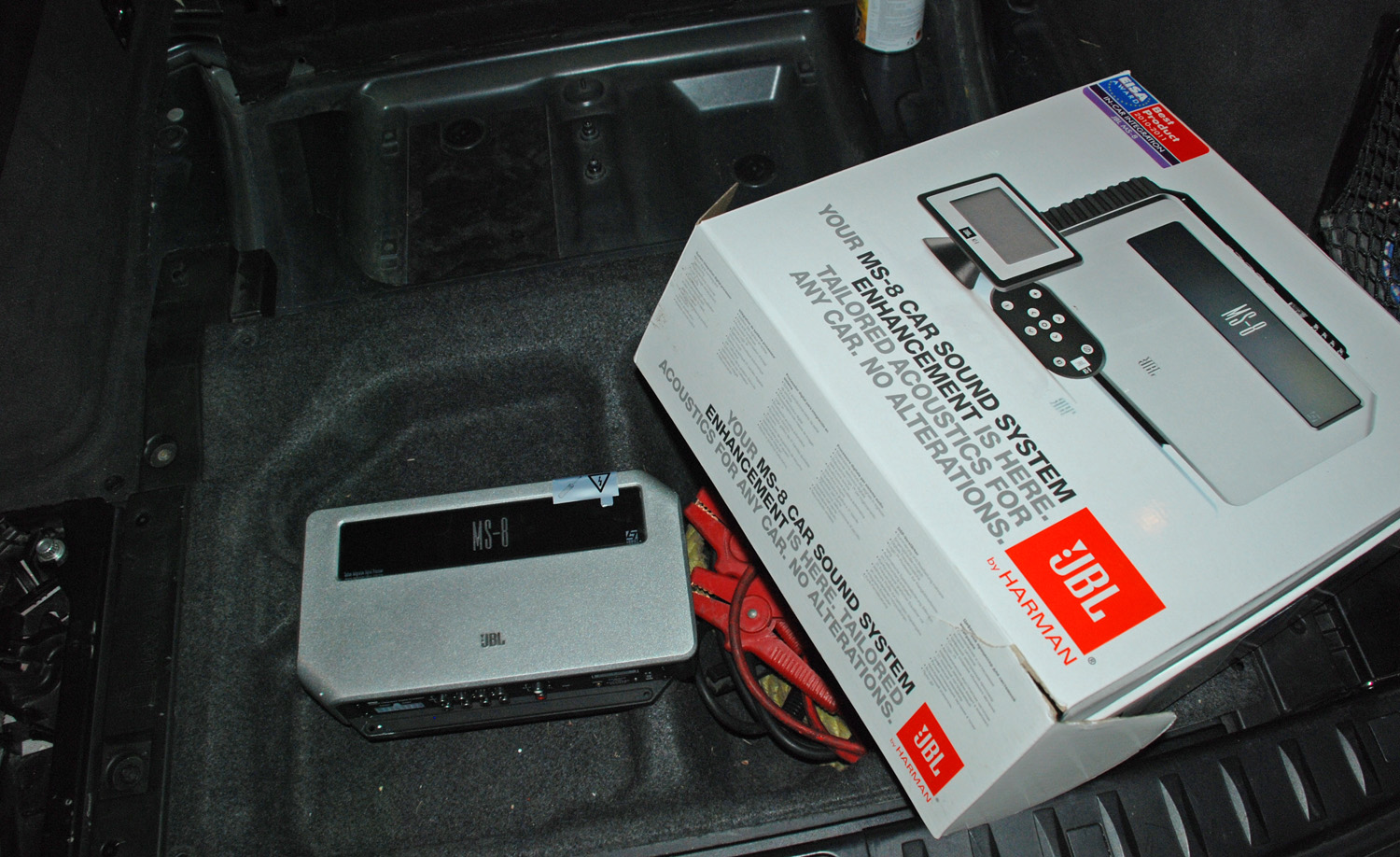 Aftermarket Digital Signal Processor od Harmanu (JBL MS-8), umí i Logic 7 prostorový zvuk, zapojeno jako aktiv, tedy výškáče mají softwarové výhybky a svoje zesilovače, kalibrace fázových posunů a zpoždění kanálů pomocí mikrofonu. + Blaupunkt digitální zesilovač pro subwoofery