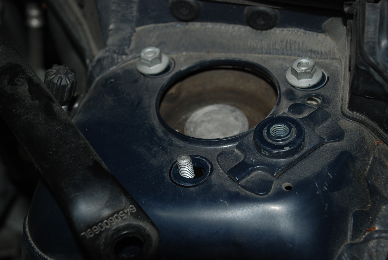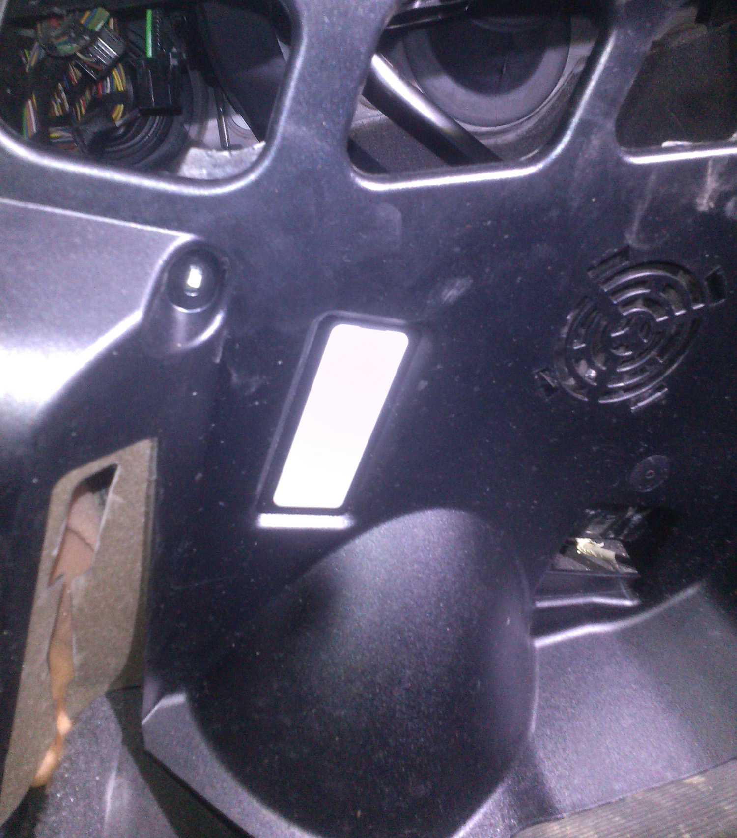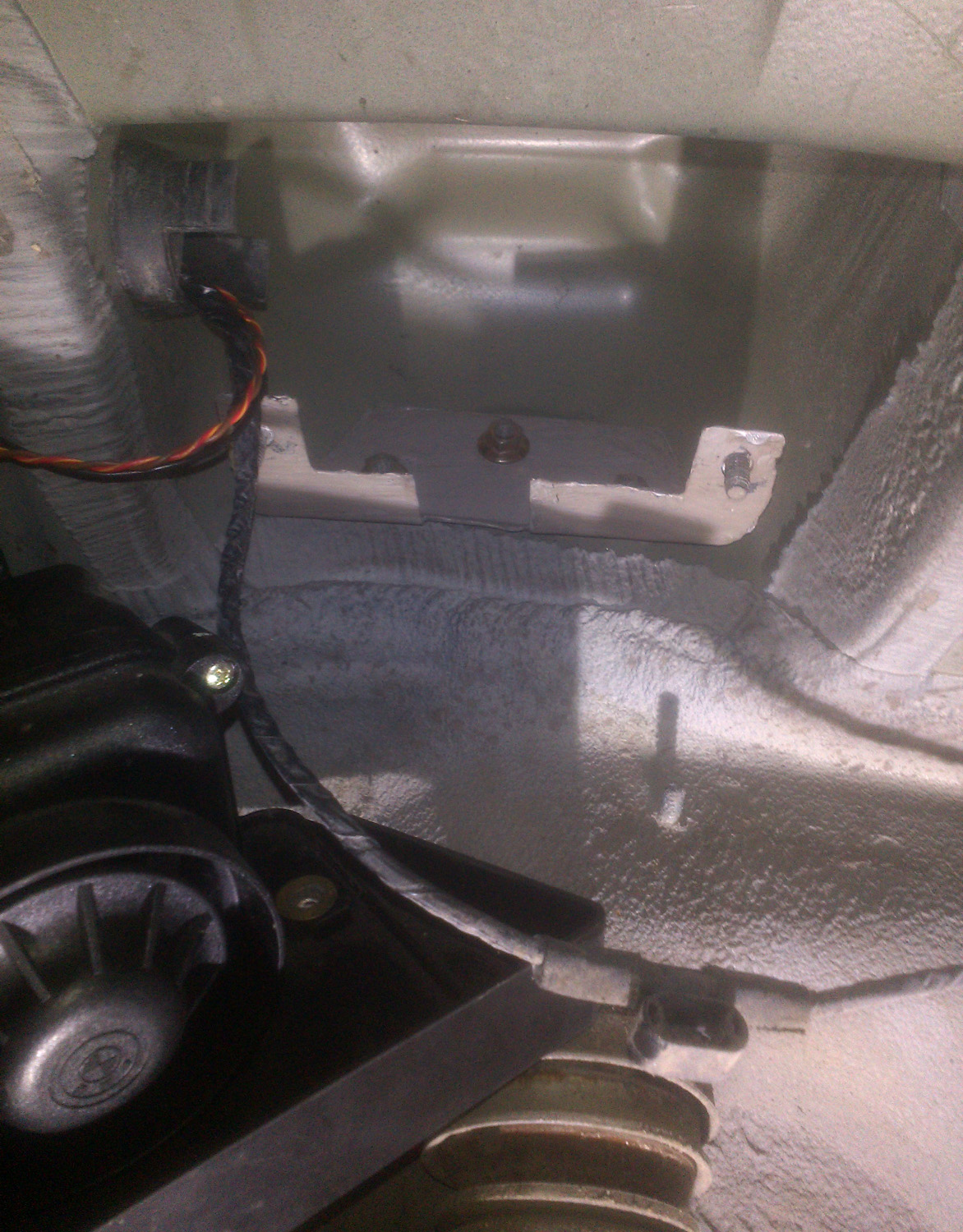 V podběhu už je připevněný kovový držák, který jsem musel vyrobit a k němu se pak montuje alarm se spodním krytem