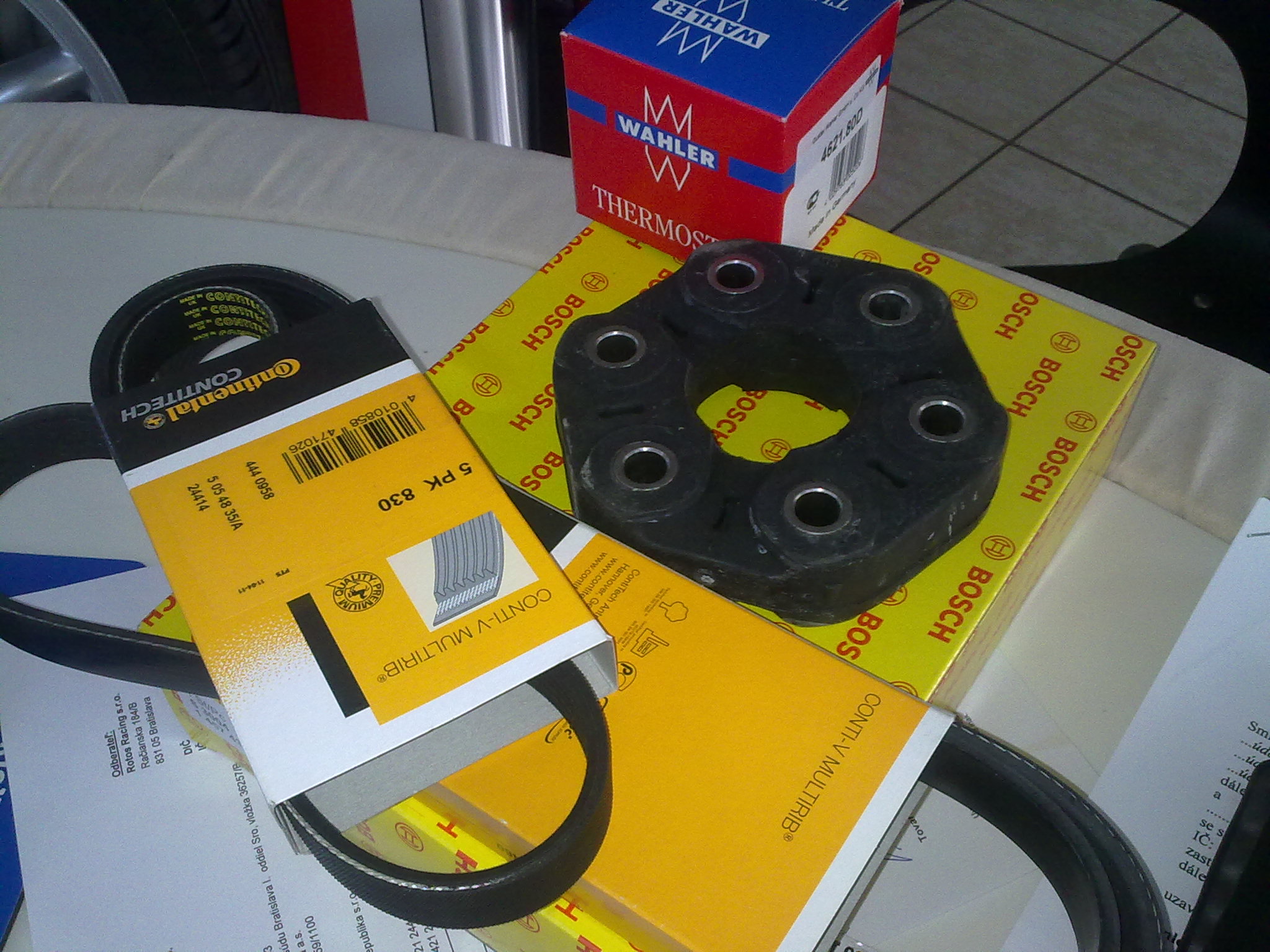 Vymenili sa oba remene, termostat, nova servopumpa a hardyspojka. Pribudli aj 18ky zimne kolesa z E90 M3 od Mr.S za co mu dakujeme :D