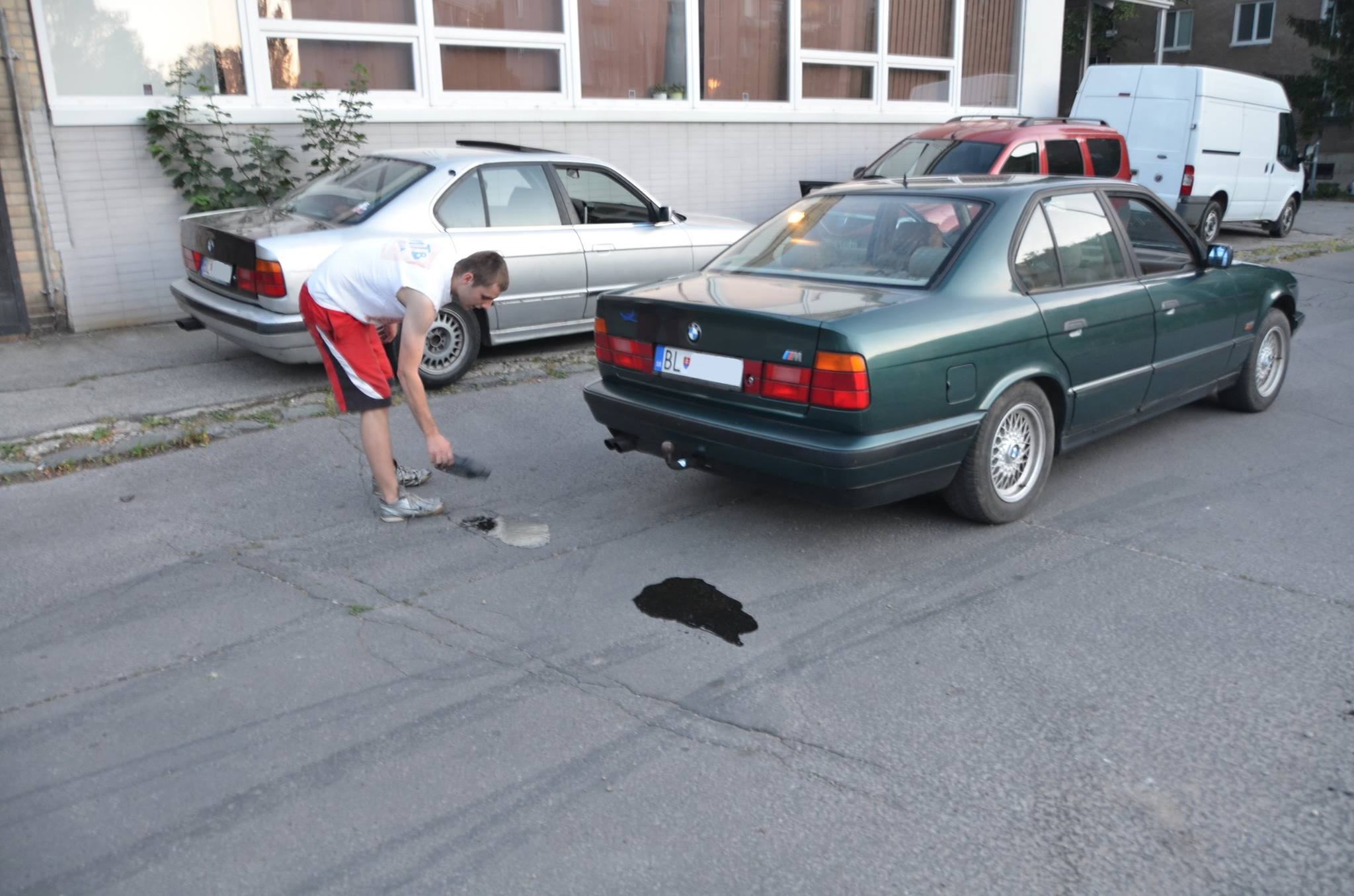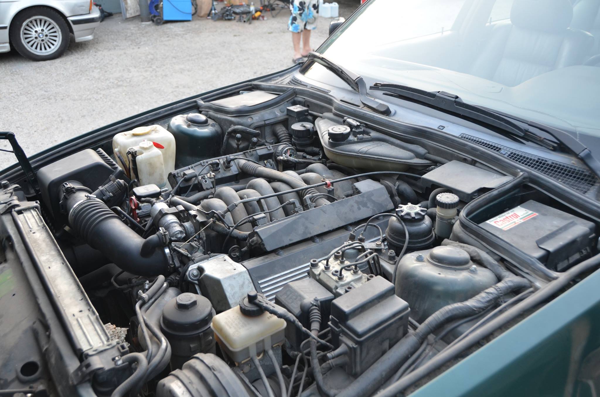 Šťastlivo sme došli na mjesto určenja, voláme na kontakt, reku sme tu. Došou typický obyvateľ danej oblasti, až sa mi chechtať zachcelo. Ale s vidinou dobrej kúpy, priblblo som sa len usmieval. Došli sme k autu. Oproti fotkám dojebaté až strach. ale šak to je klasika. Gádži sa pochválel, že fotky z inzerátu boli štyri roky staré, naštastie to auto instantne odvtedy stálo. Trošku pod prístreškom, zovňajšku sa zub času preveľmi nedotkou. Vypovedané bolo, že je motor bez hlavy, naštastie sa z toho vykľulo len veko ventilov. Podstatný rozdiel. Reku, sacia vačka je pridretá chlapci, ďaleko s tým nedójdete. Ale keďže M60 ide aj na tri valce, nedali sme sa odradiť. Kukám interiér - živý, nič mu nechýba, výbava možno. Gádži zúrivo miksľuje s kľúčom, a oduševnene bľaboce, že origo BOSCH alarm, origo dialkové. Kukám, a zrazu že dačo. Ide. Ale len zavrieť, baterky v diaľkovom očividne KO. nevadí, kukám na ufo senzory za späťákom. husté, to som ešte nevidel. Naokolo všetko vyzerá v cajku, koža nepoškodená, plasty ok, palubovka sa napukáva nad spolujazdcovým kastlíkom, čo už. Vonku je to už iné, všade veľa machu, prvý udrie do očí odjebatý späťák. Duct-tape fix - check. Zadné dvere lapené statočne, z predných dačo ešte bude. Blatník lapený statočne, ale okrem toho už všetko v richtigu. Podľa rádia som očakával, že v kofferaume bude menič. Nebol. Tak kuknem znova na rádio, a to je len C Reverse. Volant bol v inzeráte drevený, ten taký čo sa robí neorigo ale je to individual, papľuh. Vravím keď je v rovnakom koreňovom dreve ako zbytok woodline-u, na íbeji si nájde kupcu. Nenájde. Mtech jedna. škoda.