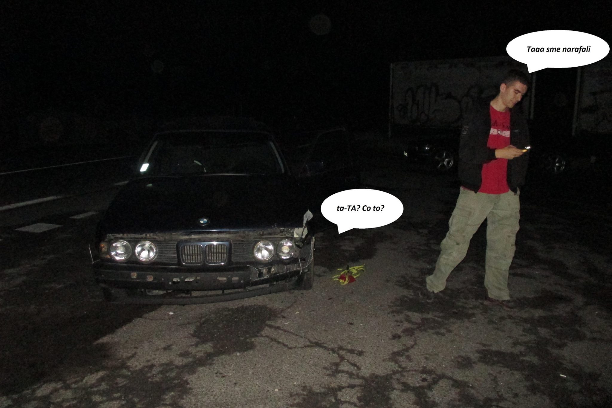 Ná tak sa rozpisem i ja. Posledne sa mi moc nechcelo pisat ale teď mám už vočem. Tiez som utrzil nejaky high speed bumper zvodidlo kiss, presne taky aky som si vysnival cize dalsia fajka v zozname snov :) Auto ostalo prekvapivo cele no den pred tym som si to vynahradil skuskou pevnosti zvodidiel ked mi dako nevyslo esíčko. Fotky z toho moc neni kedze som promptne vylanaril od znameho ruzoveho e32 stancera predny blatnik s pozostatkami stickerbombu a hned ho napratal na auto kedze sa slo zas jazdit.. holt jak sa vravi dorifto repairo dorifto. Blatnik, svetlo smerovka, naraznik vsetko sa fixlo, jal som sa teda menit kola a kukam ze vzadu na kole tri sroby iba, vsetky povolene a jeden mi vypadol polovicny.. Dal som dolu koleso a hen tri srauby too much torque ustrihnute.. Such such such som zasebe hodil brzdu, kotuc a nastastie sli zvysky srobov len tak vysrobovat rukou. Fotky srobov ma ten, co ma rok vyroby nadrze 1988 tak snad mi ich sem postne